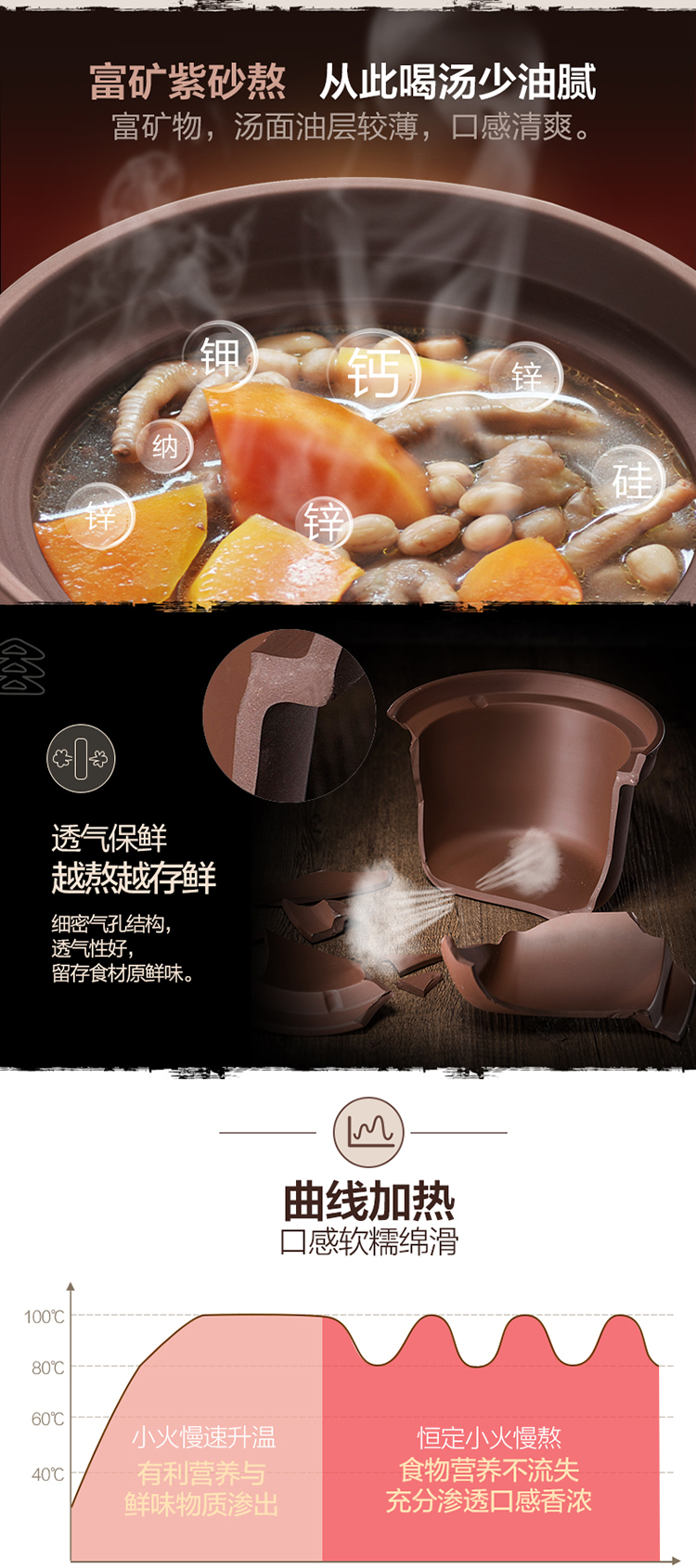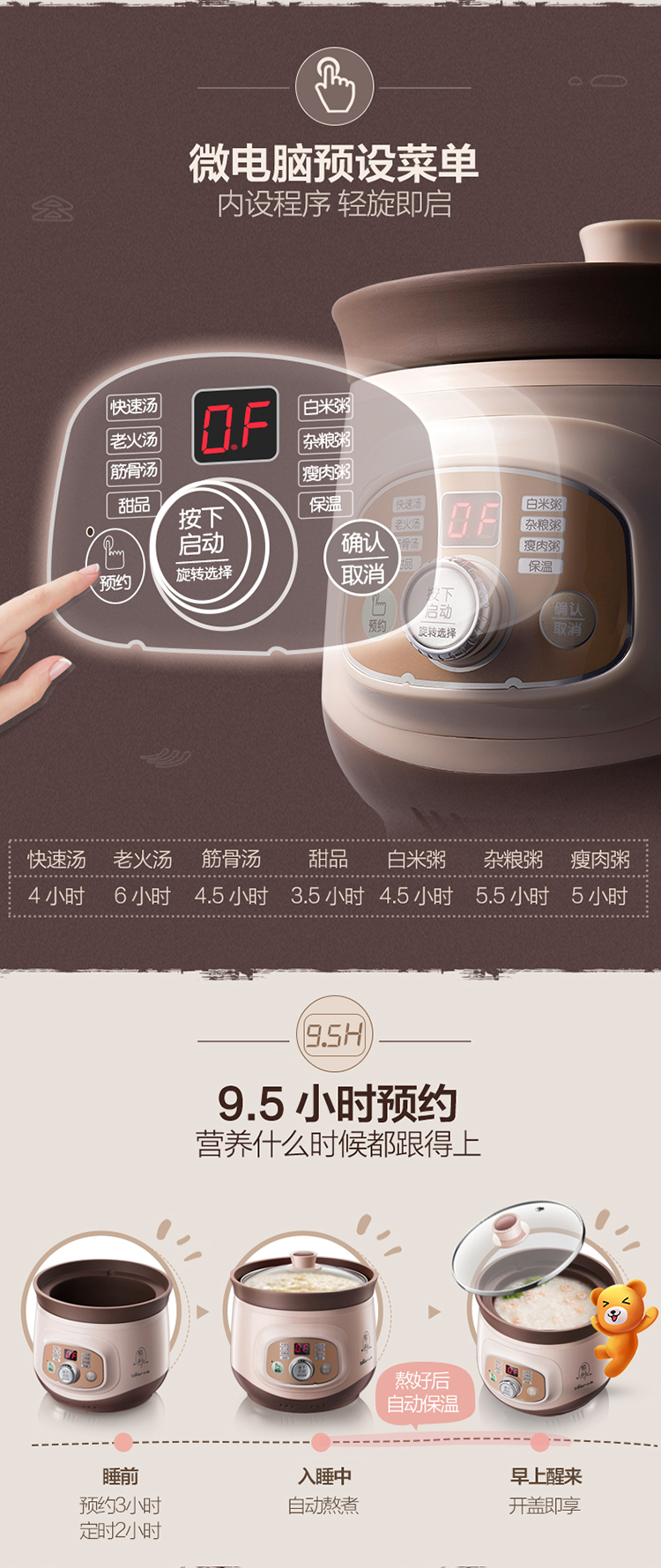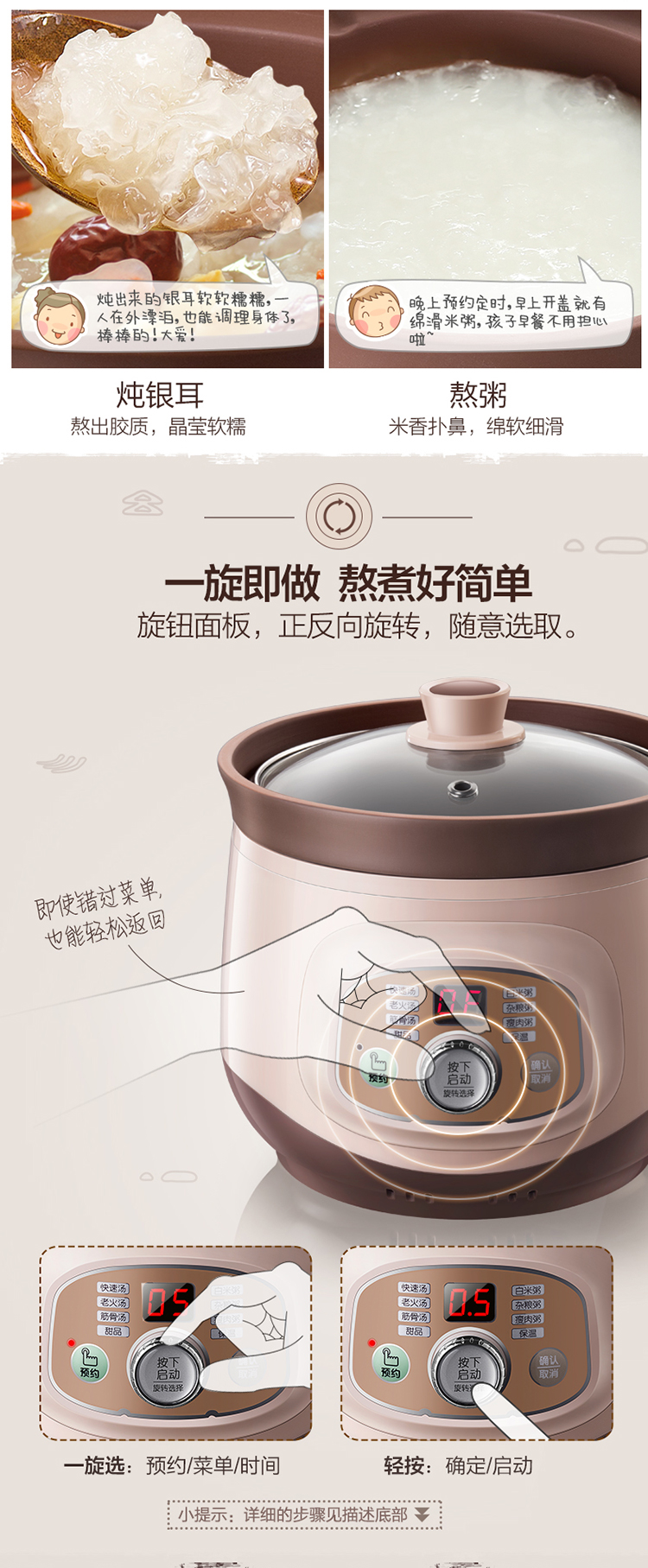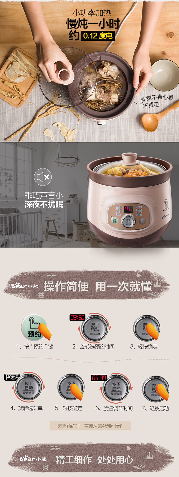 小熊(Bear)2L 电炖锅 电砂锅BB熬粥煮粥煲粥宝宝辅食煲汤锅 DDG-D20T5【ZMD安心系列】 自营