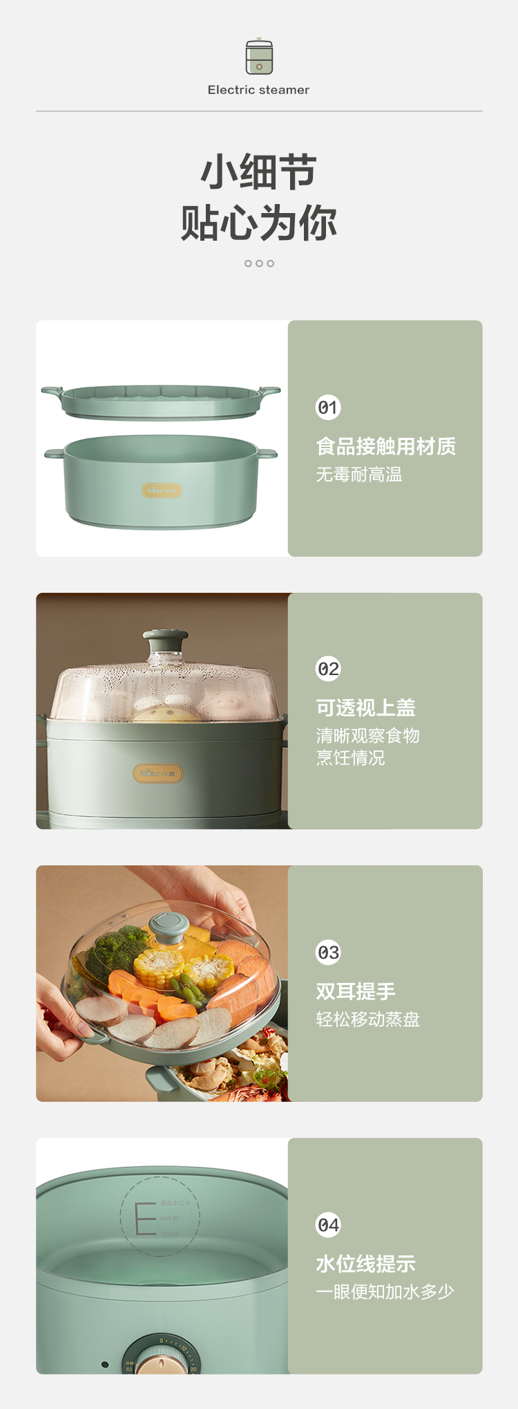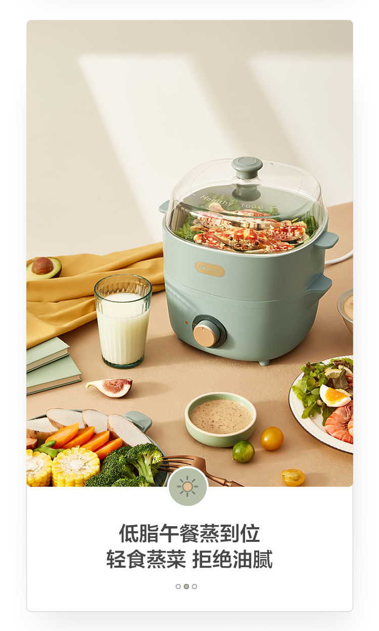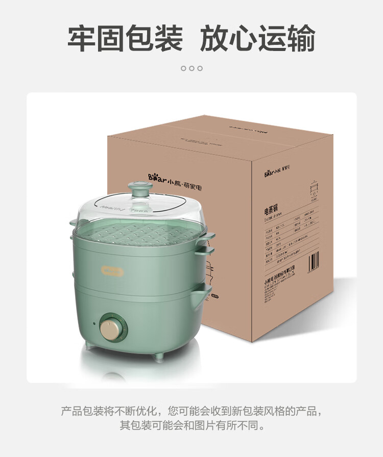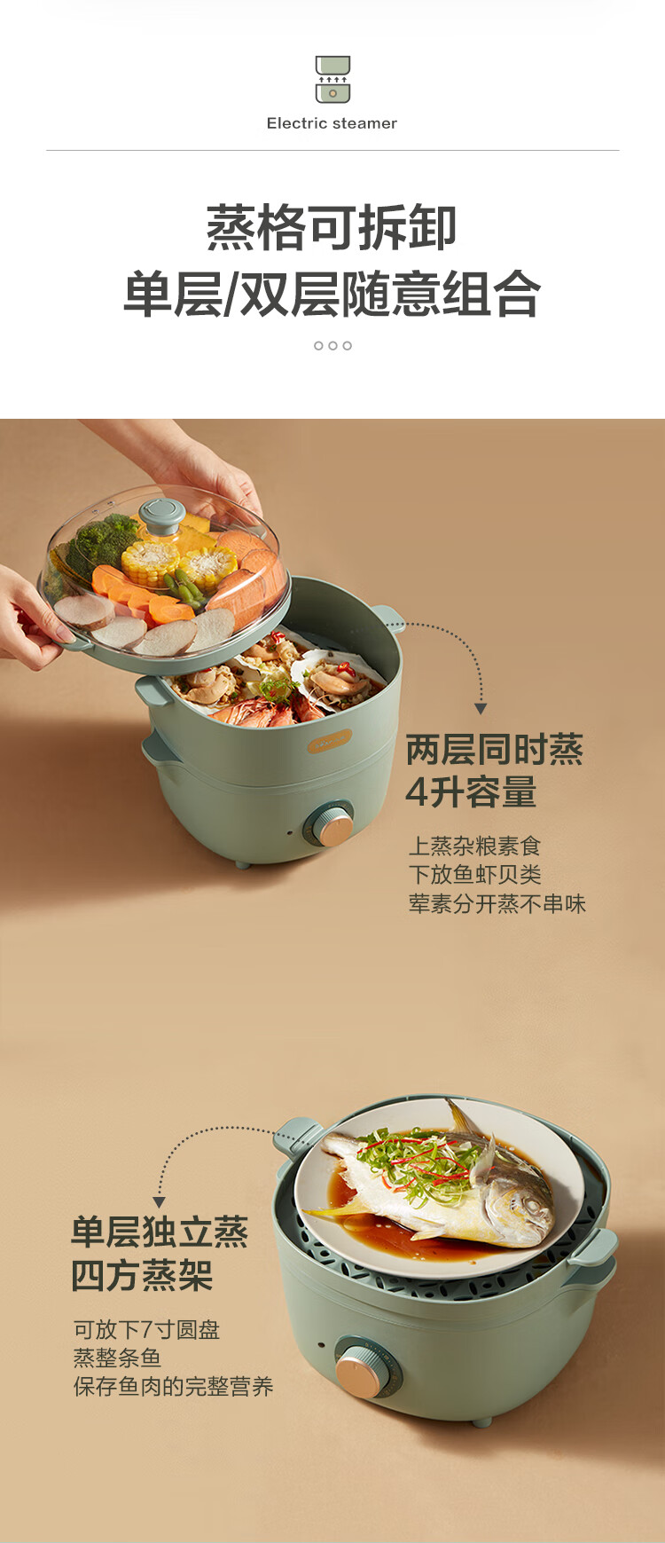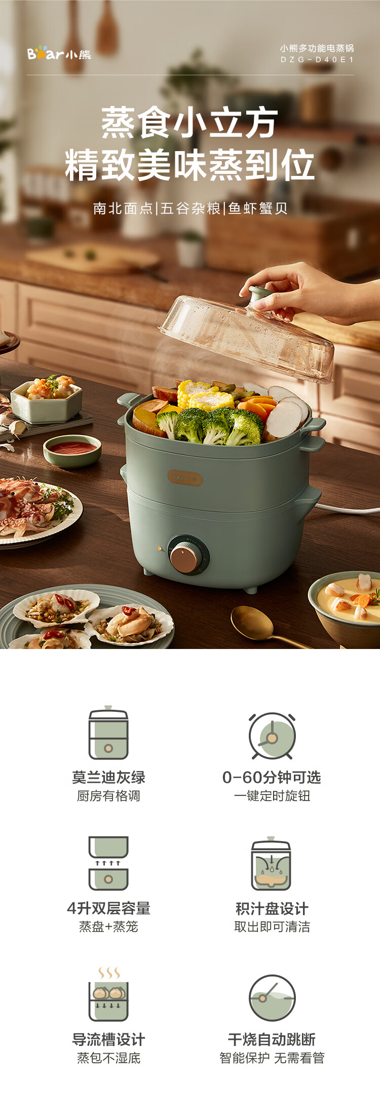 小熊(Bear)电蒸锅多功能电热锅电煮锅二层方形4L多用途锅双层蒸笼 DZG-D40E1 自营