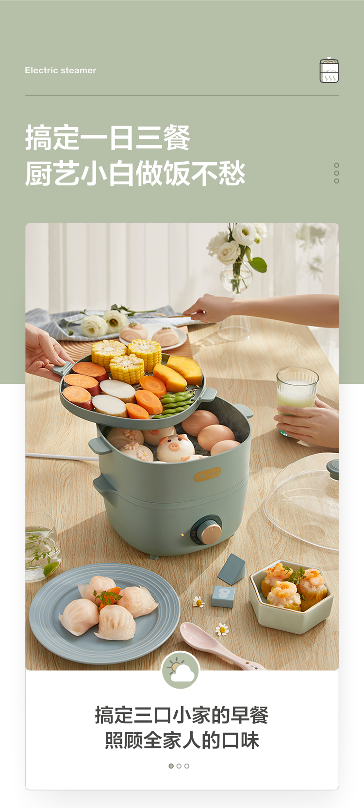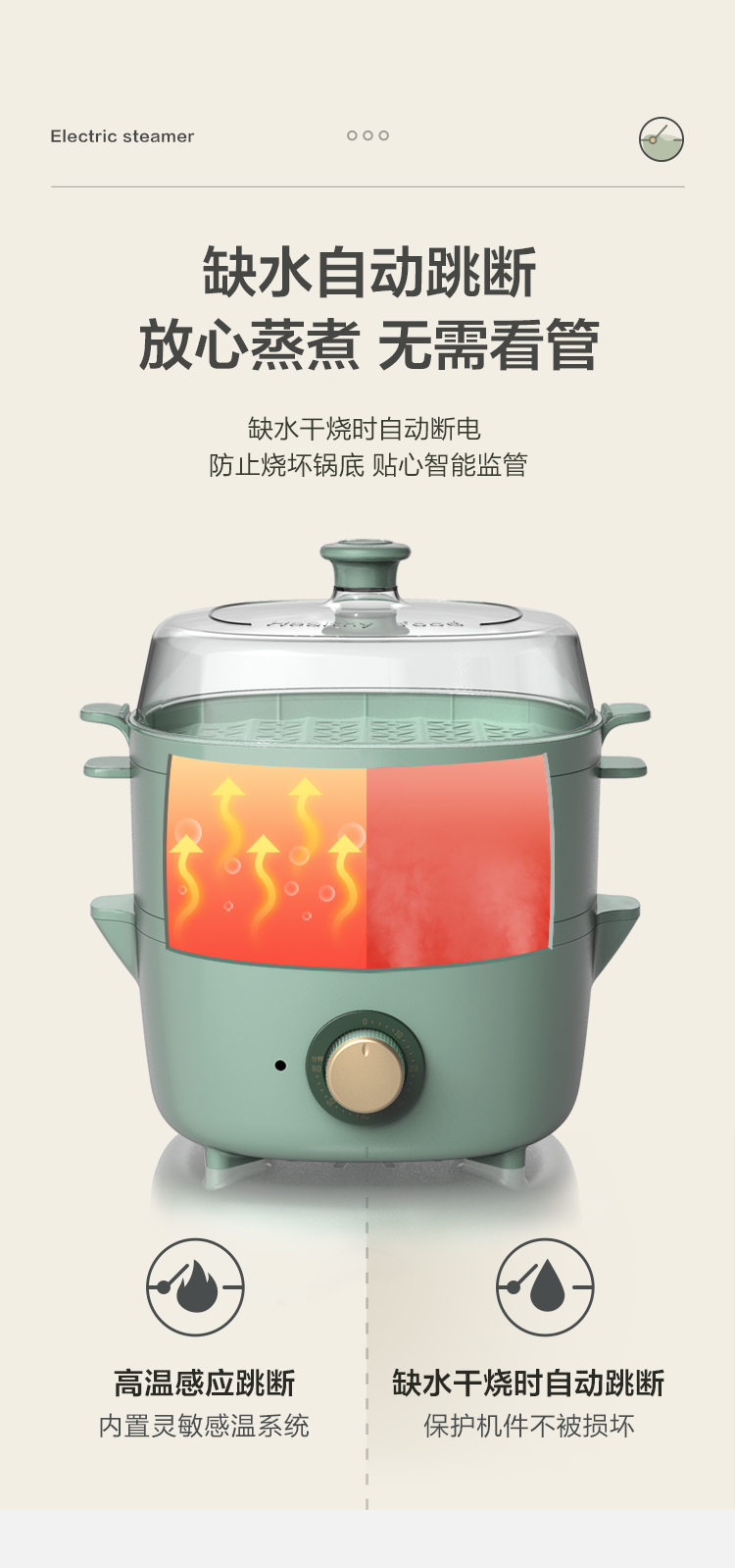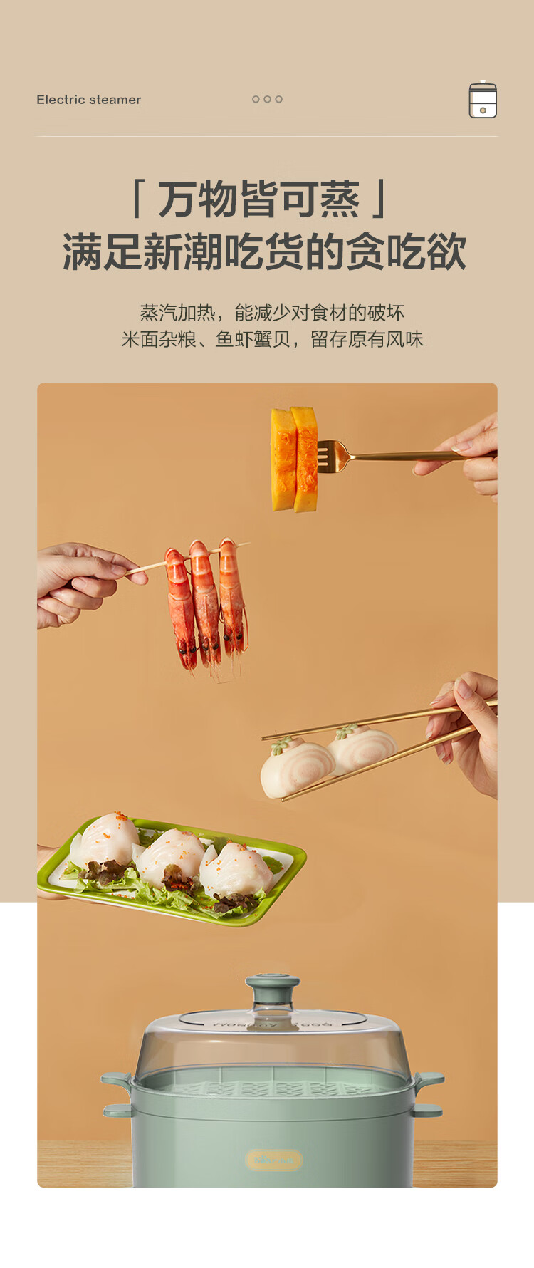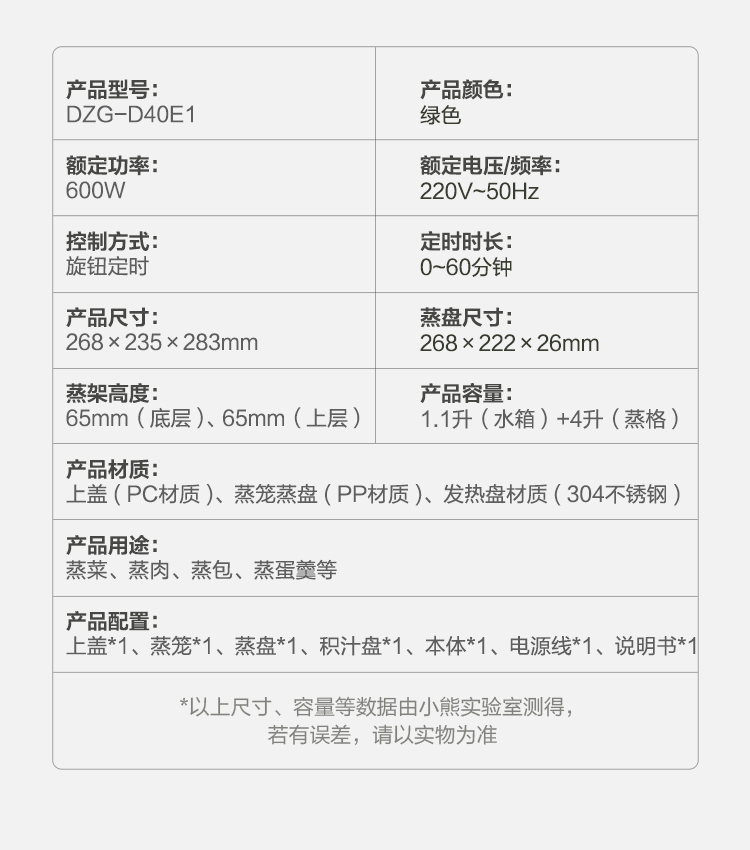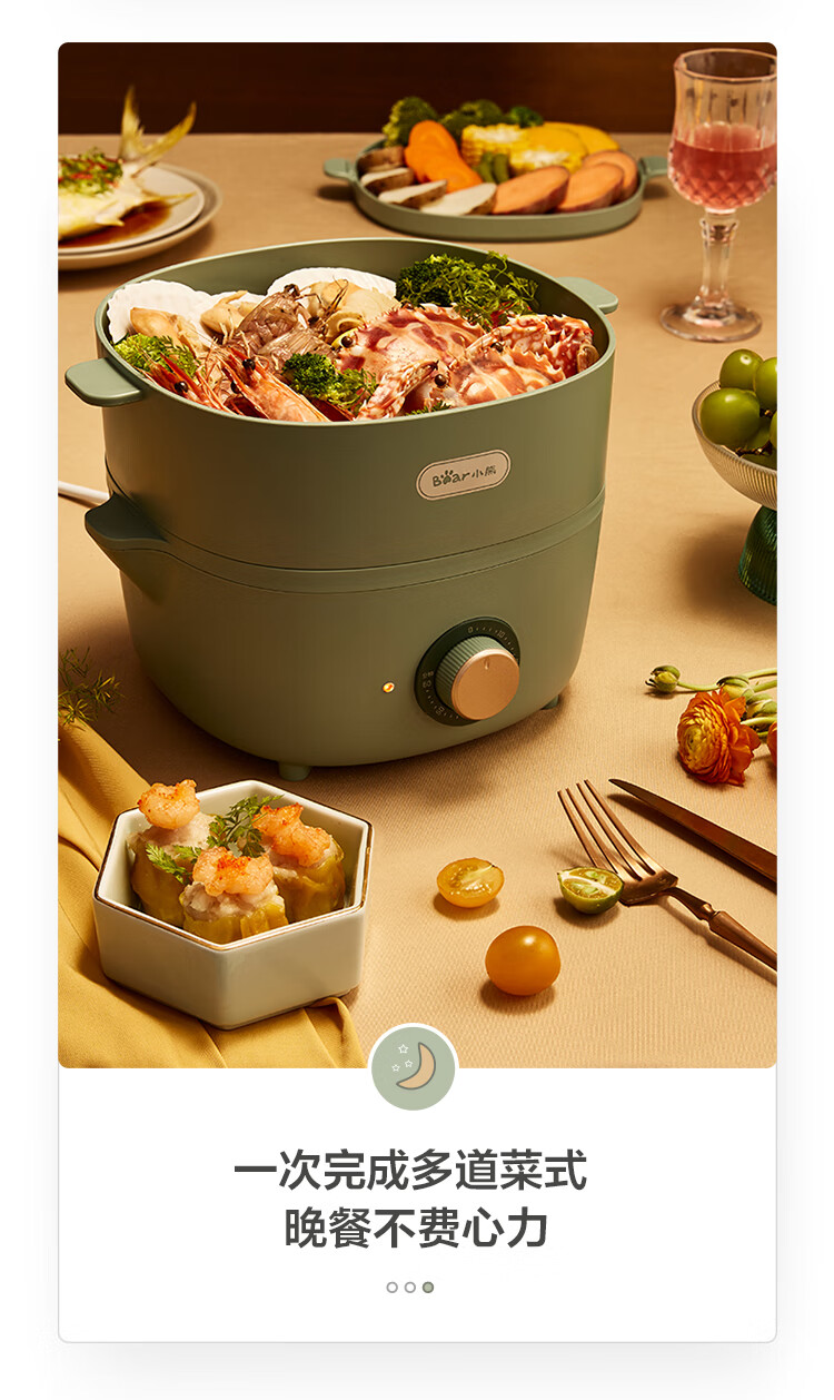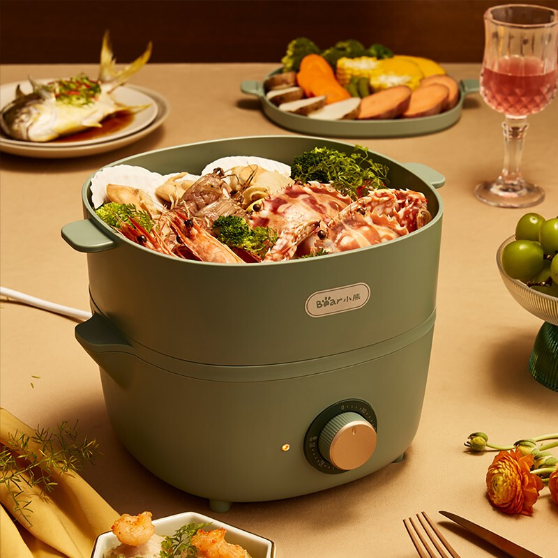 小熊(Bear)电蒸锅多功能电热锅电煮锅二层方形4L多用途锅双层蒸笼 DZG-D40E1 自营