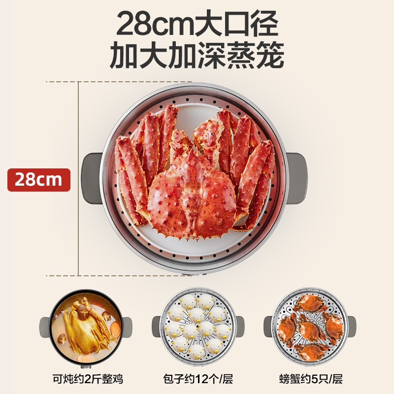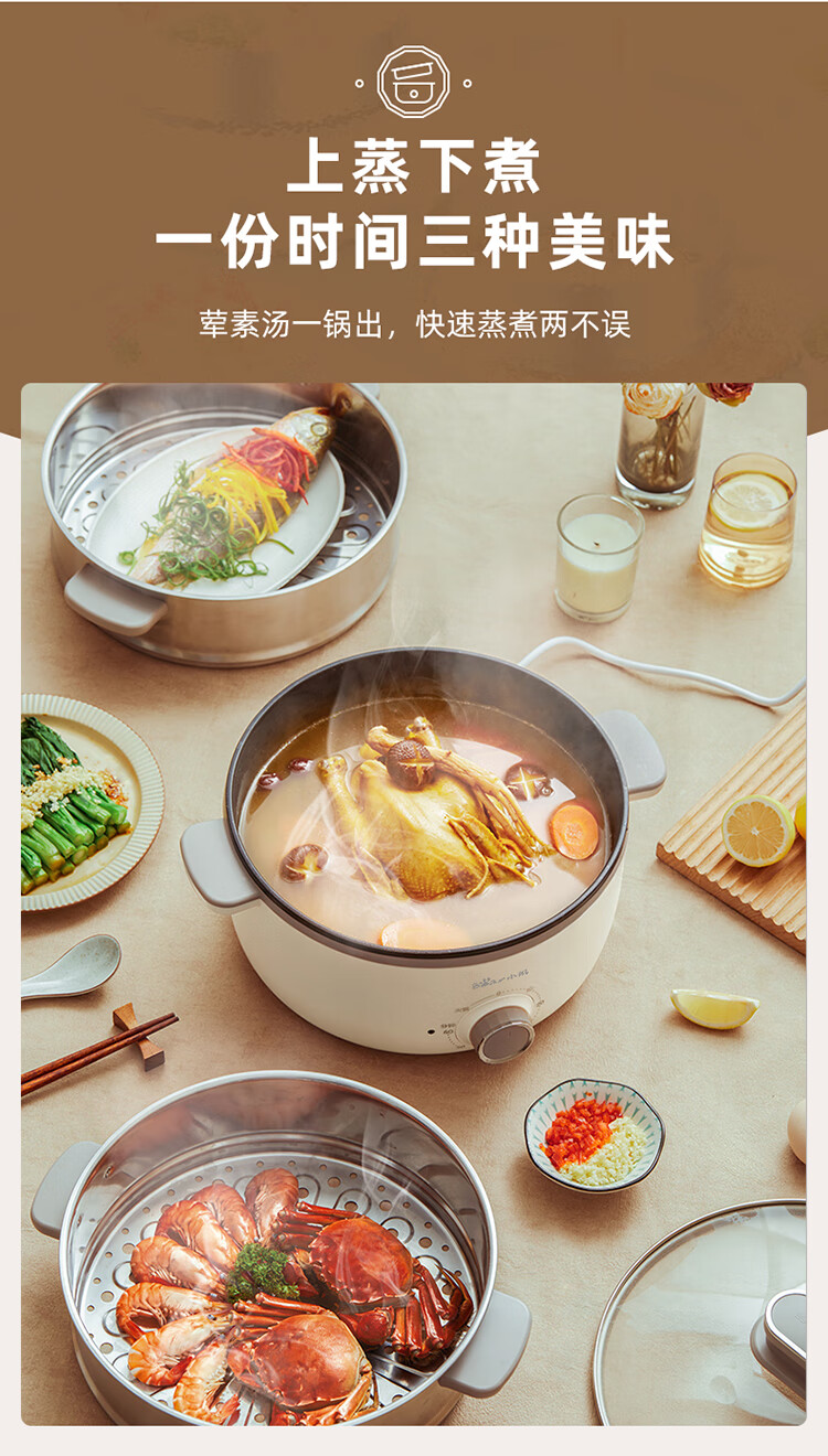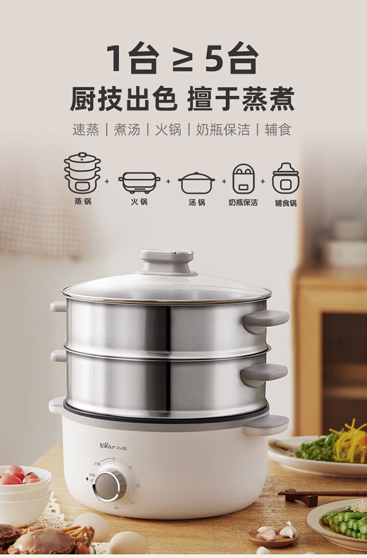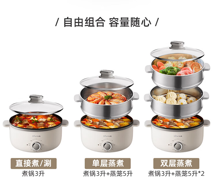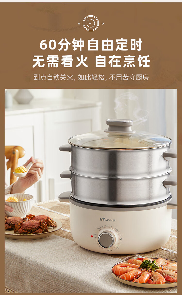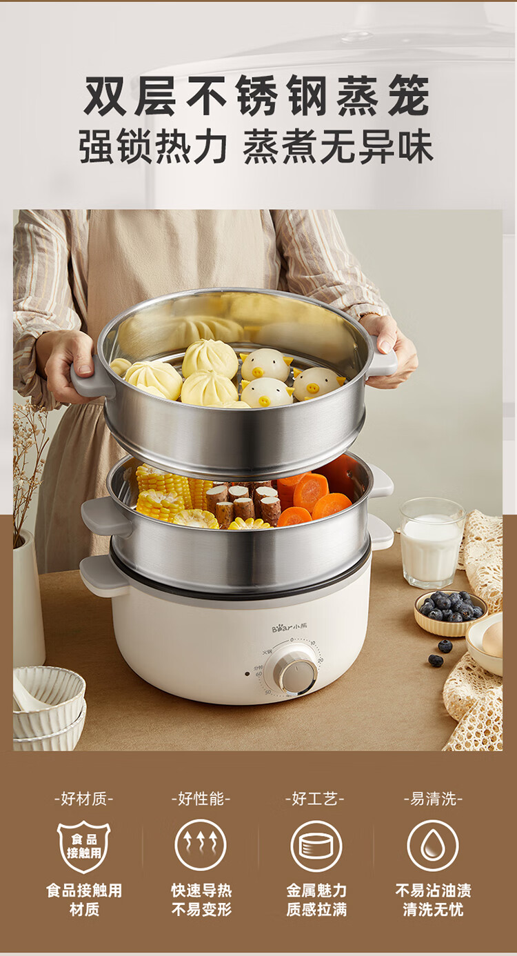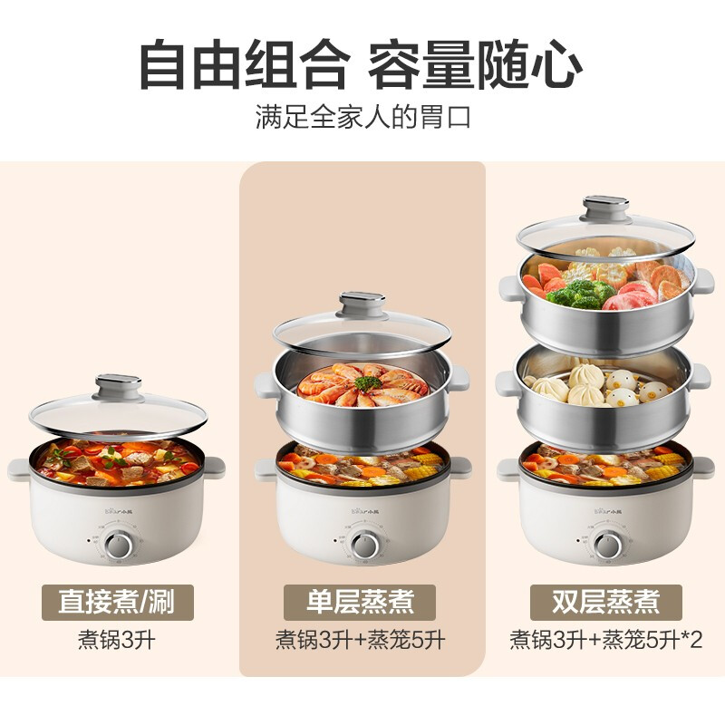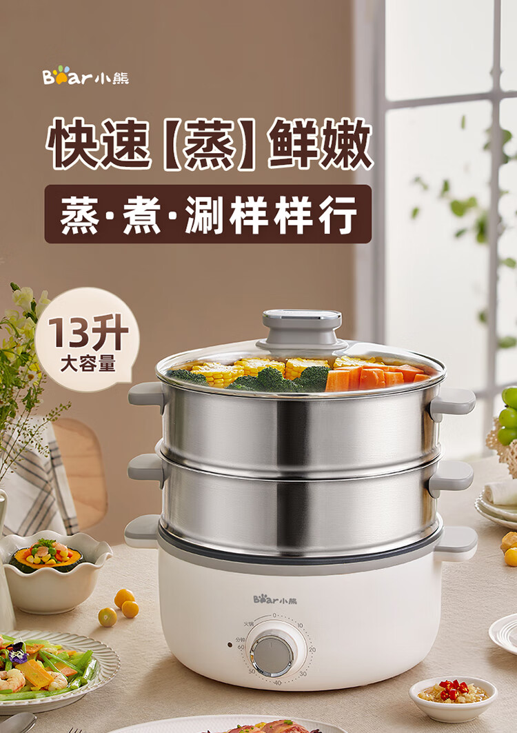 小熊(Bear)电蒸锅 蒸锅电 多用途锅 多功能家用蒸包子锅量层大容量13L定时防干烧分体式 DZG-CA3A1 自营