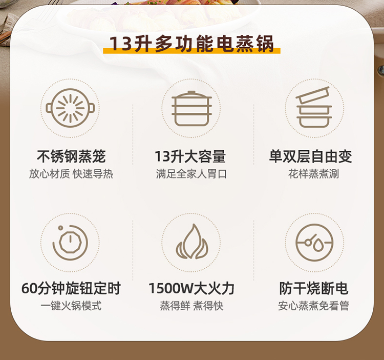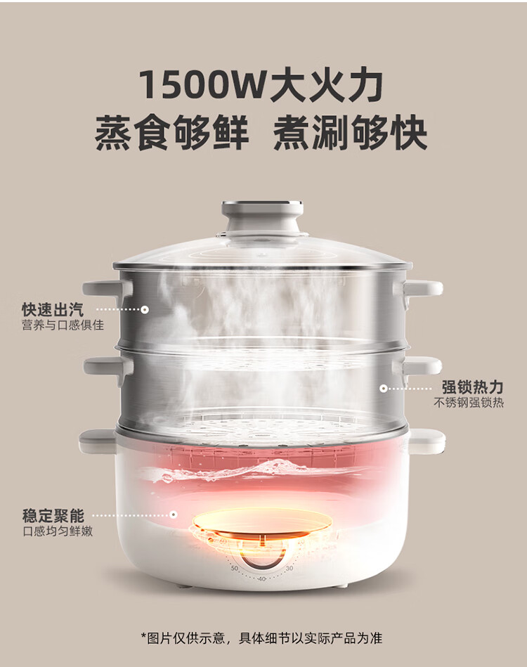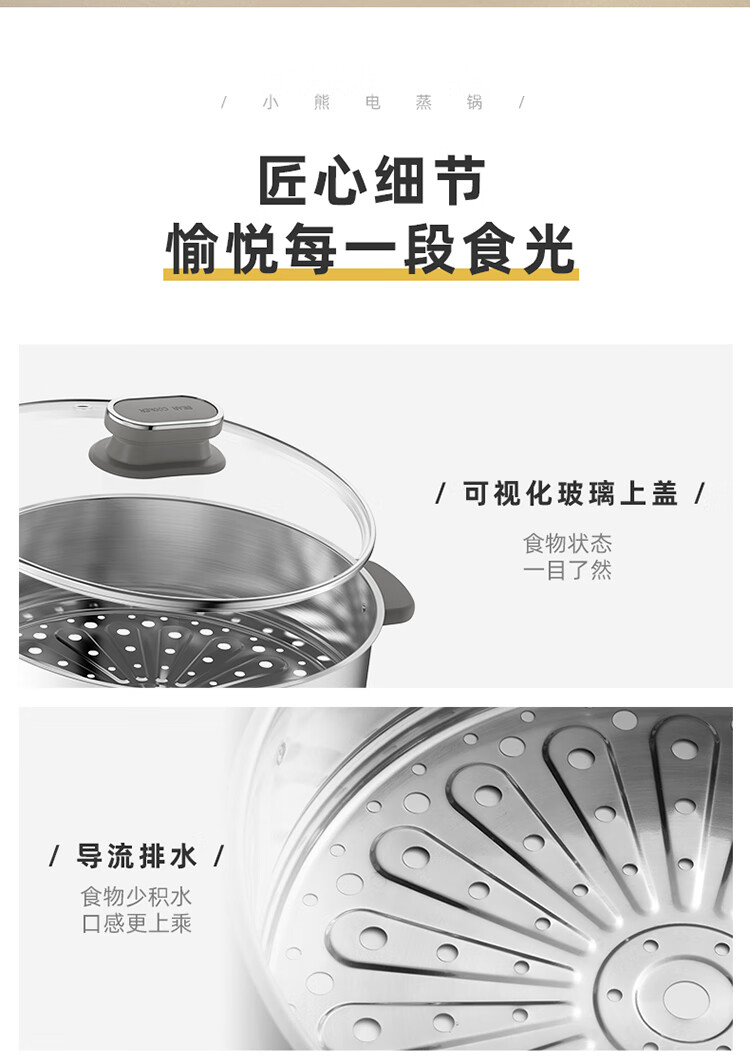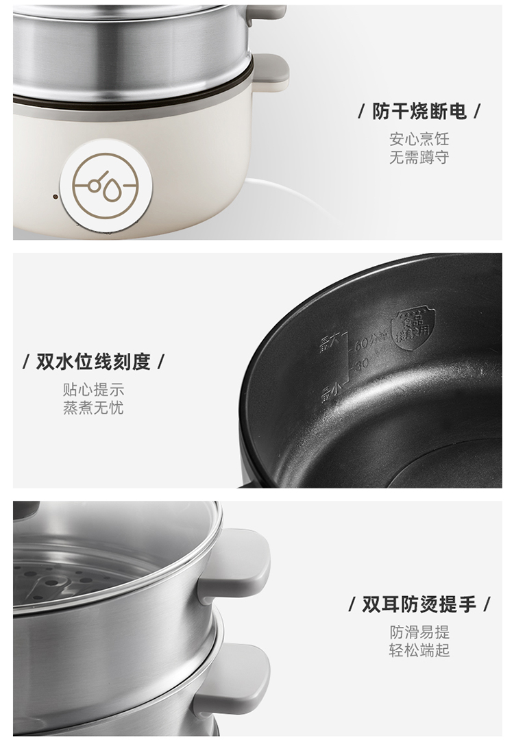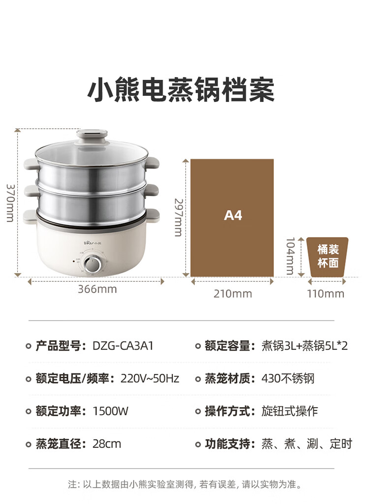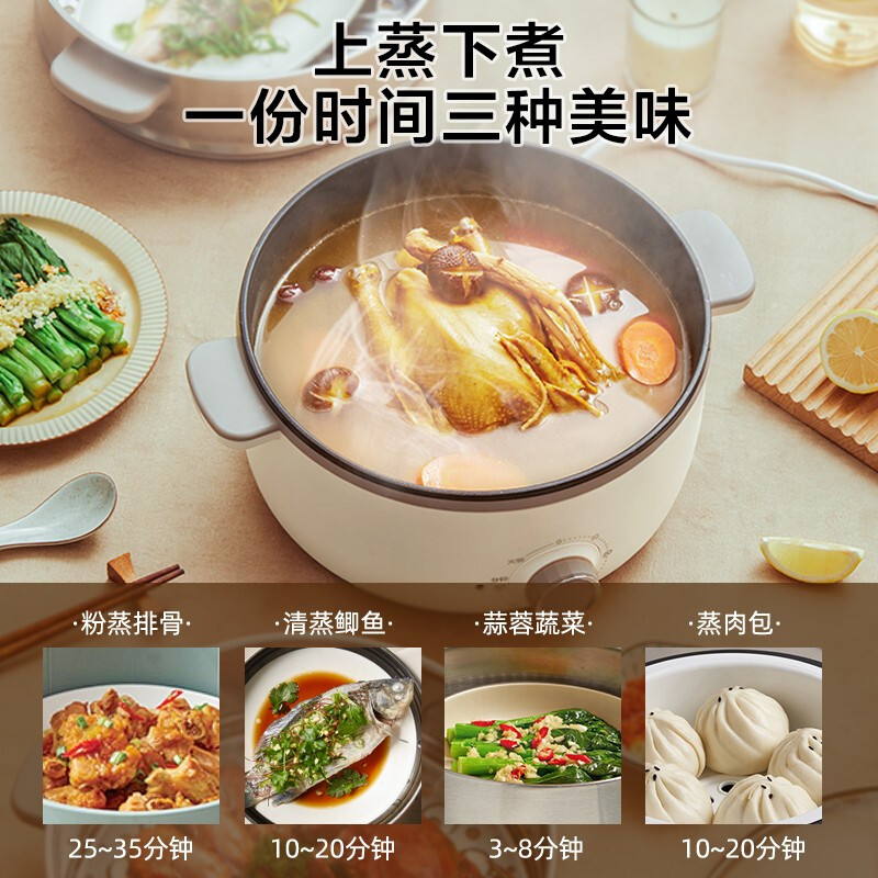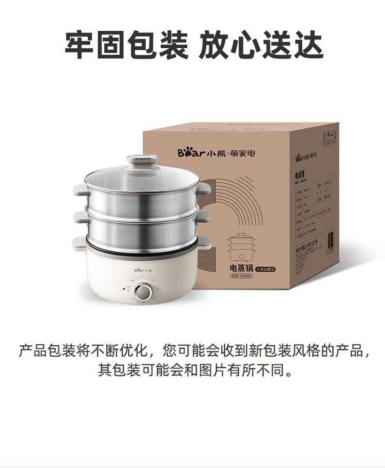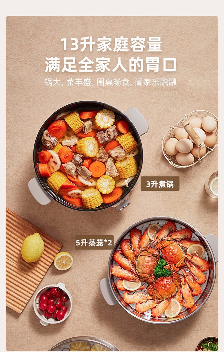 小熊(Bear)电蒸锅 蒸锅电 多用途锅 多功能家用蒸包子锅量层大容量13L定时防干烧分体式 DZG-CA3A1 自营