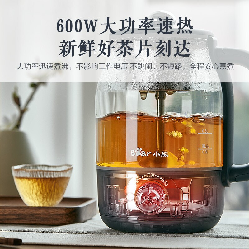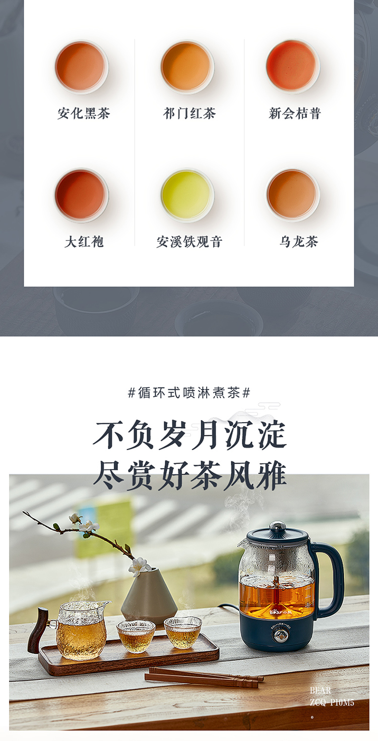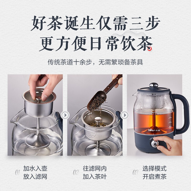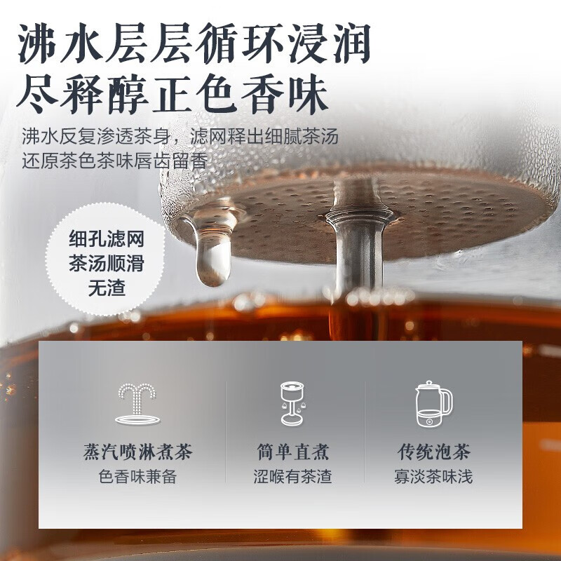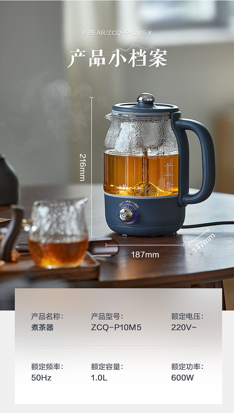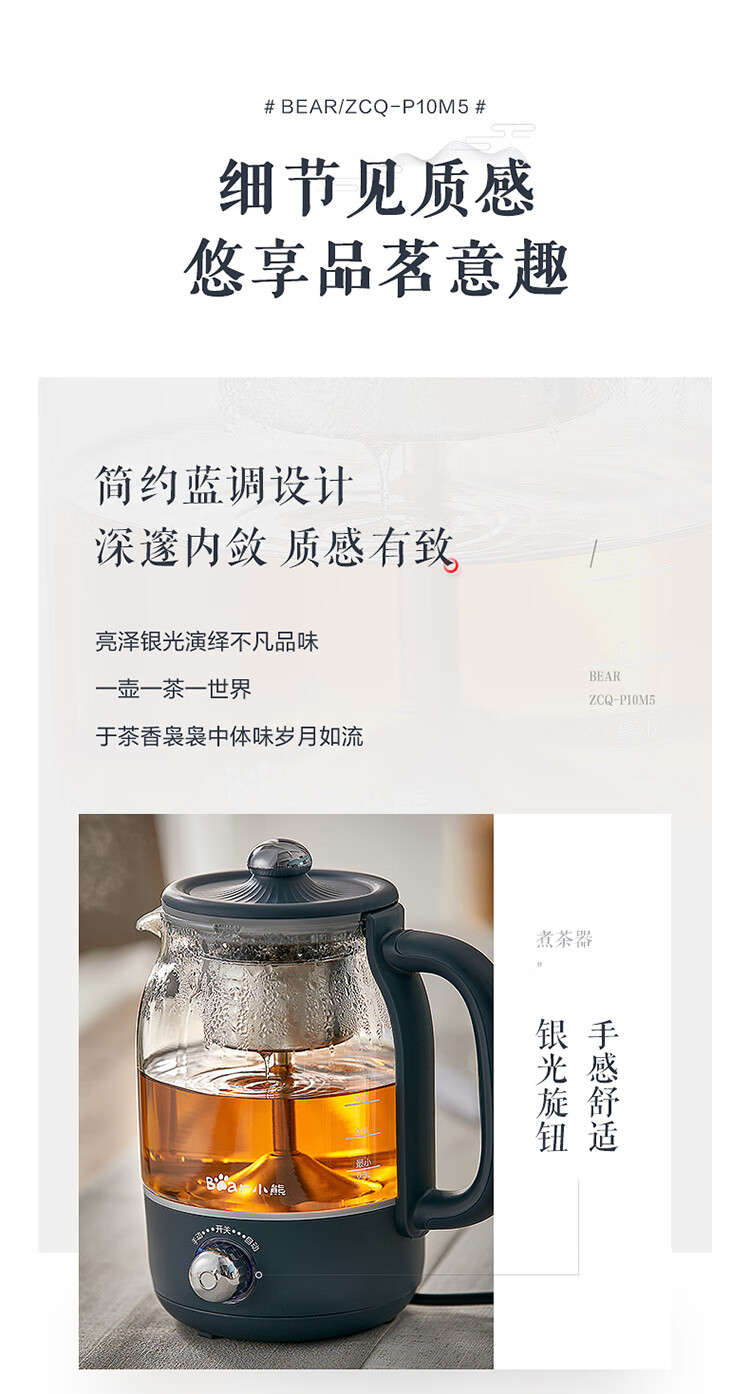小熊(Bear)煮茶器蒸汽喷淋式 养生壶黑茶煮茶壶小型迷你1L玻璃办公室蒸茶器电泡茶炉保温电热烧水壶 ZCQ-P10M5 循环式喷淋煮茶 自营