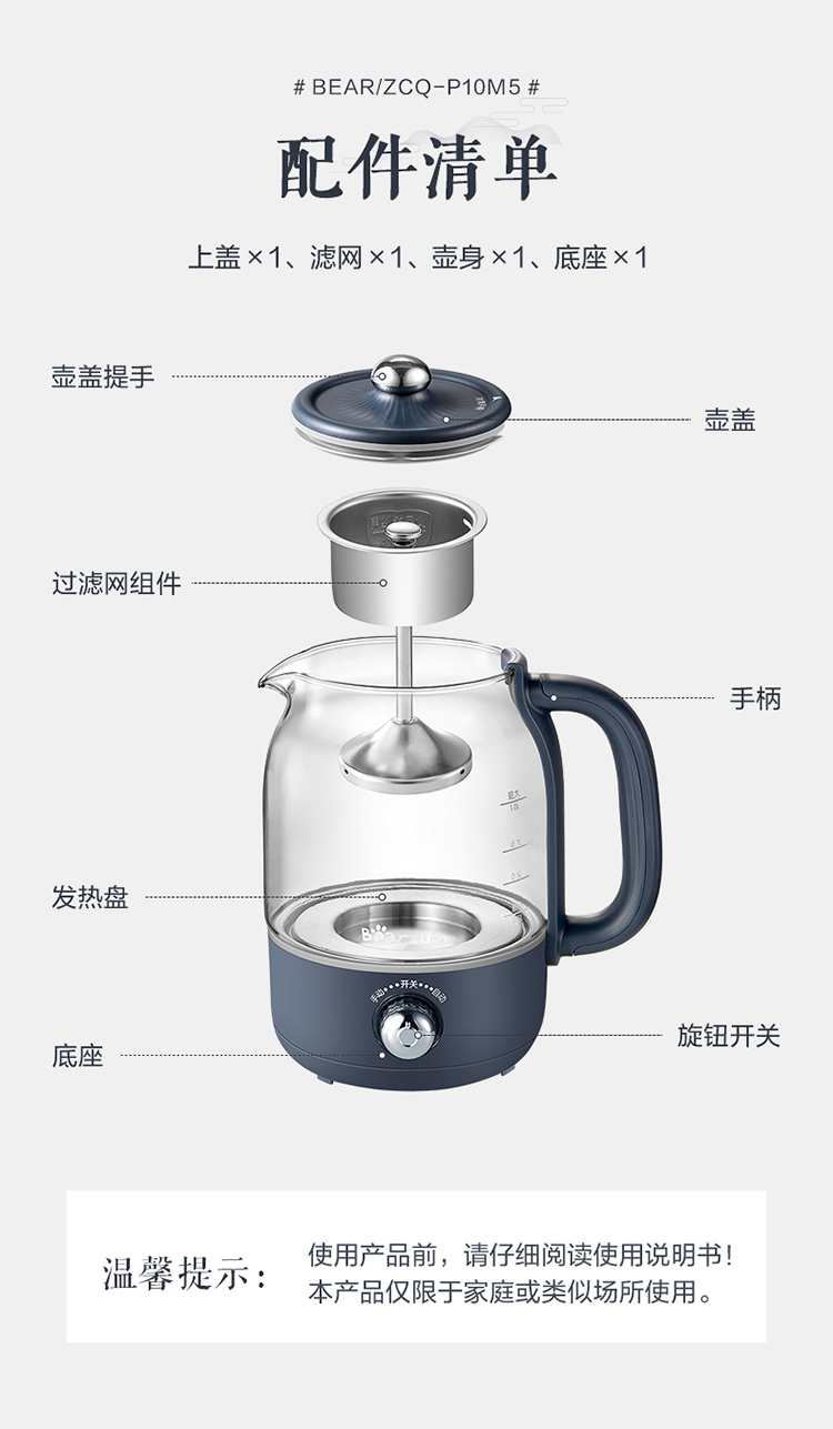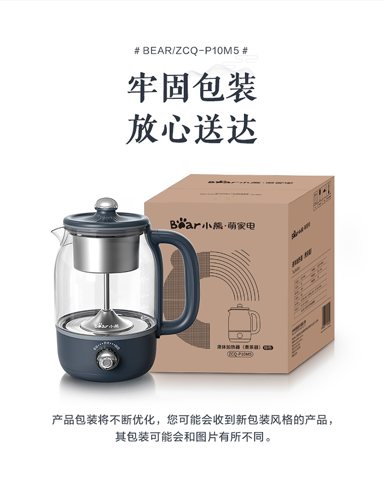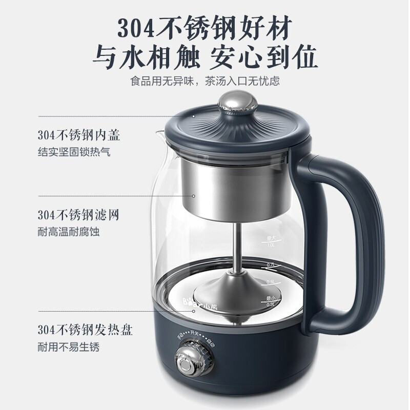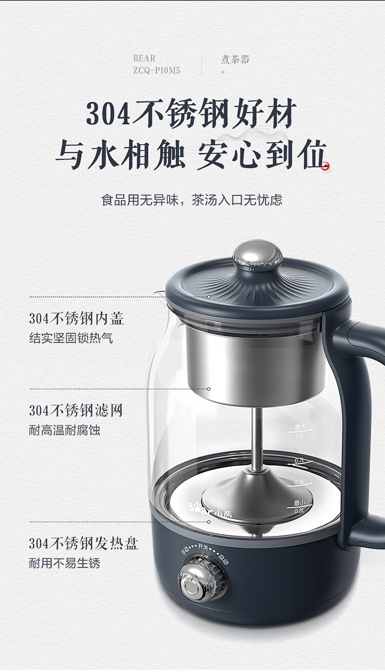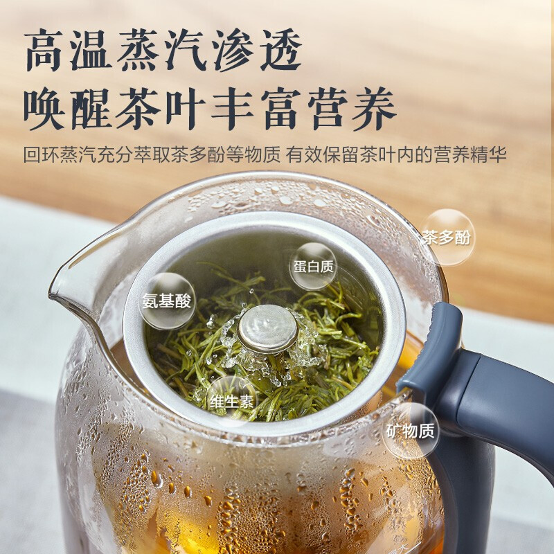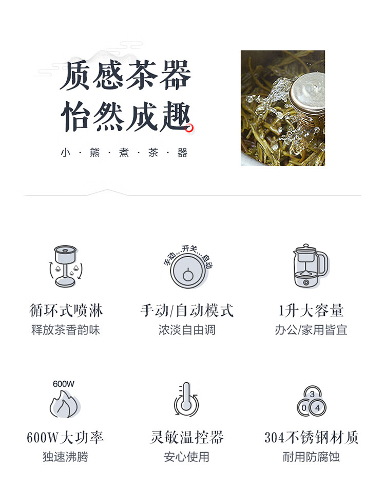 小熊(Bear)煮茶器蒸汽喷淋式 养生壶黑茶煮茶壶小型迷你1L玻璃办公室蒸茶器电泡茶炉保温电热烧水壶 ZCQ-P10M5 循环式喷淋煮茶 自营
