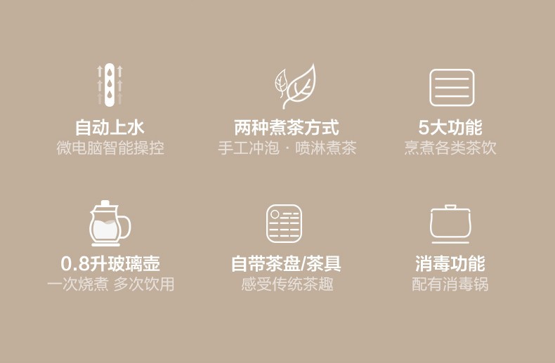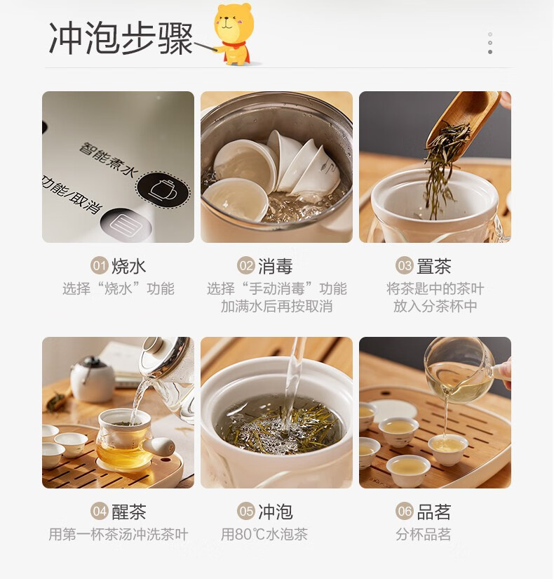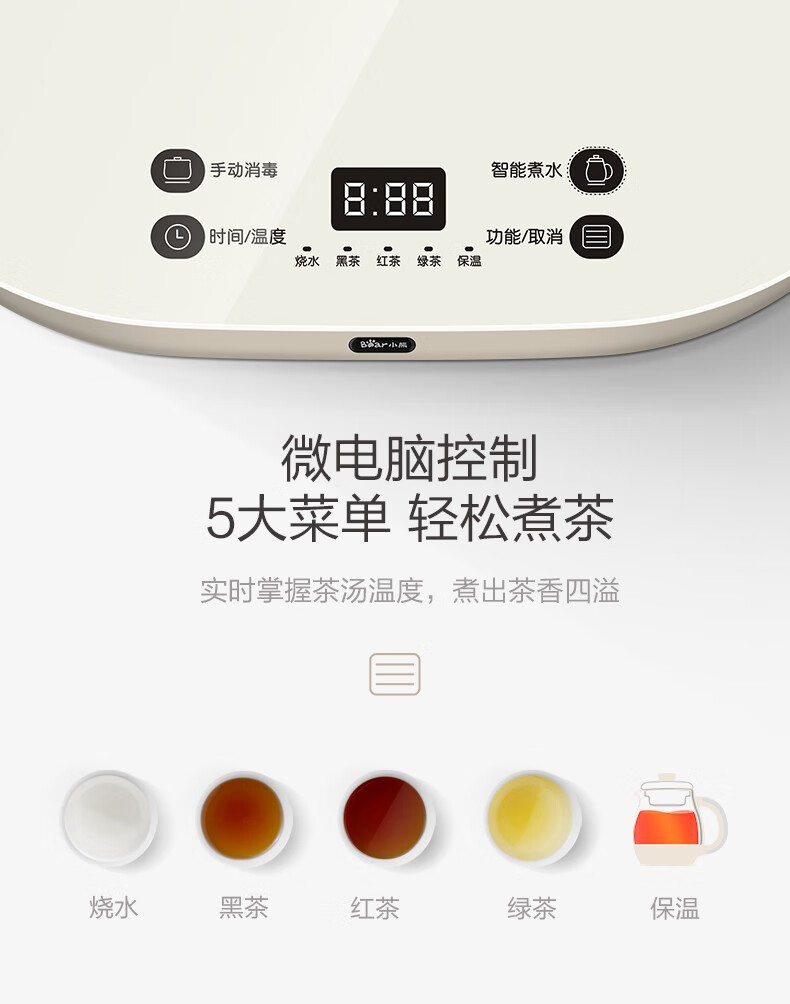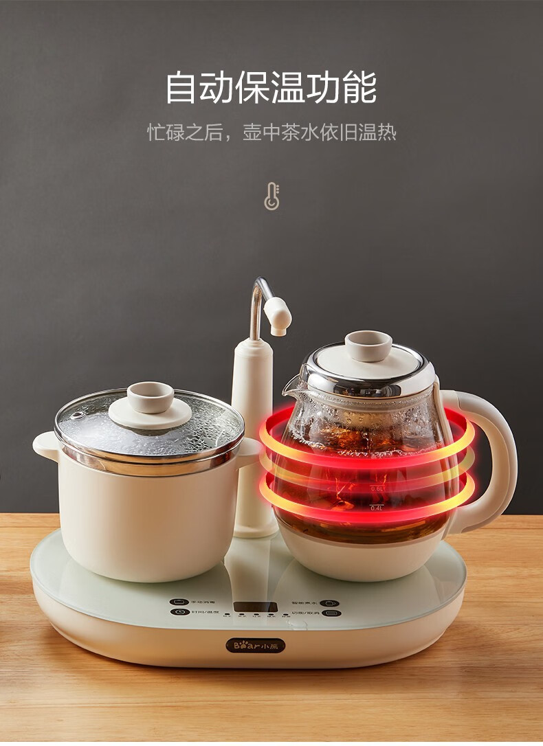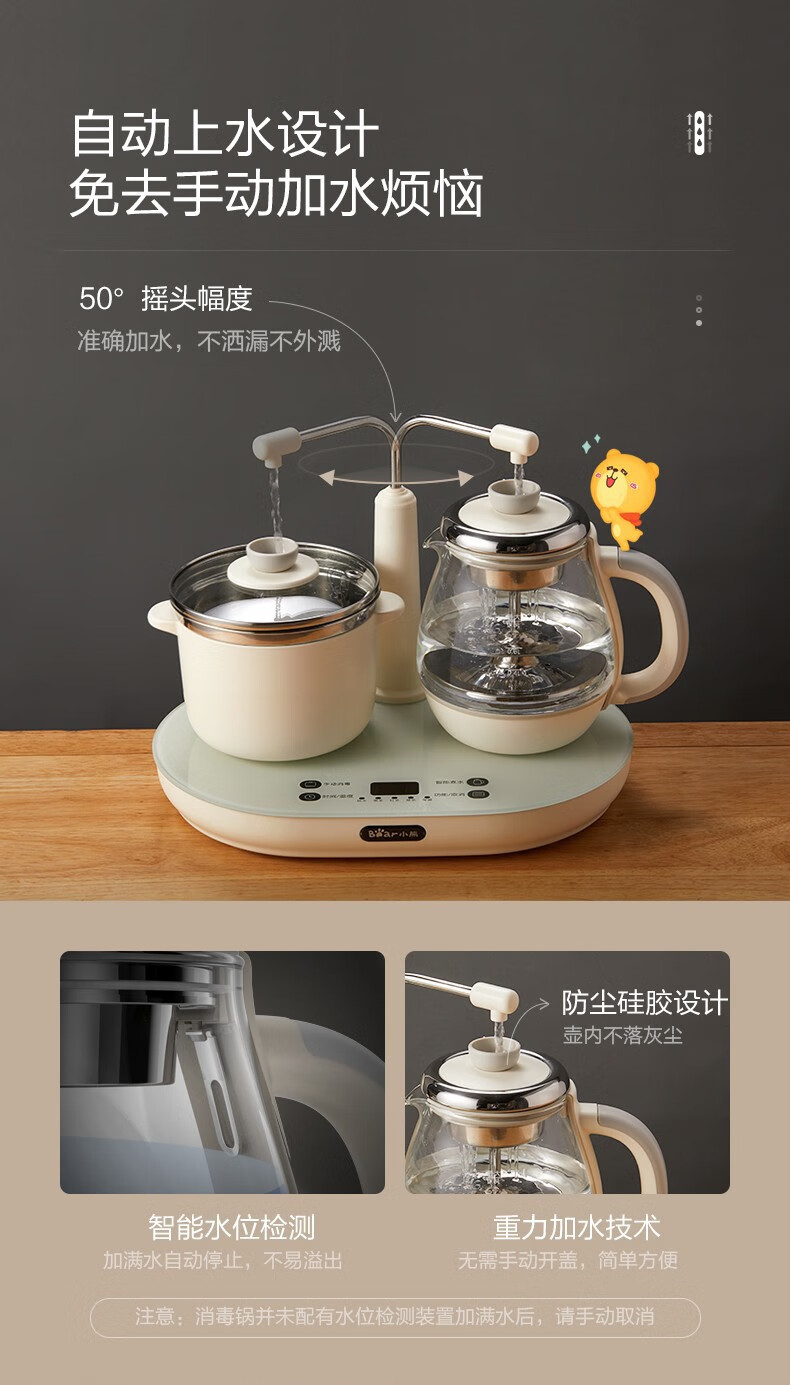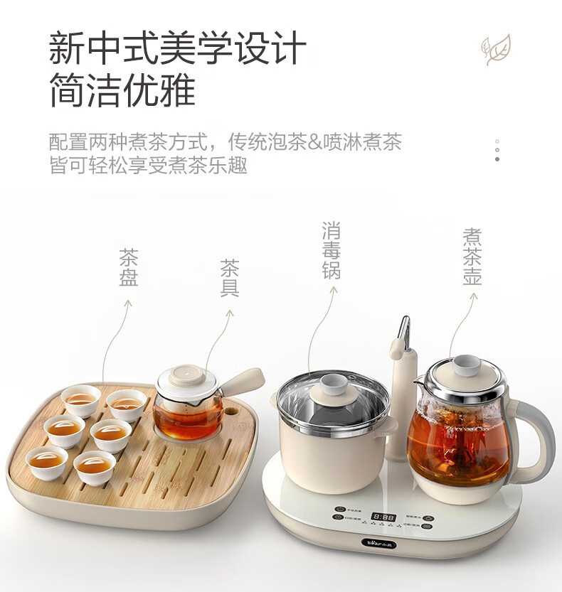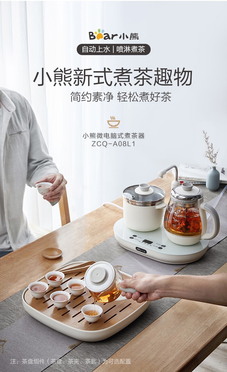 煮茶器 喷淋式自动上水小熊ZCQ-A08L1自动上水电热水壶煮茶器蒸汽喷淋式养生壶茶道礼盒 自营
