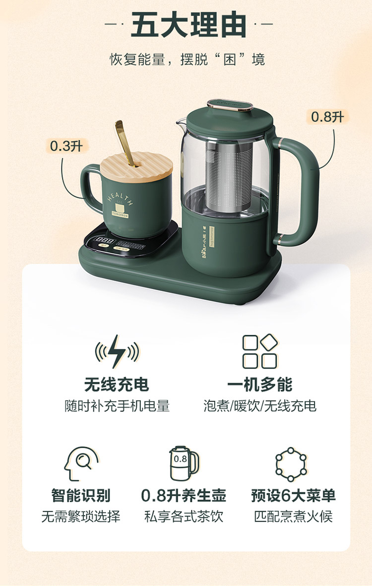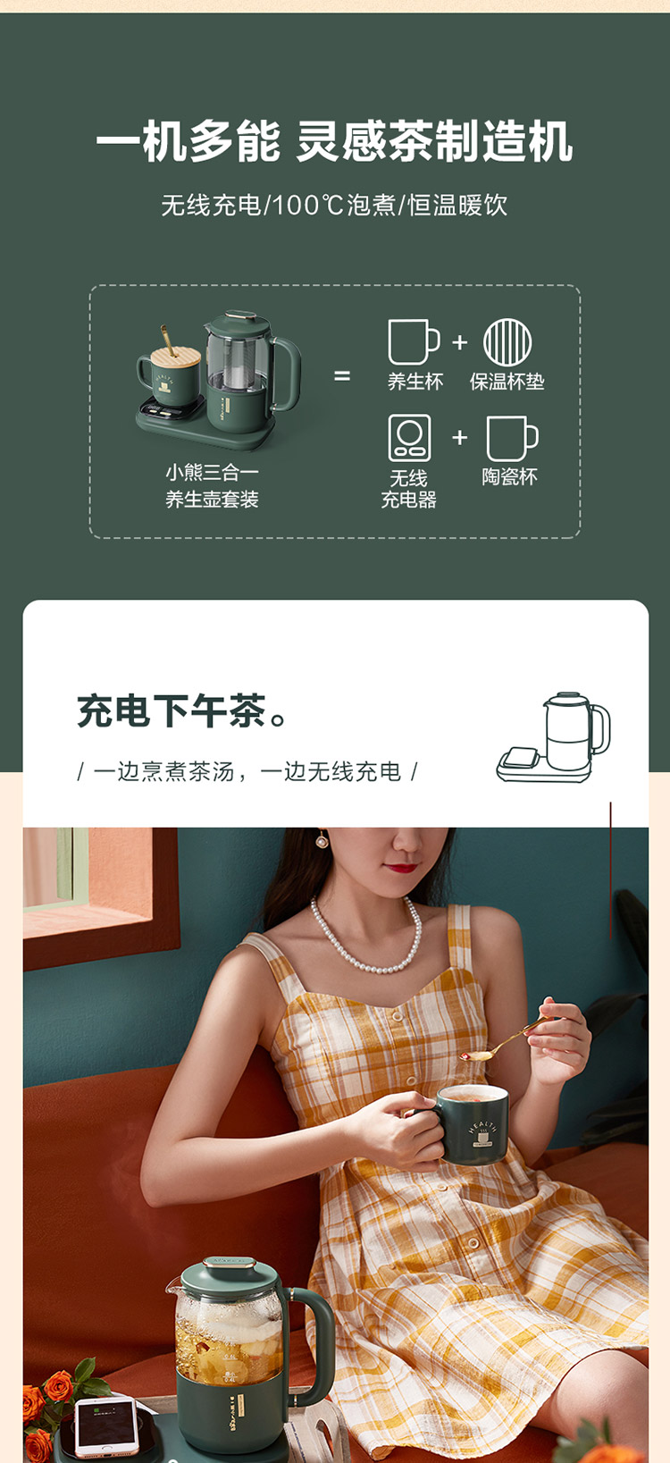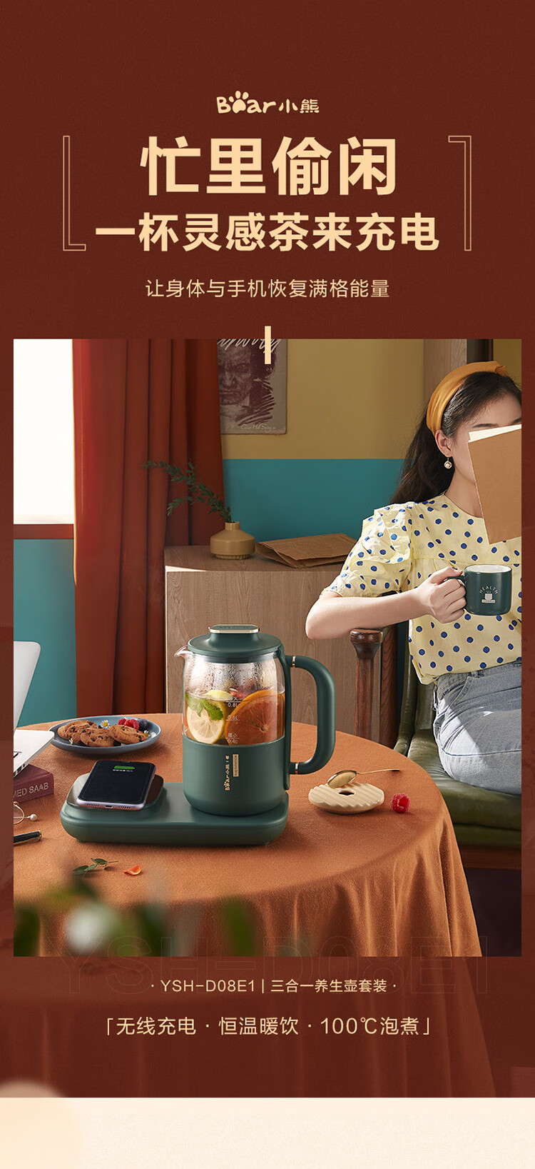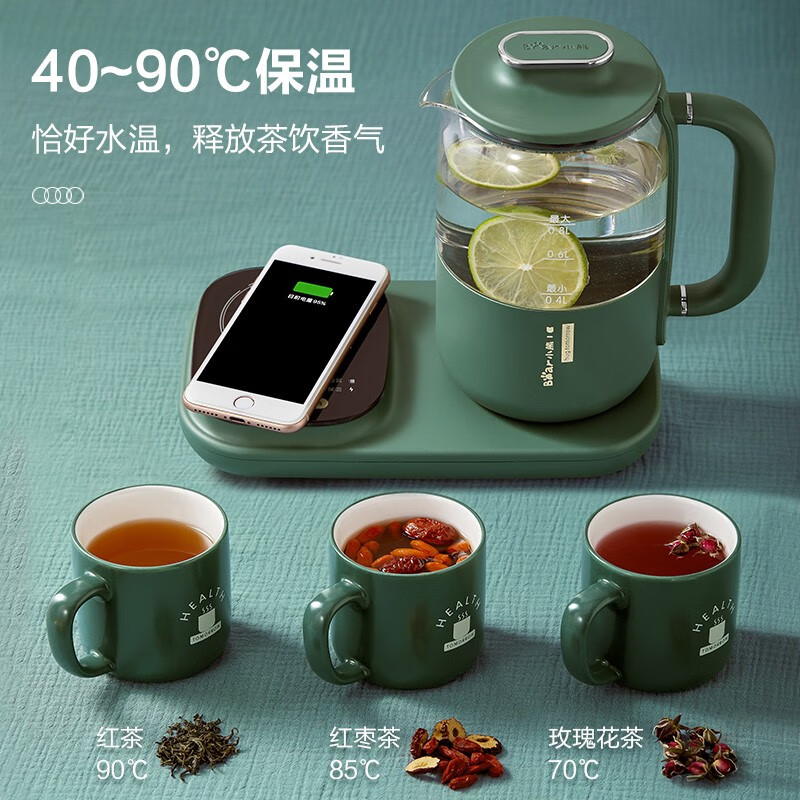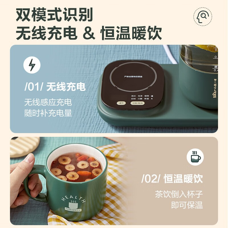 小熊(Bear)迷你养生壶无线充电mini烧水壶煮茶壶保温杯垫多功能花茶煮茶器电热水壶开水壶0.8升YSH-D08E1 自营