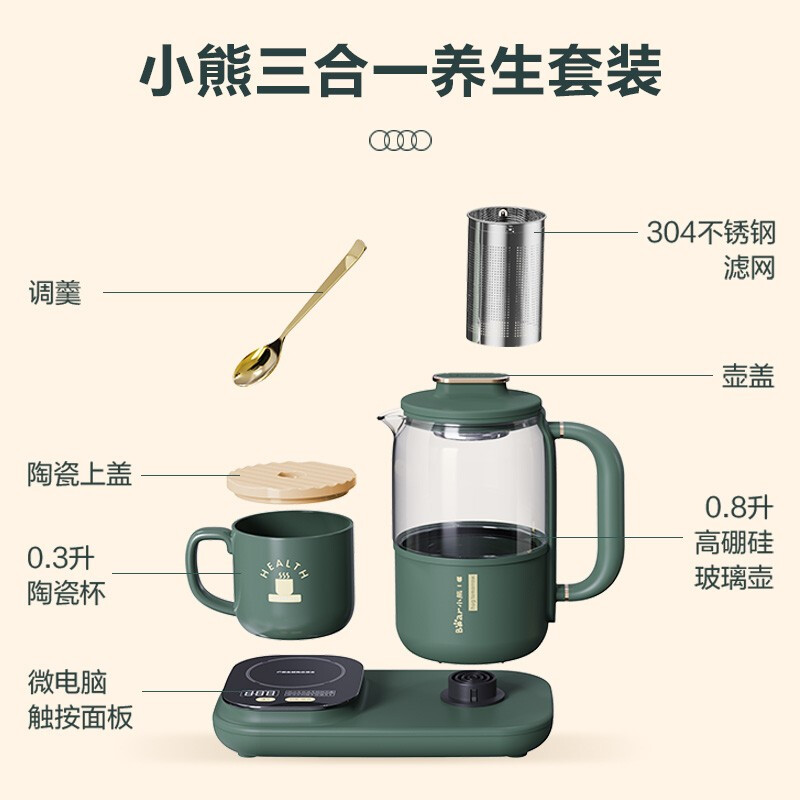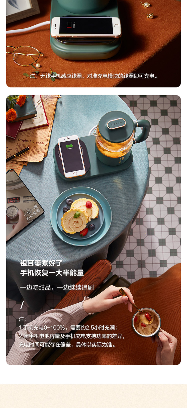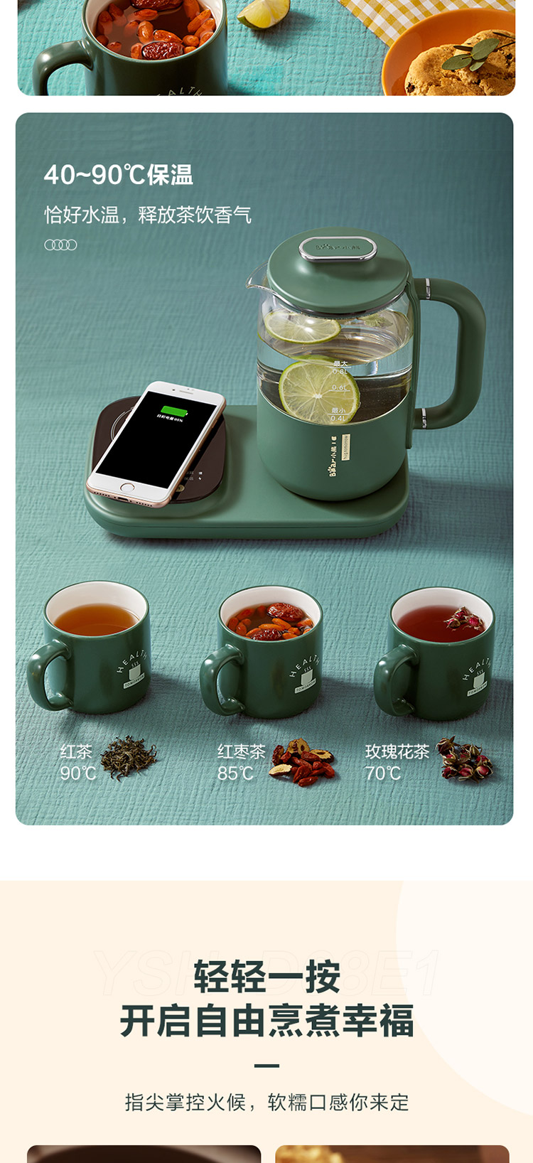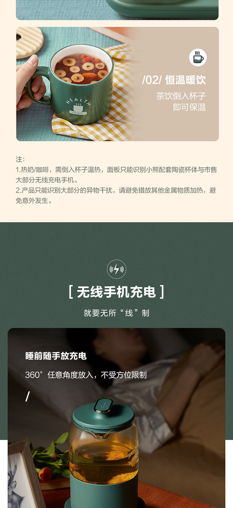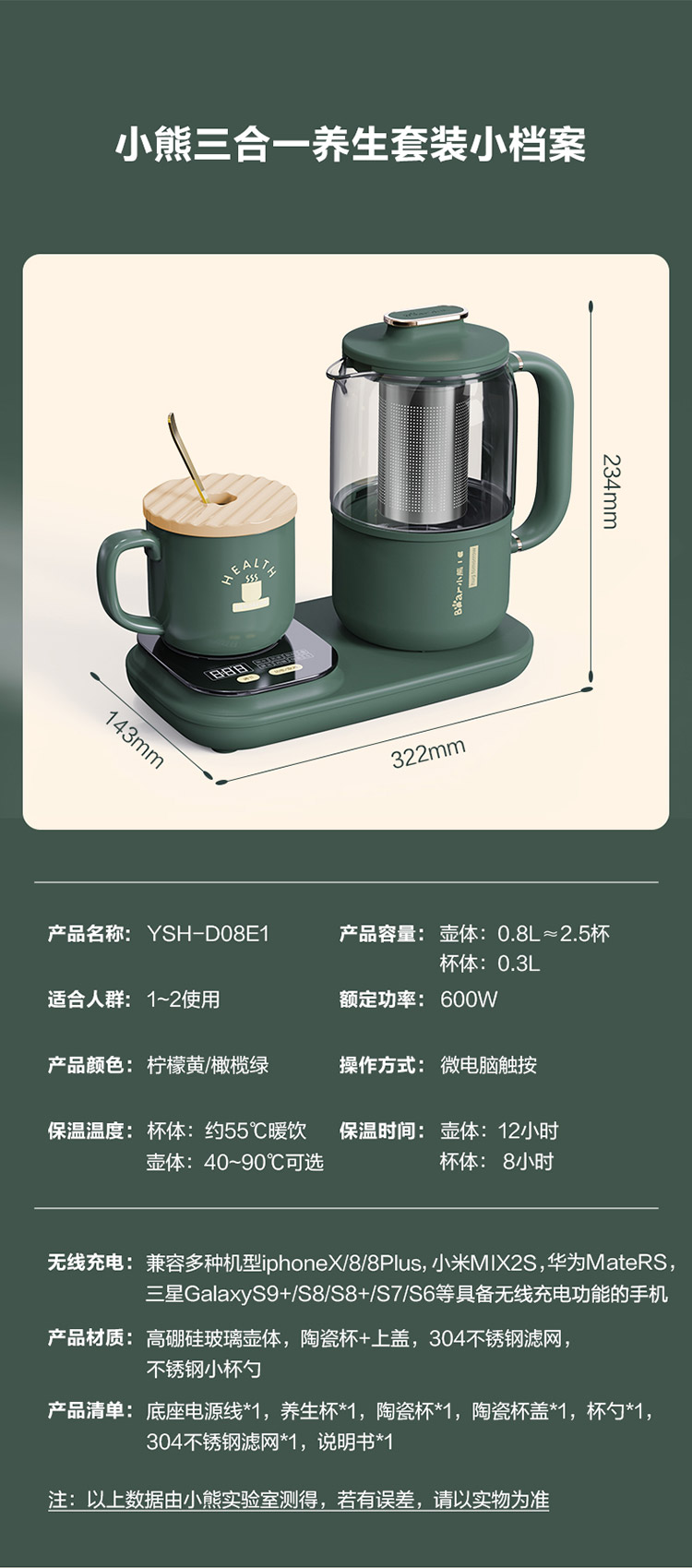 小熊(Bear)迷你养生壶无线充电mini烧水壶煮茶壶保温杯垫多功能花茶煮茶器电热水壶开水壶0.8升YSH-D08E1 自营