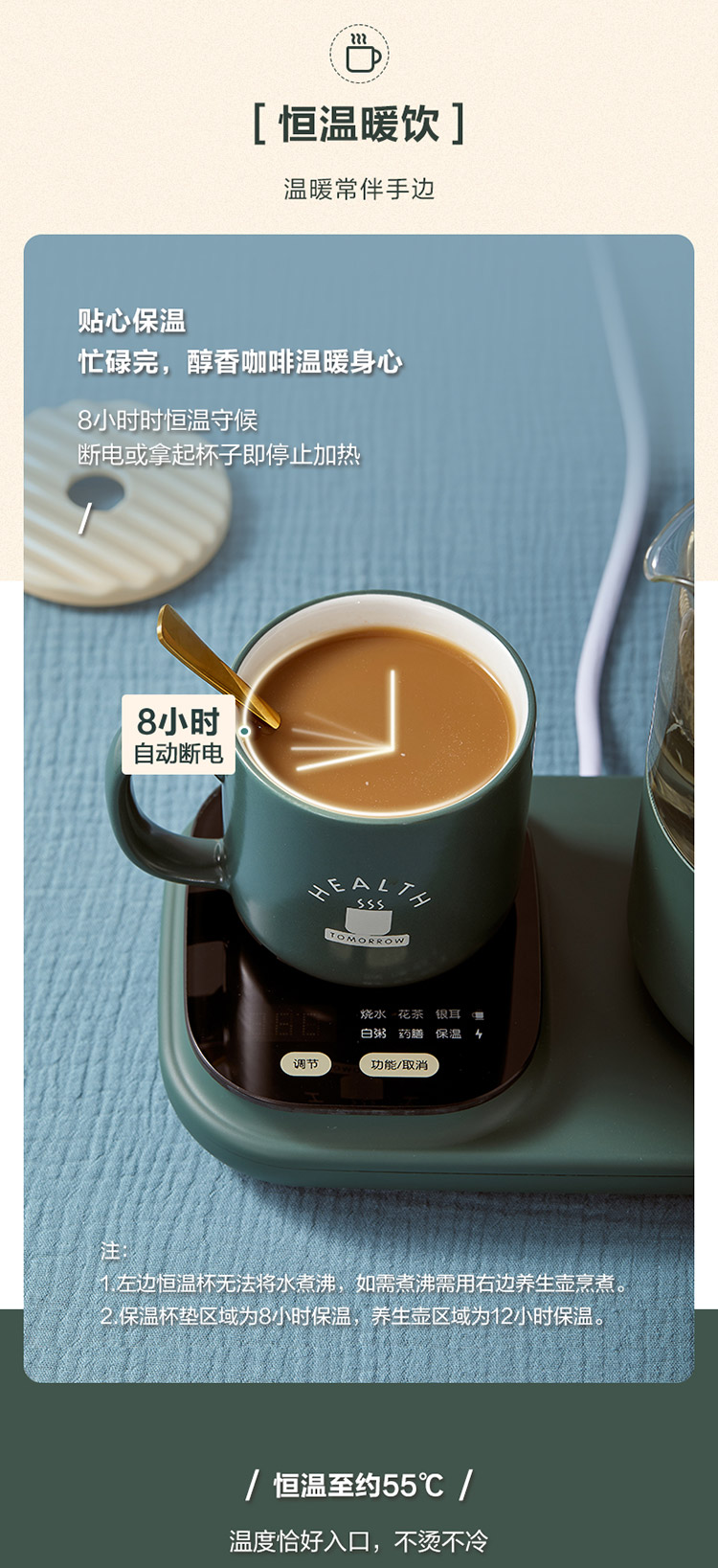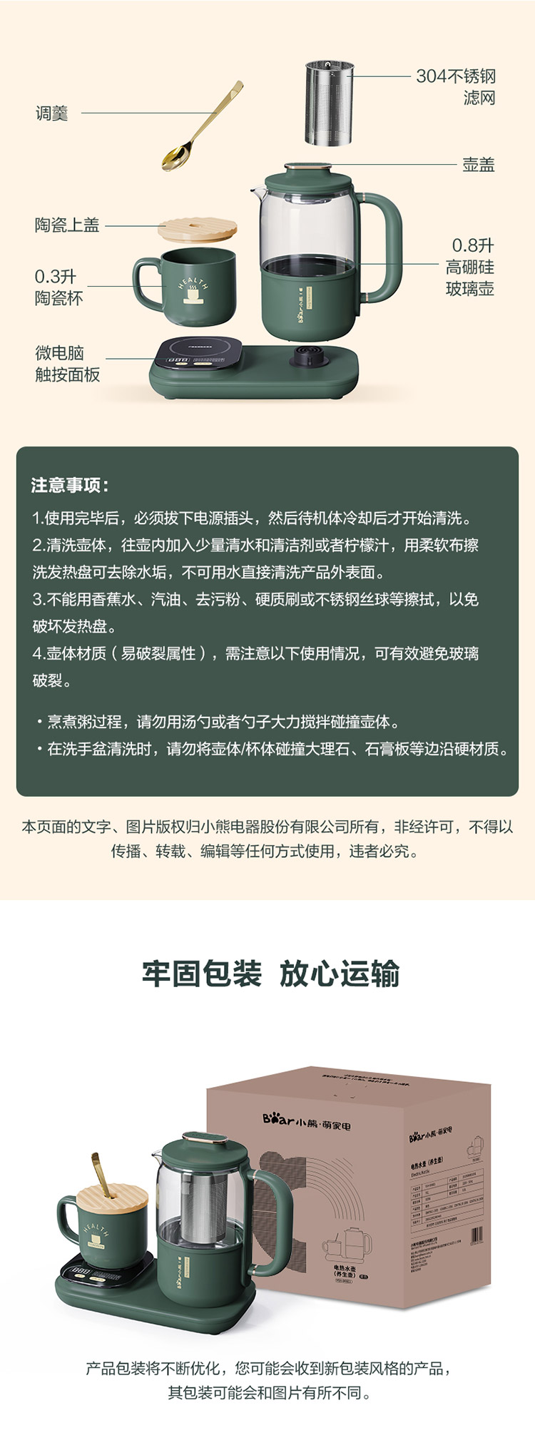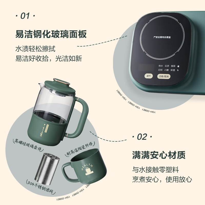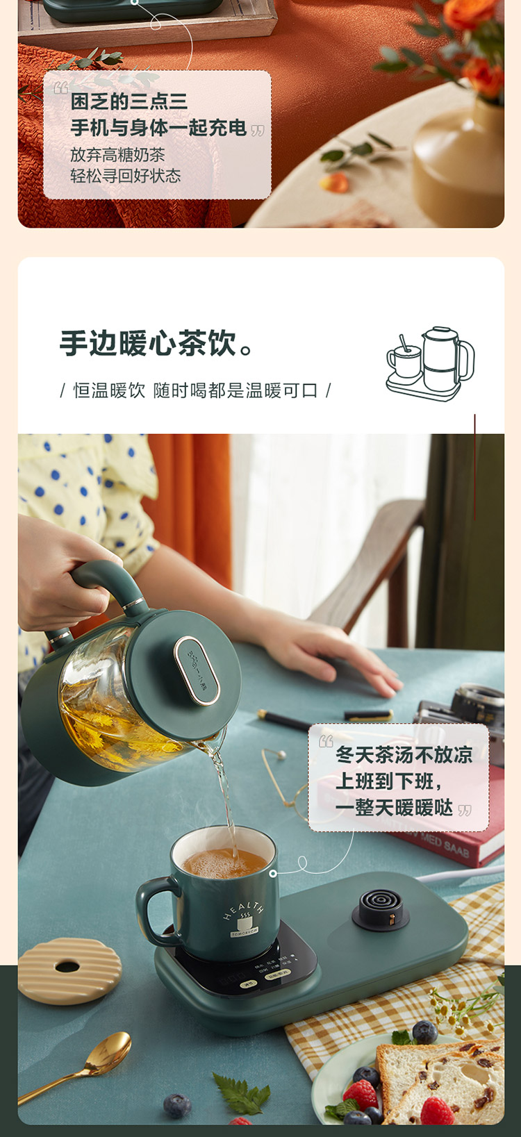 小熊(Bear)迷你养生壶无线充电mini烧水壶煮茶壶保温杯垫多功能花茶煮茶器电热水壶开水壶0.8升YSH-D08E1 自营