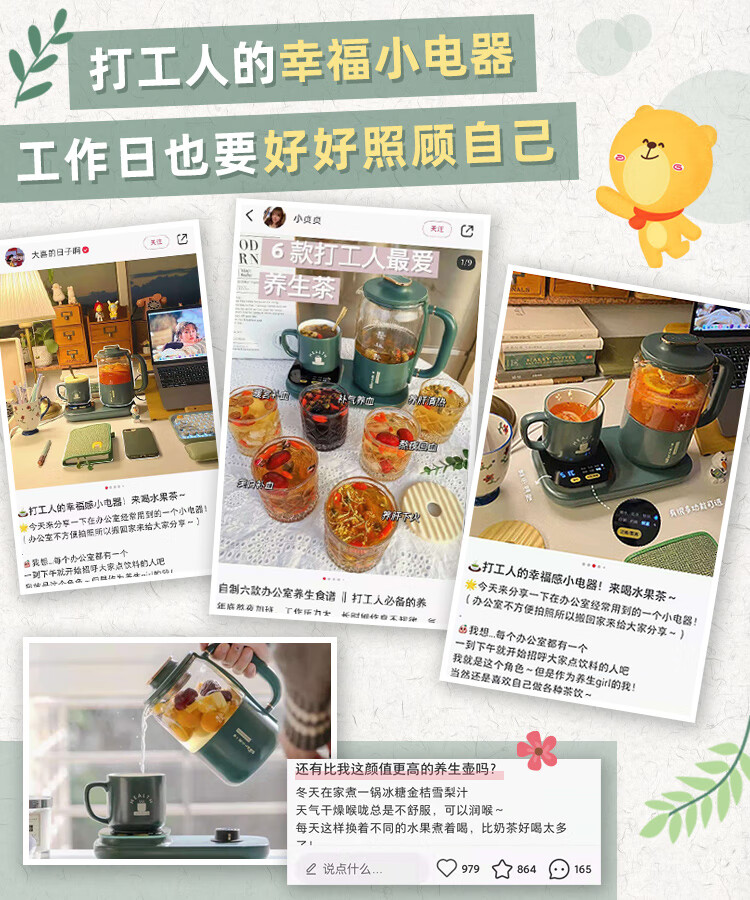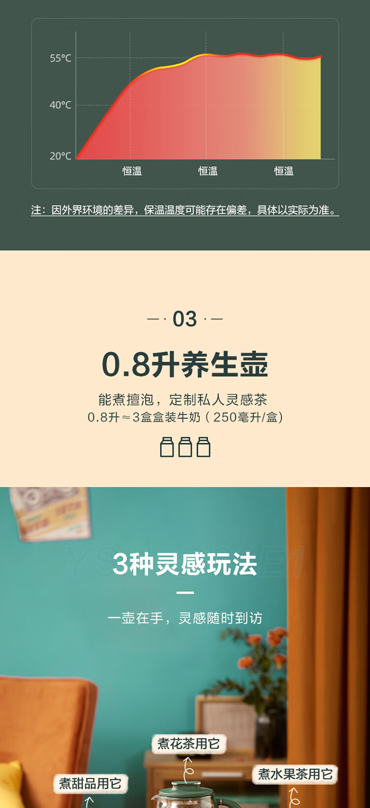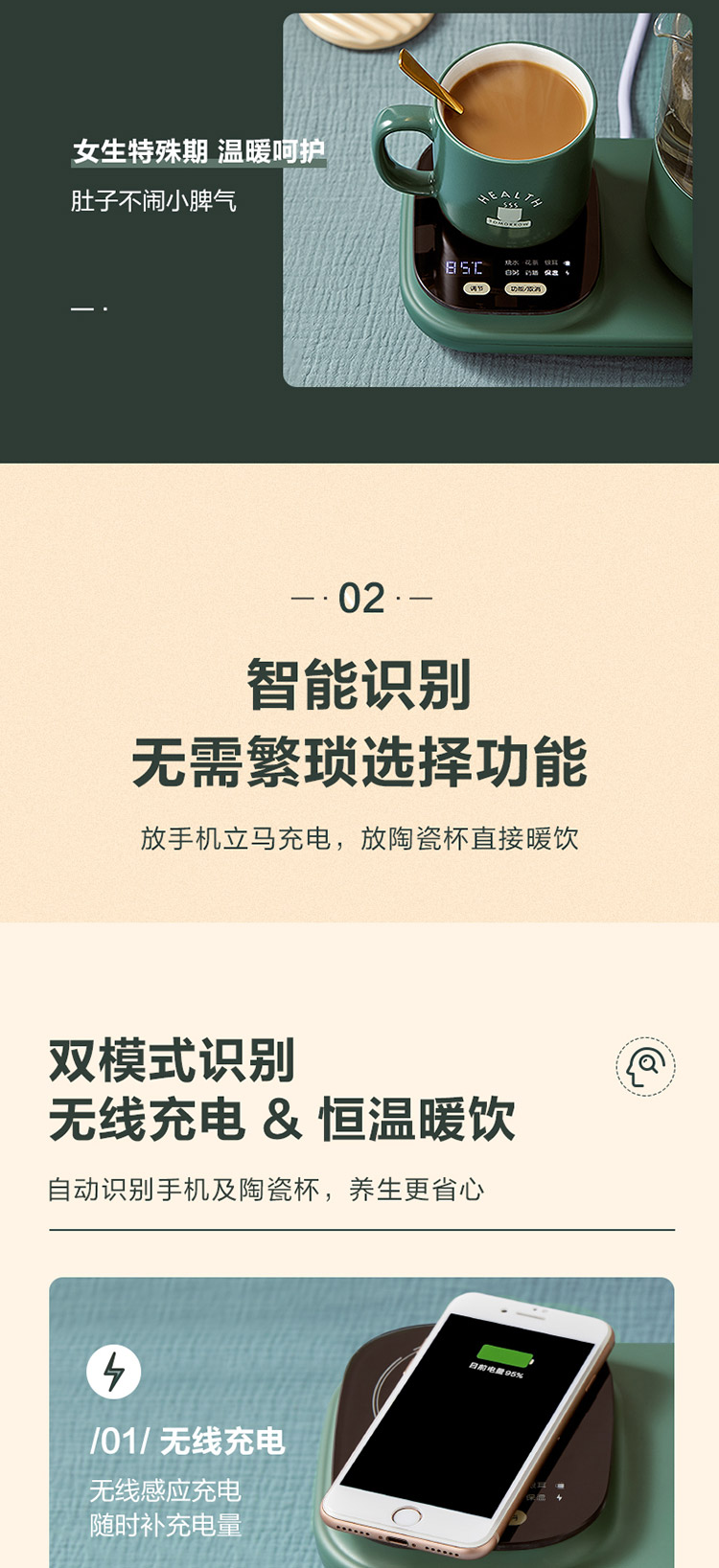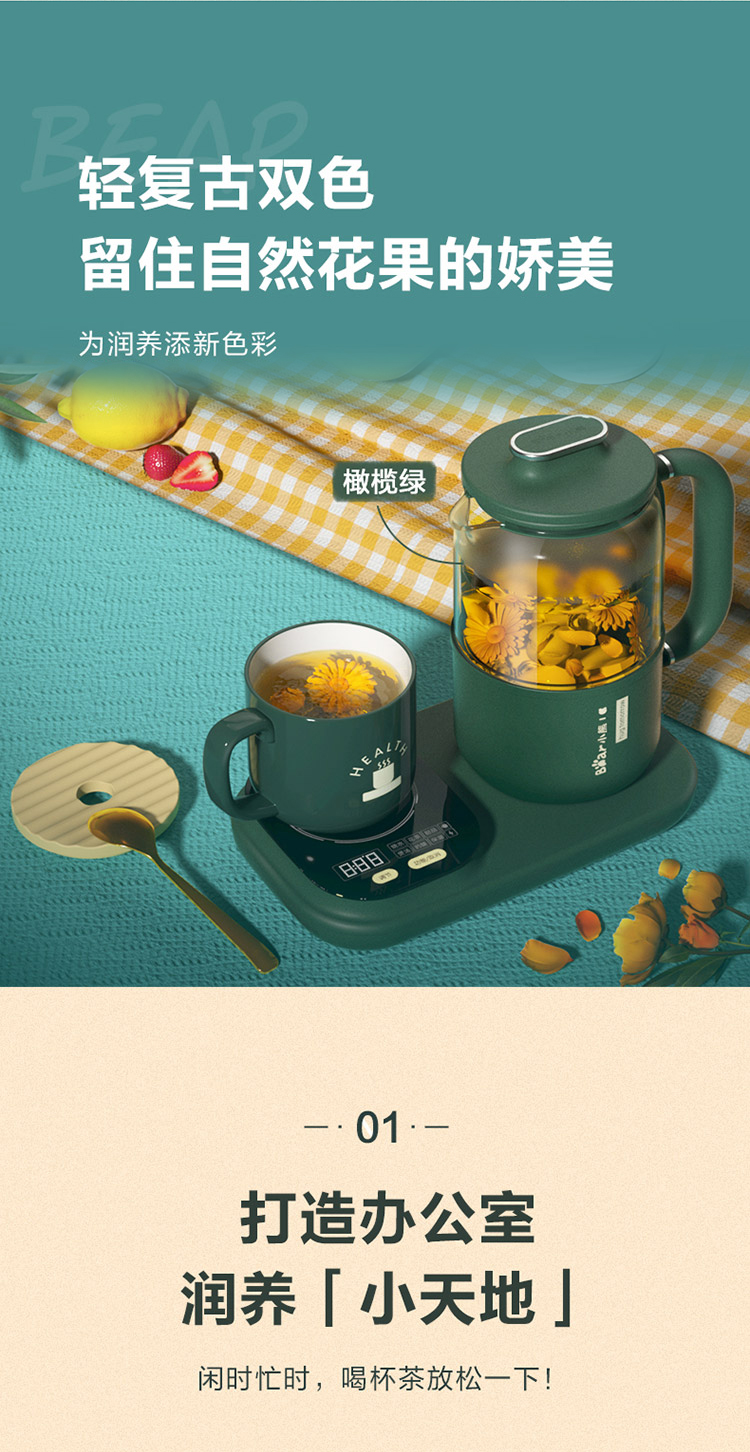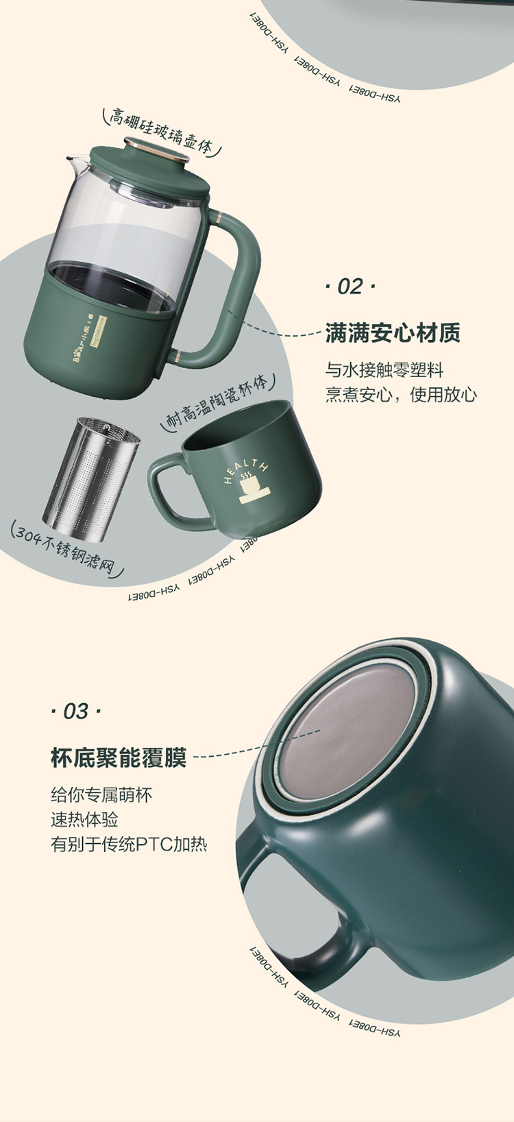 小熊(Bear)迷你养生壶无线充电mini烧水壶煮茶壶保温杯垫多功能花茶煮茶器电热水壶开水壶0.8升YSH-D08E1 自营