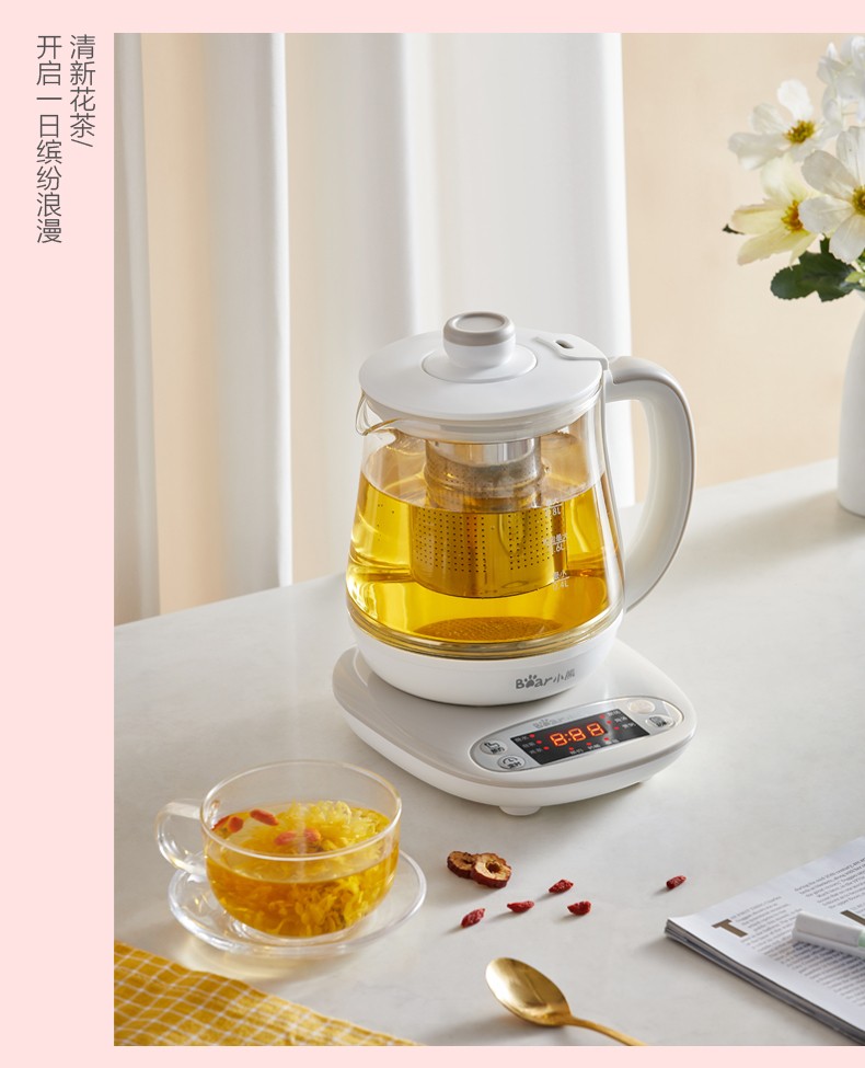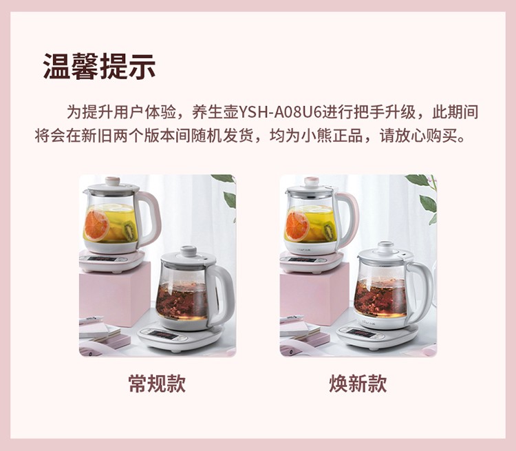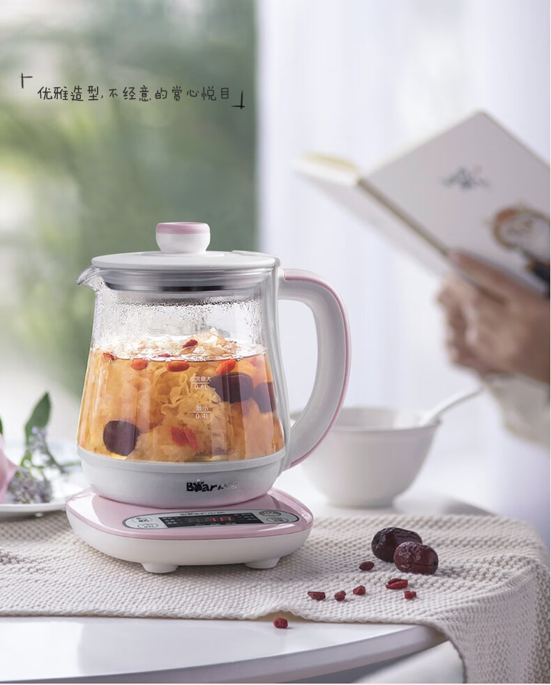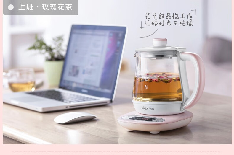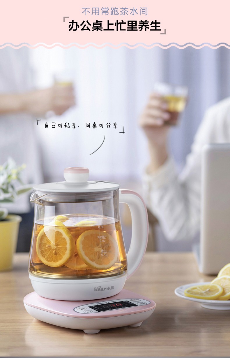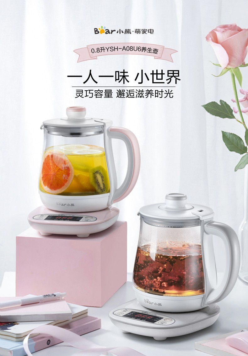 小熊(Bear) 迷你养生壶 煮花茶壶电热水壶电煮锅玻璃加厚保温杯 YSH-A08U6 灰色 自营