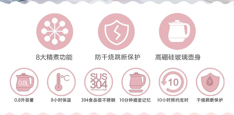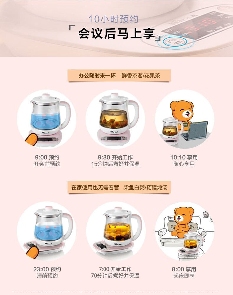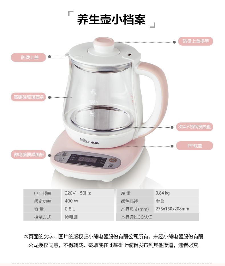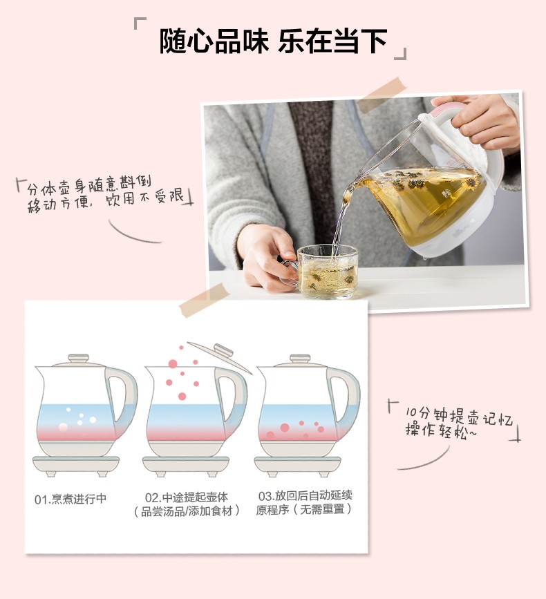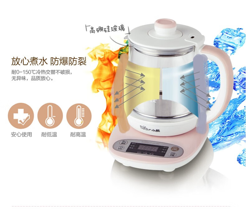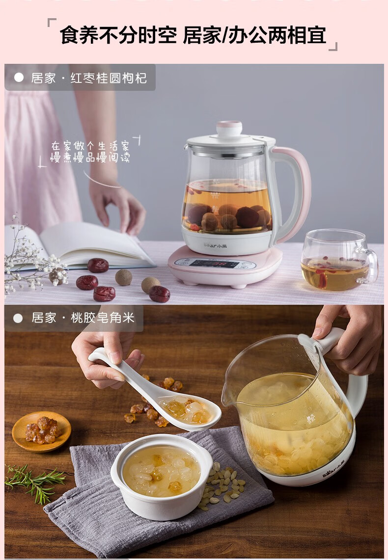 小熊(Bear) 迷你养生壶 煮花茶壶电热水壶电煮锅玻璃加厚保温杯 YSH-A08U6 灰色 自营