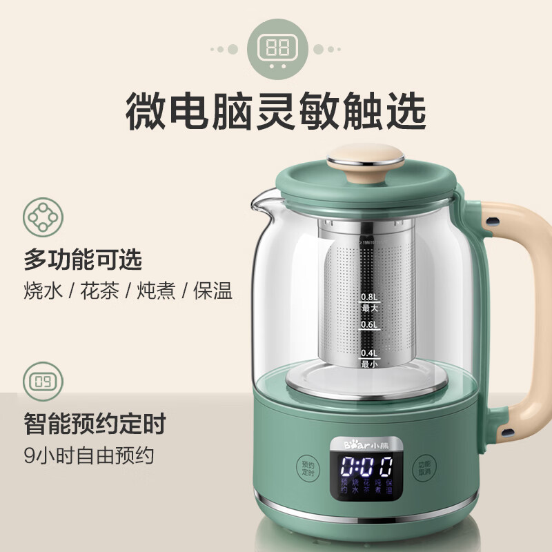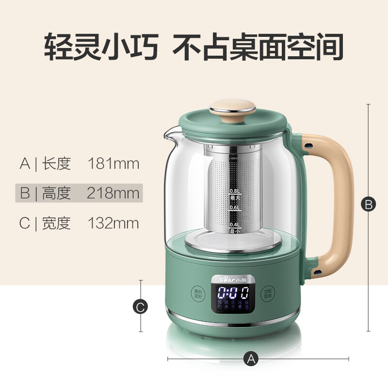 小熊(Bear)迷你养生杯养生壶煮茶器 办公室家用便携煮茶壶恒温烧水壶小型花茶壶0.8升YSH-C08T1 自营