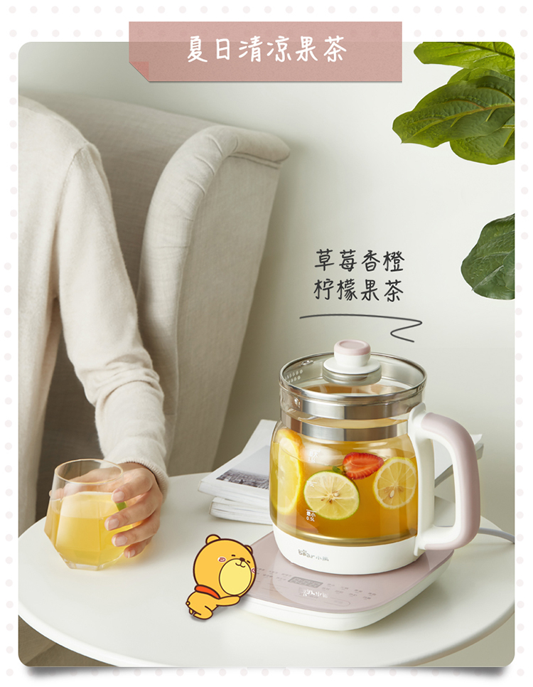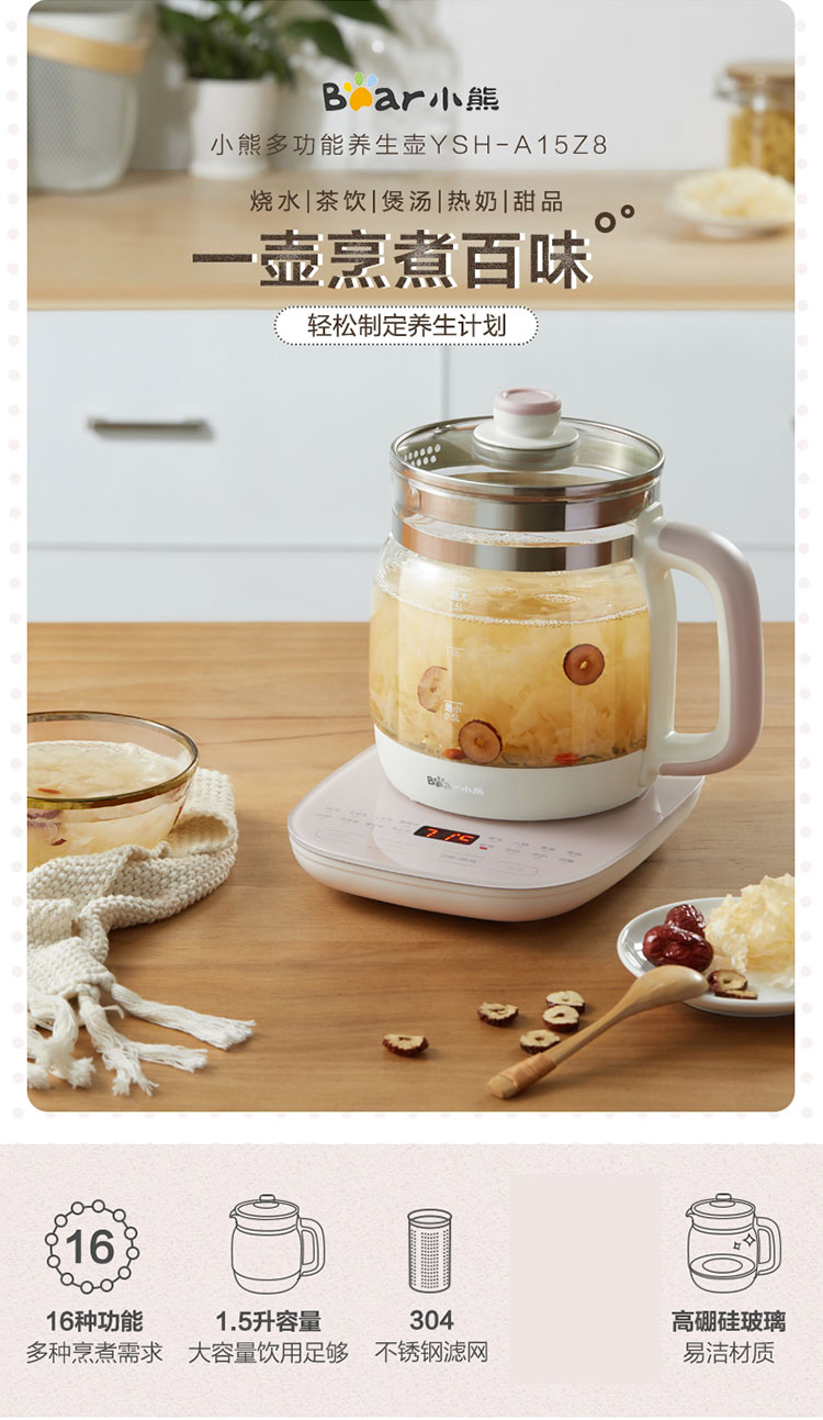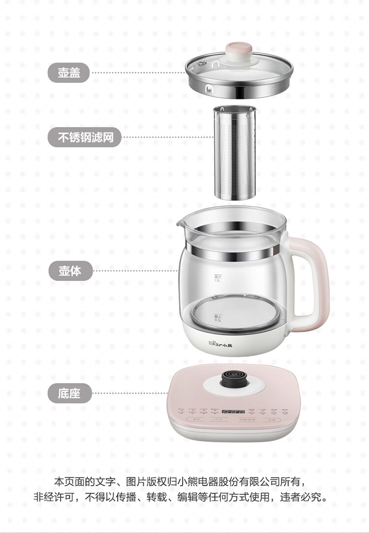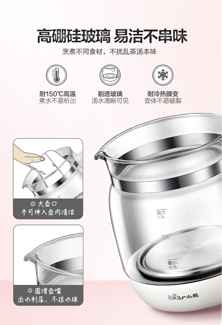 小熊(Bear)养生壶电水壶花茶壶玻璃加厚煮茶器1.5L YSH-A15Z8 (带滤网) 自营