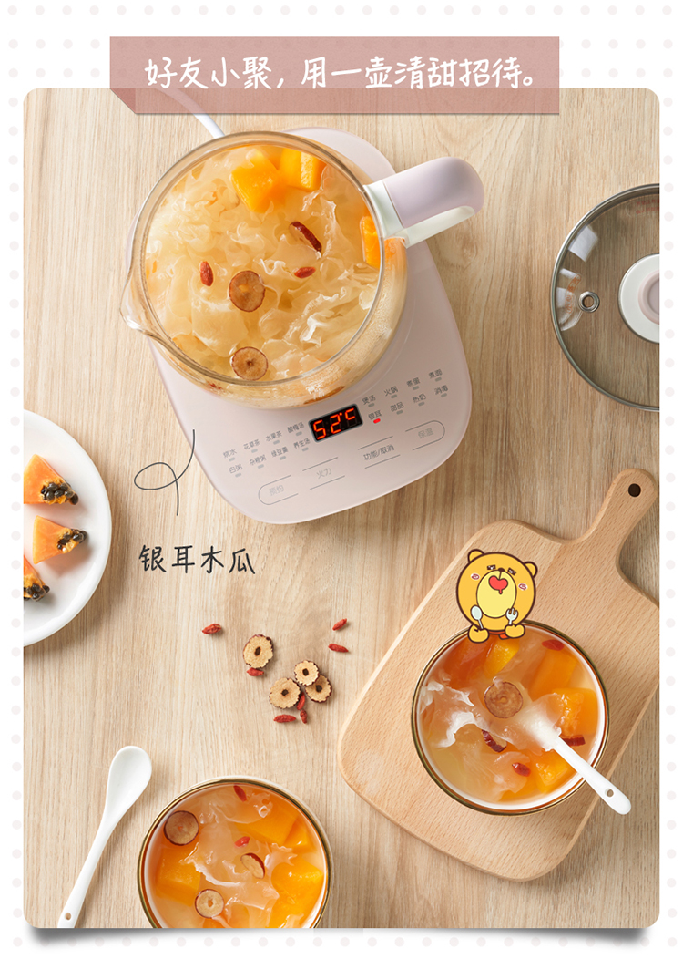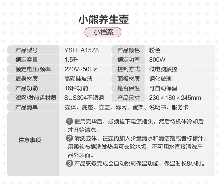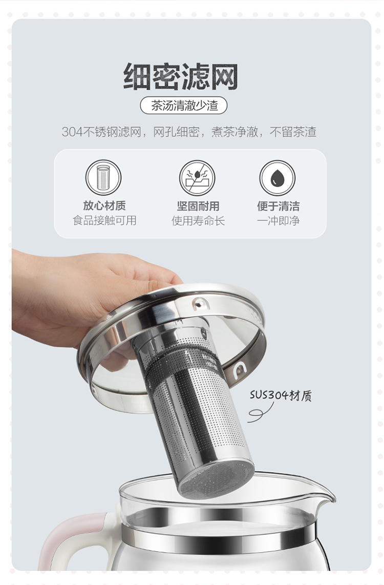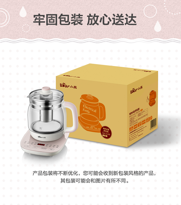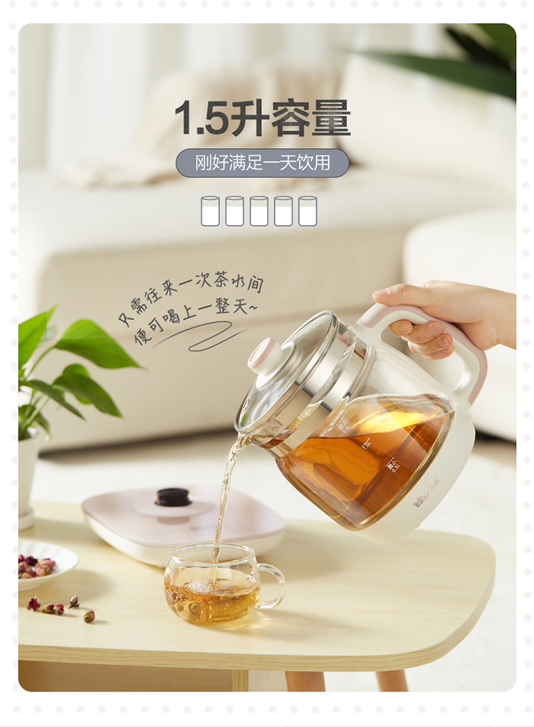 小熊(Bear)养生壶电水壶花茶壶玻璃加厚煮茶器1.5L YSH-A15Z8 (带滤网) 自营