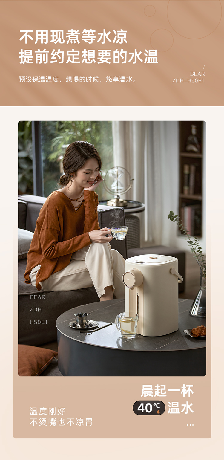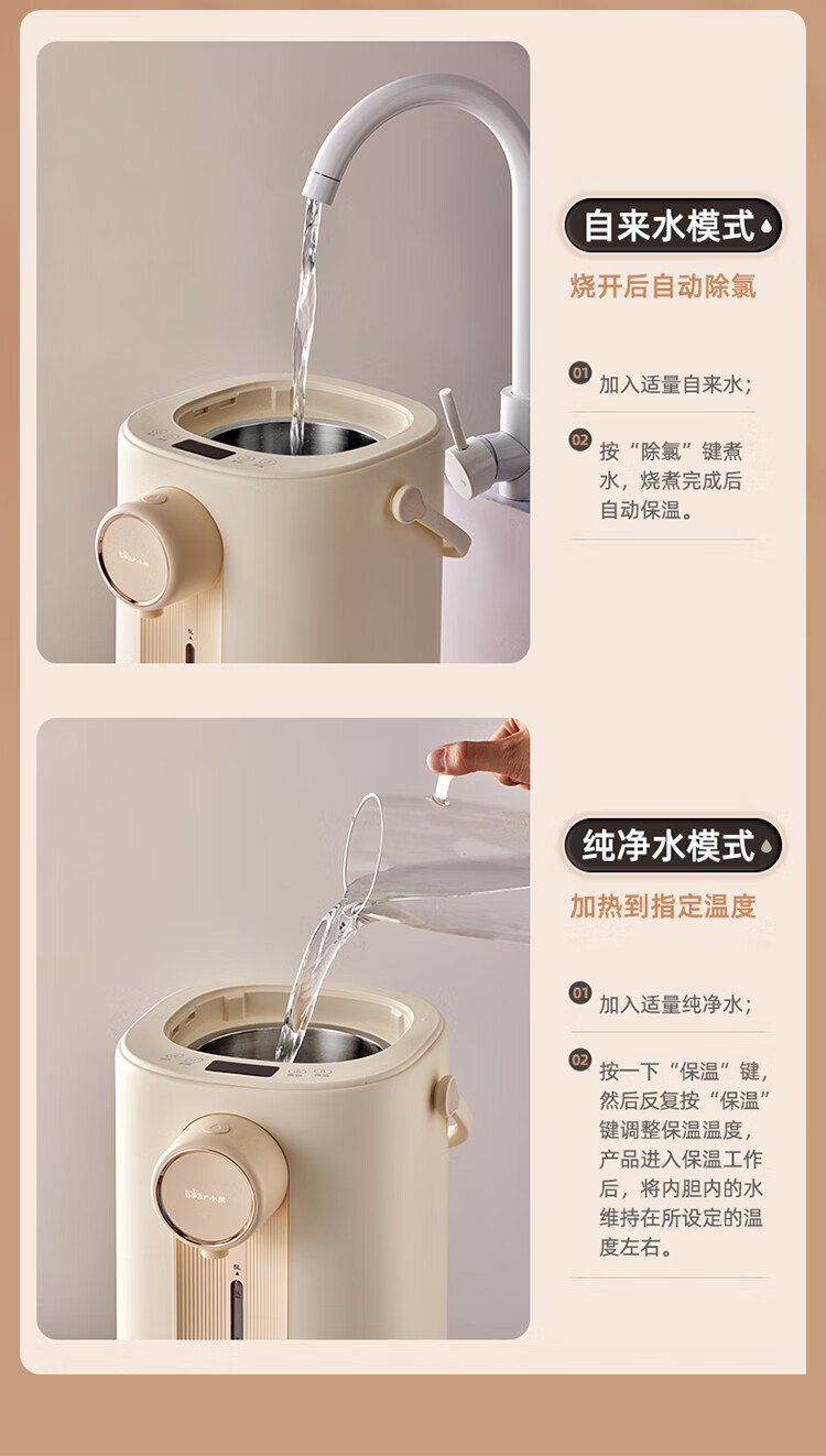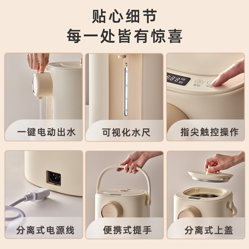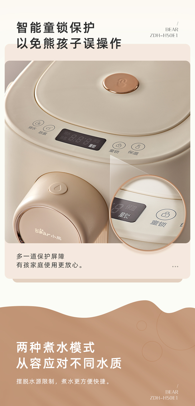 小熊(Bear)电热水瓶 恒温水壶 电水壶 电热水壶 5升大容量防烫除氯多段保温304不锈钢 ZDH-H50E1 烧水壶 自营