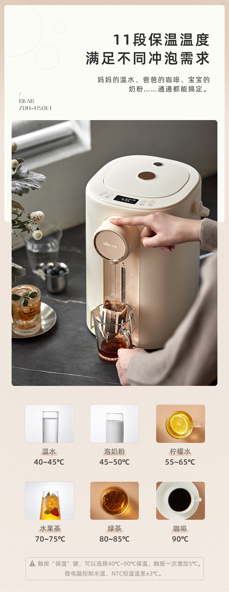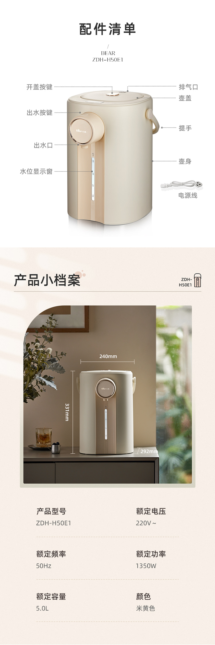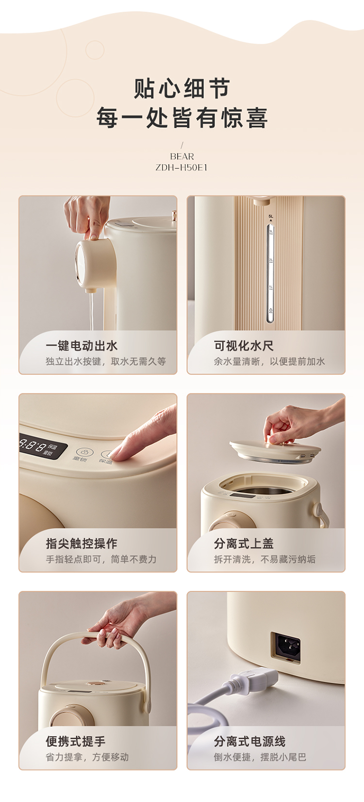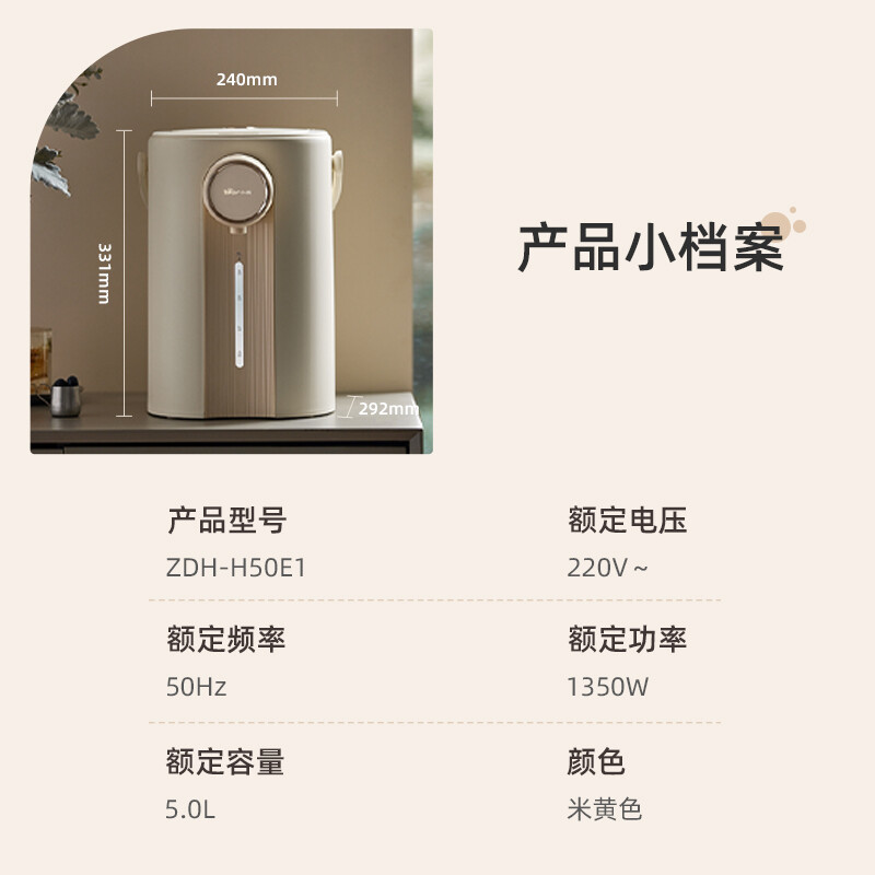 小熊(Bear)电热水瓶 恒温水壶 电水壶 电热水壶 5升大容量防烫除氯多段保温304不锈钢 ZDH-H50E1 烧水壶 自营