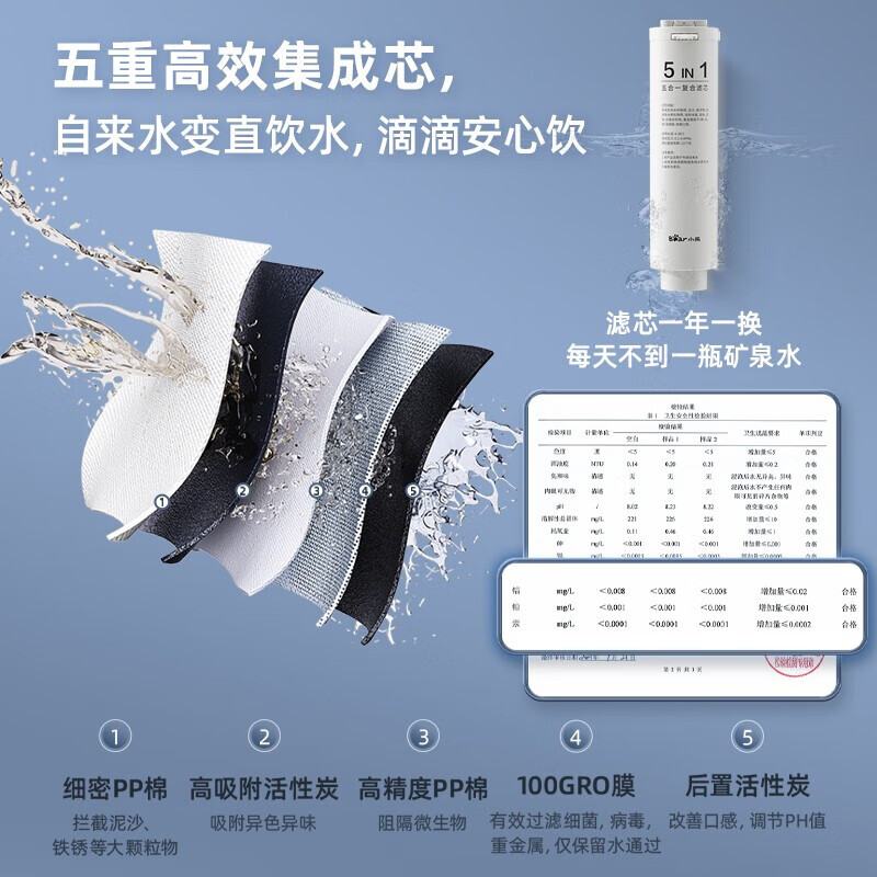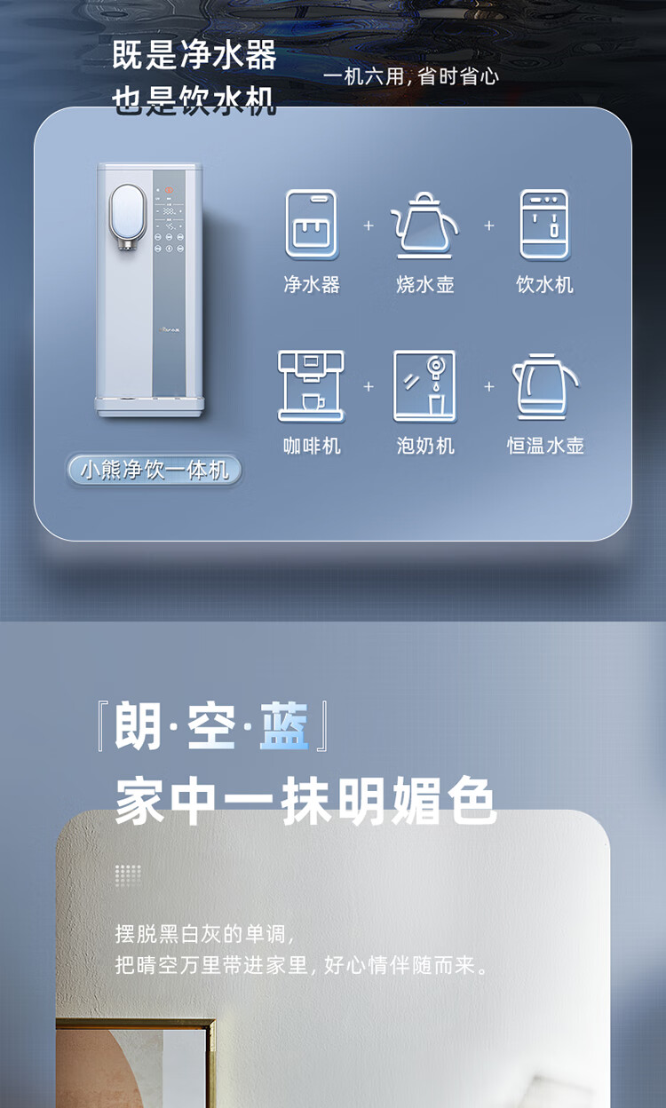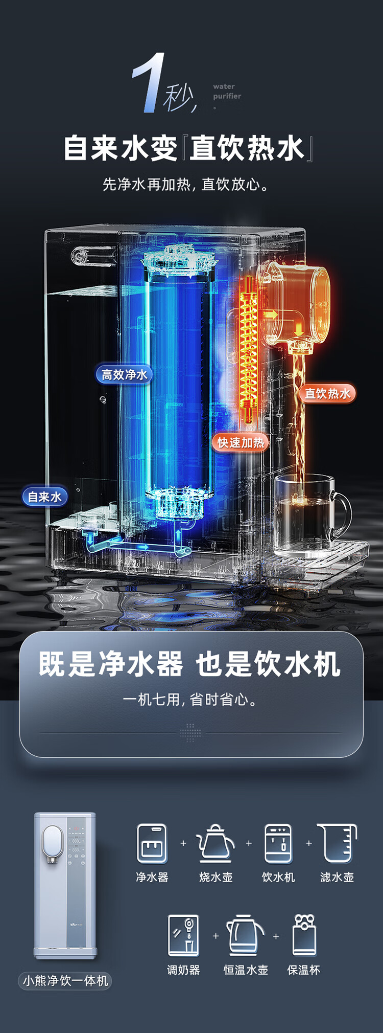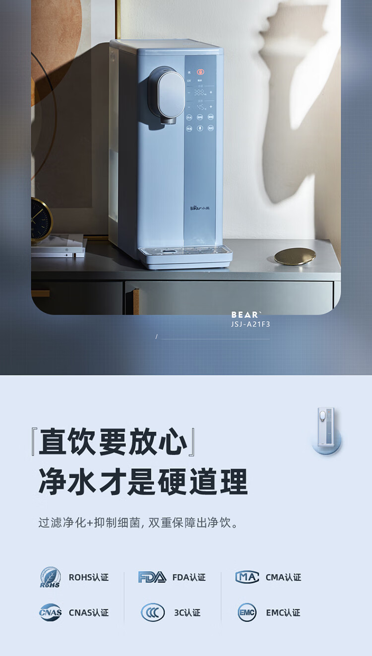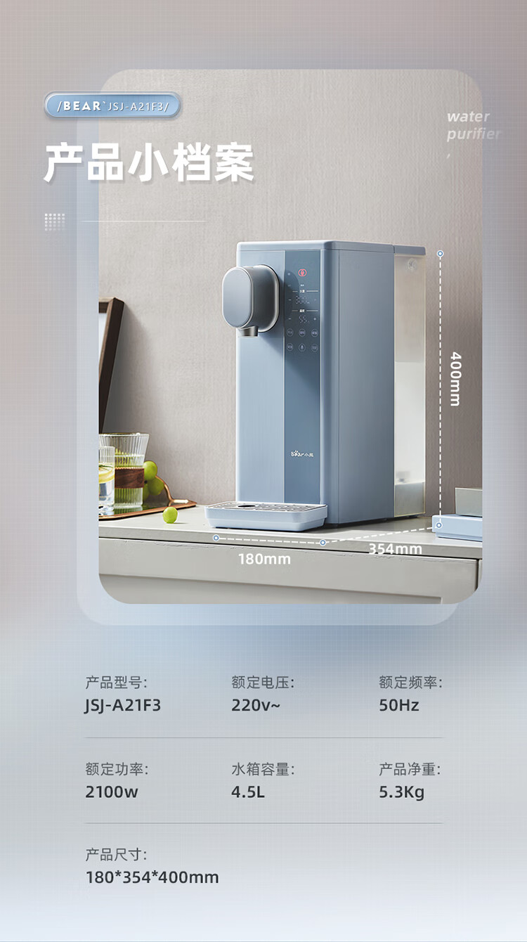 小熊(Bear) 净水器 家用净饮机 即热式台式一体机 饮水机反渗透 3秒即热4.5升容量 免安装 净饮机JSJ-A21F3 自营
