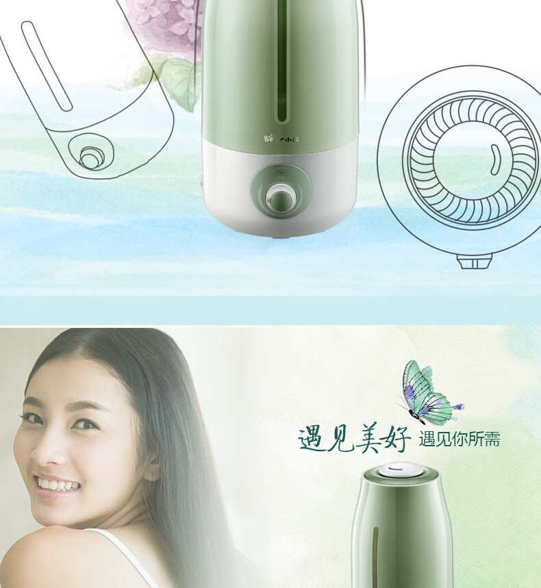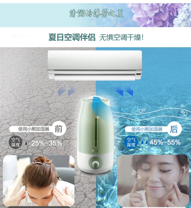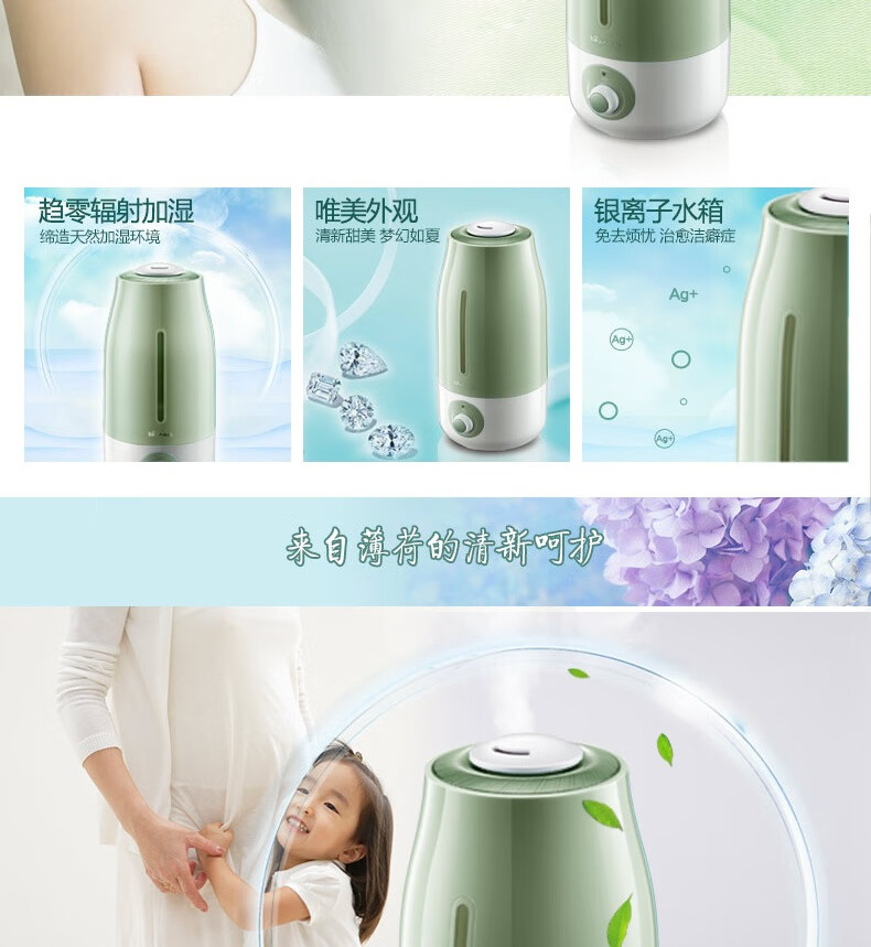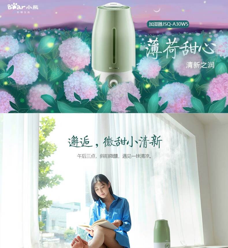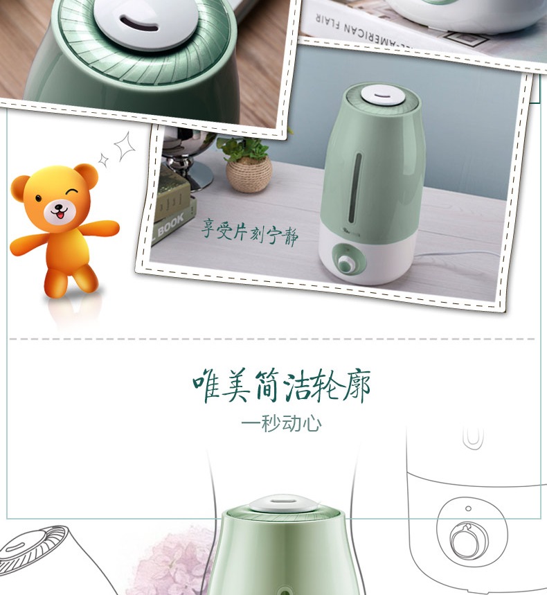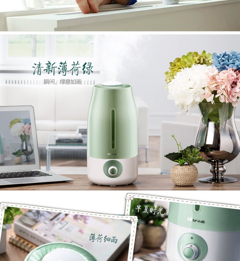 小熊(Bear) JSQ-A30W5 加湿器卧室办公室空调空气加湿器婴儿家用大雾量低噪桌面香薰 浅绿色 自营