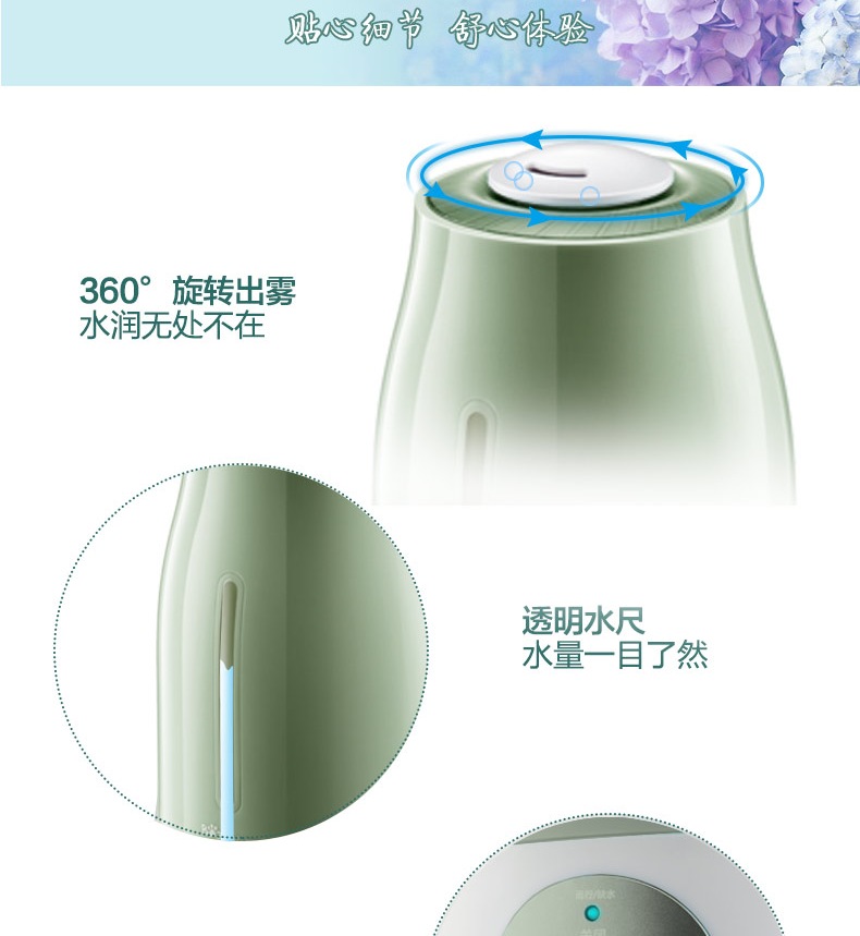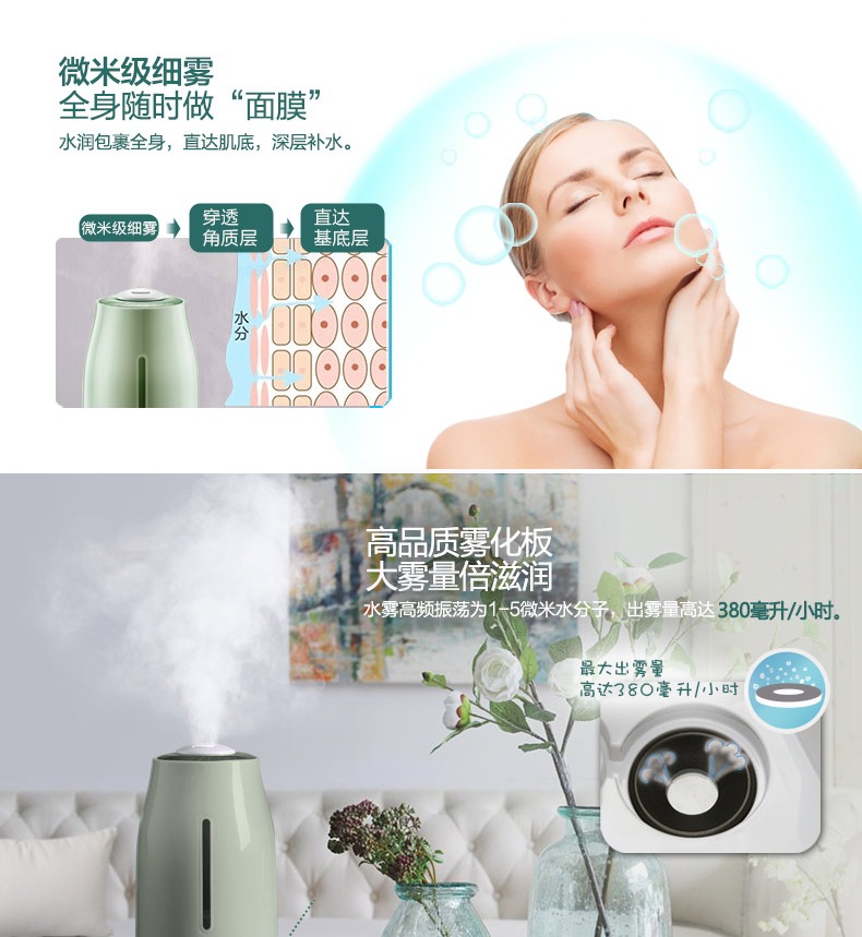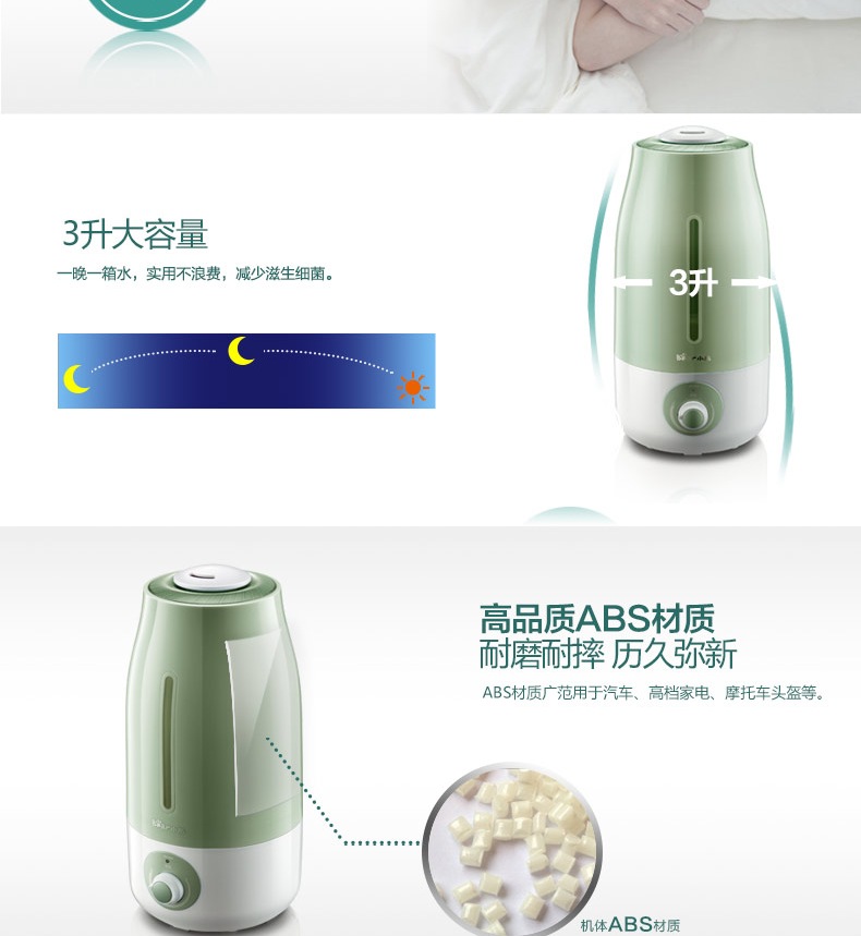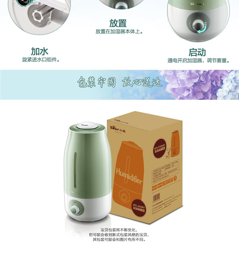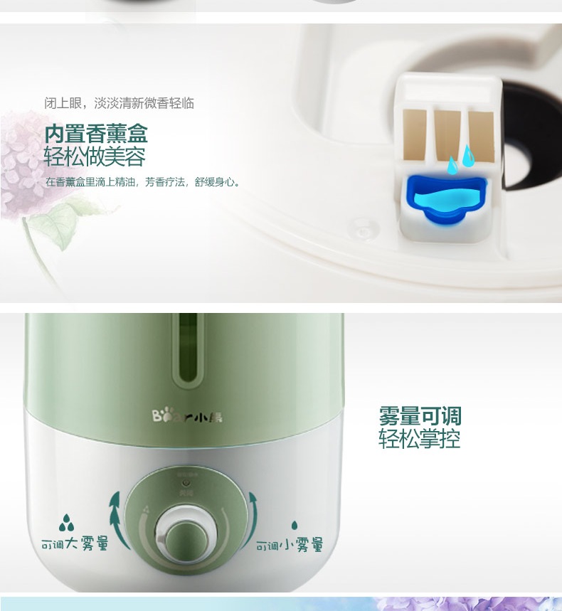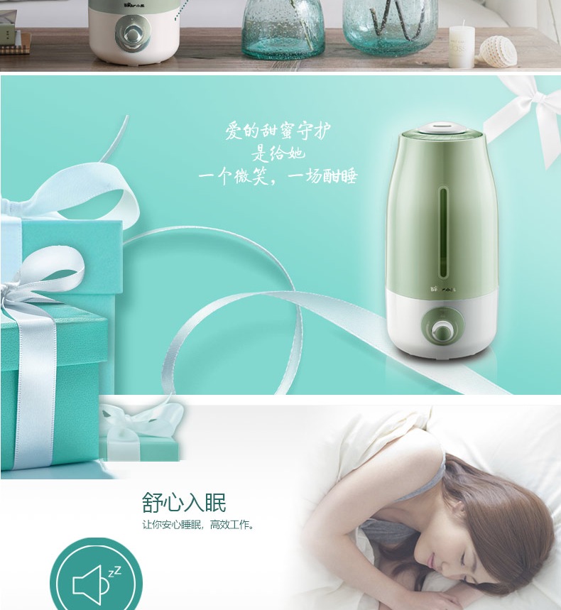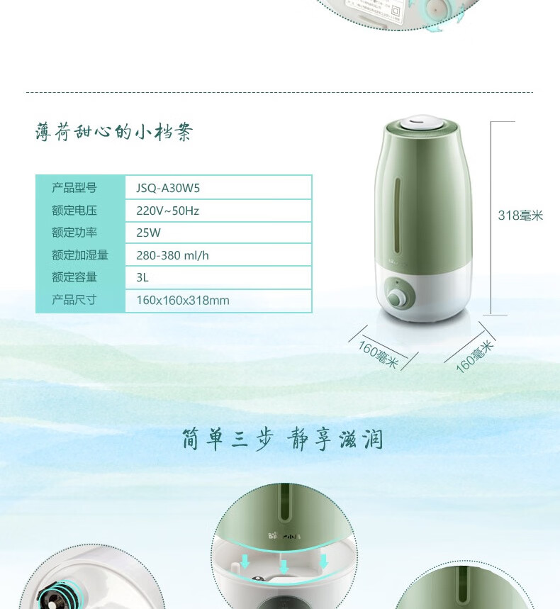小熊(Bear) JSQ-A30W5 加湿器卧室办公室空调空气加湿器婴儿家用大雾量低噪桌面香薰 浅绿色 自营