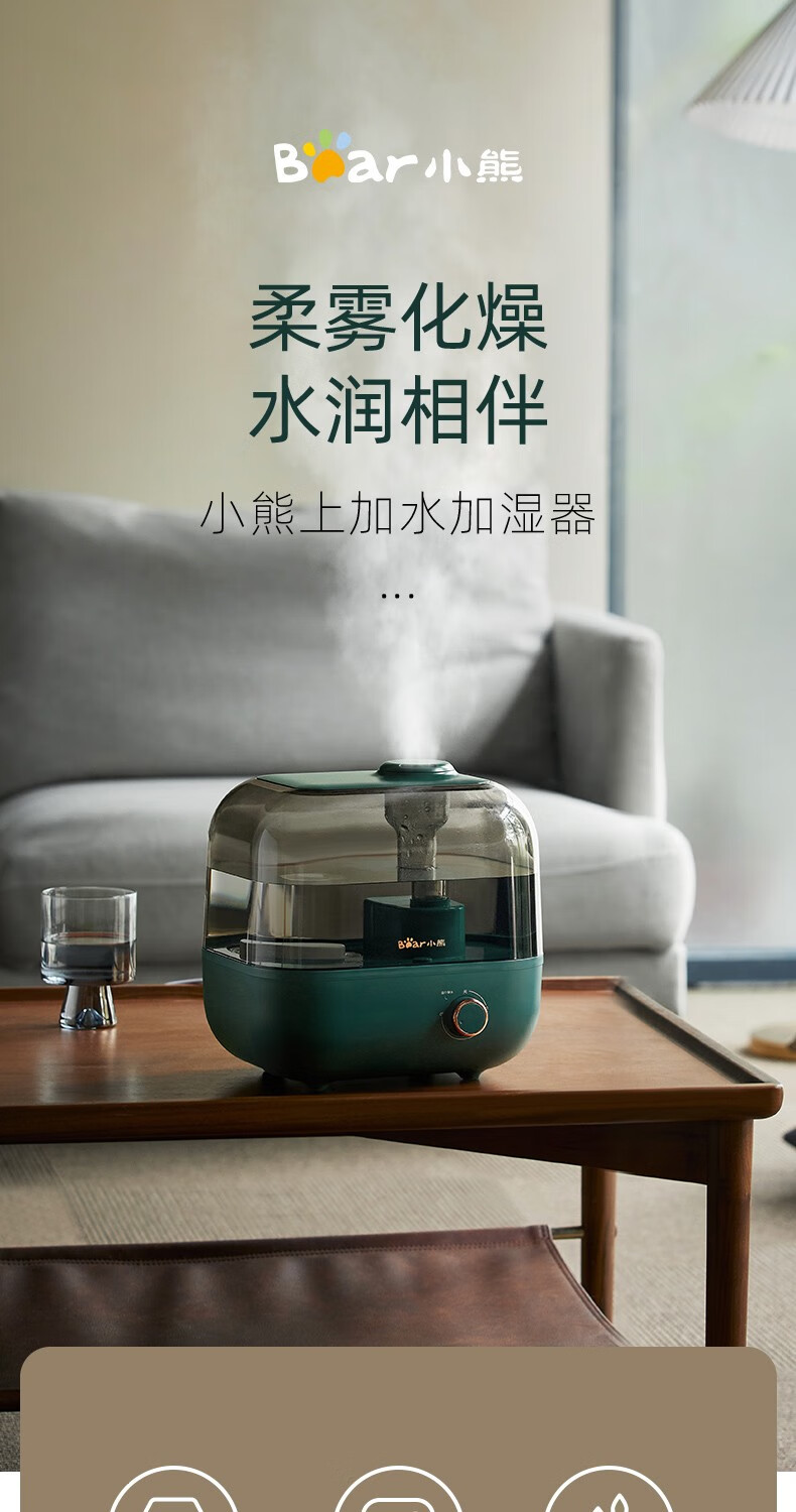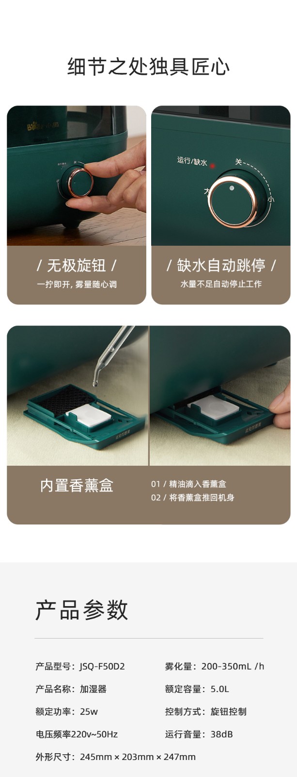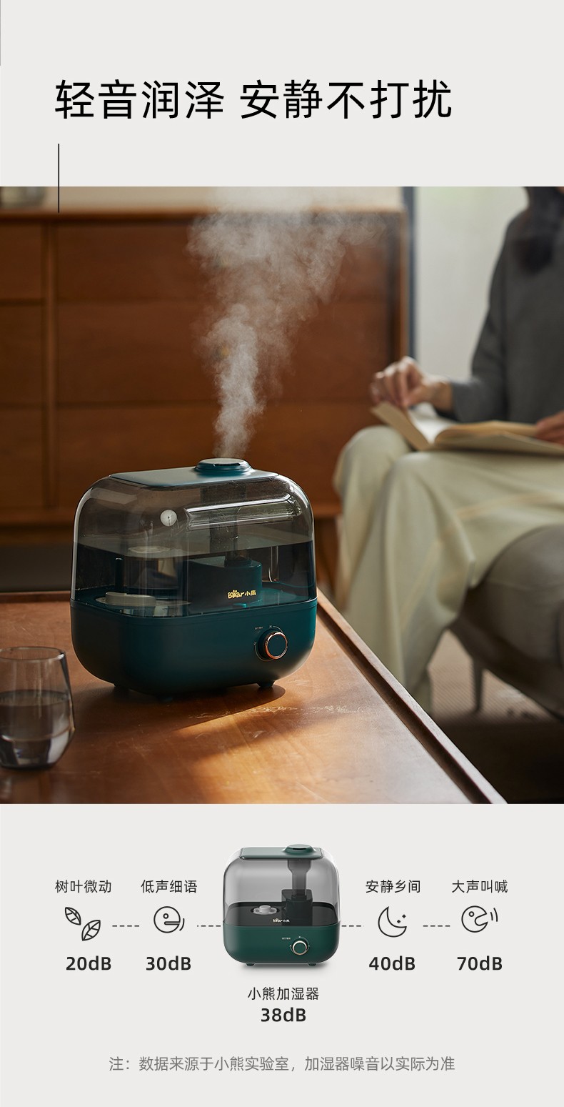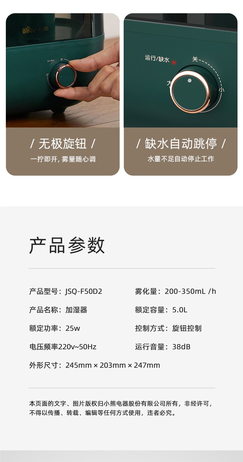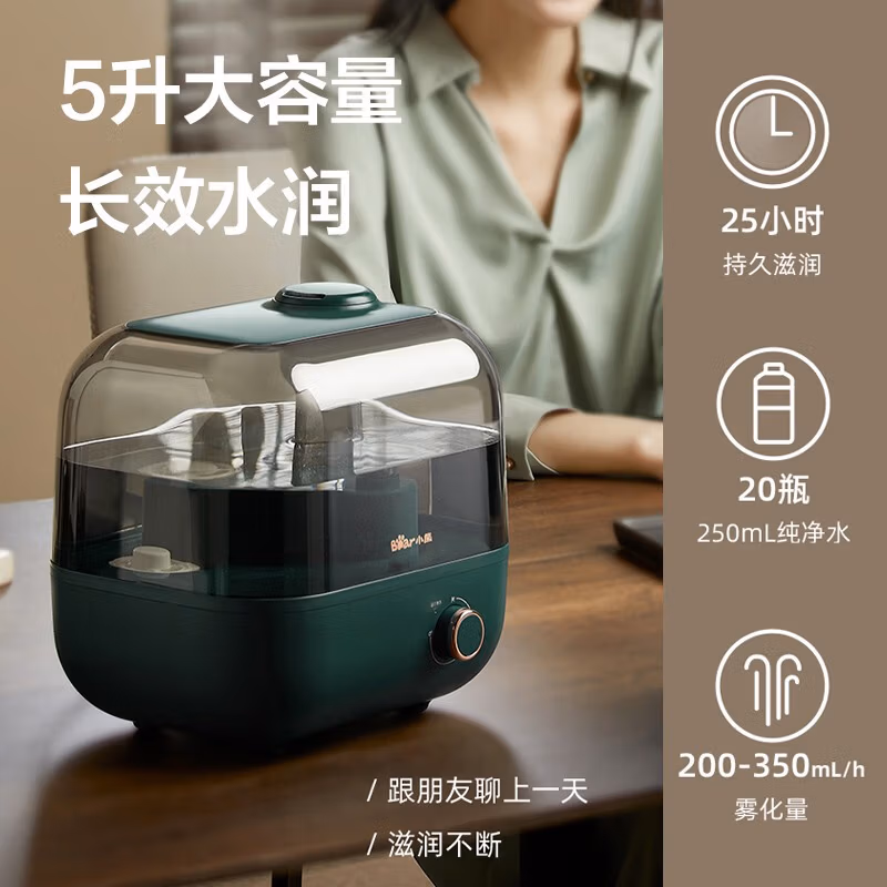 小熊(Bear)加湿器卧室空调伴侣 办公室桌面空气加湿 家用5L上加水 香薰 JSQ-F50D2 【母婴适用】三重净化 5L大容量 自营