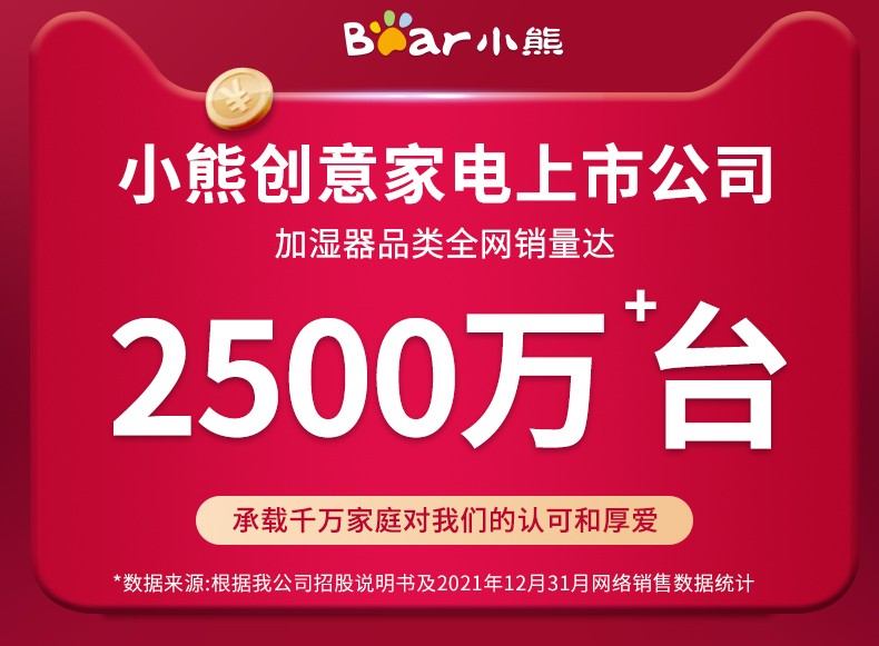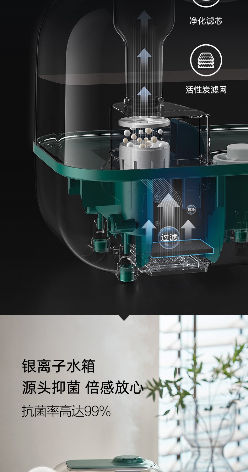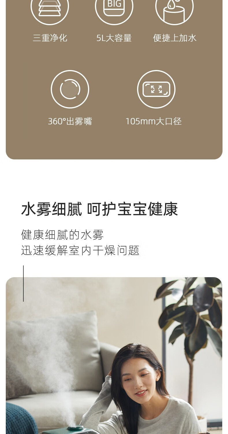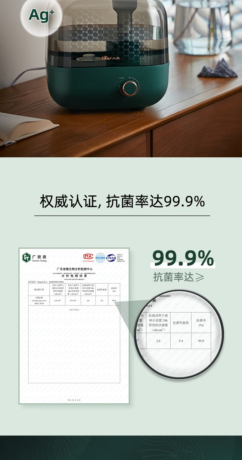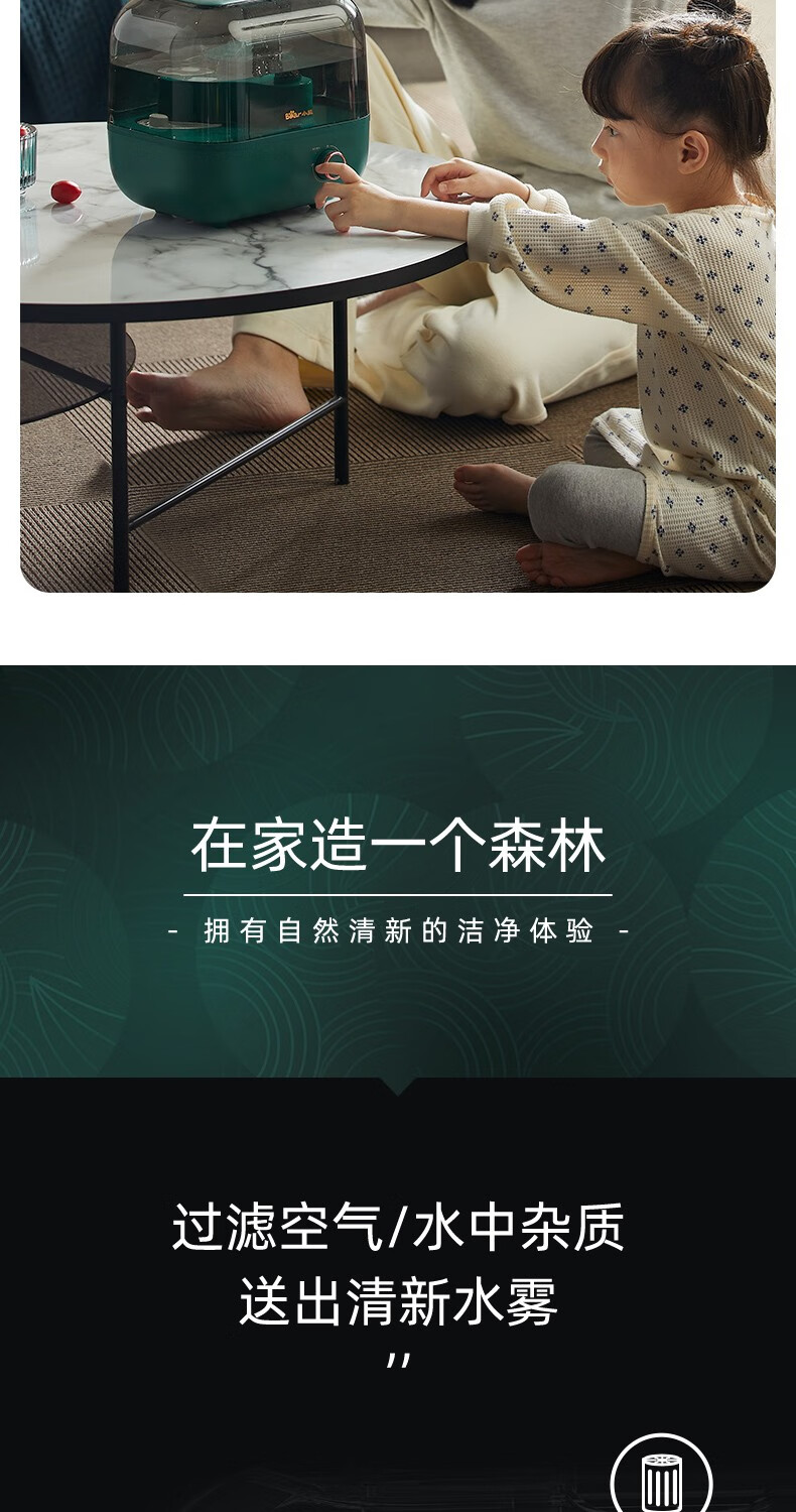 小熊(Bear)加湿器卧室空调伴侣 办公室桌面空气加湿 家用5L上加水 香薰 JSQ-F50D2 【母婴适用】三重净化 5L大容量 自营