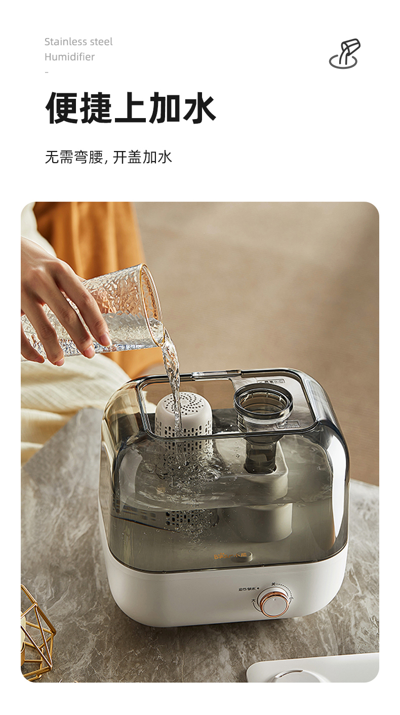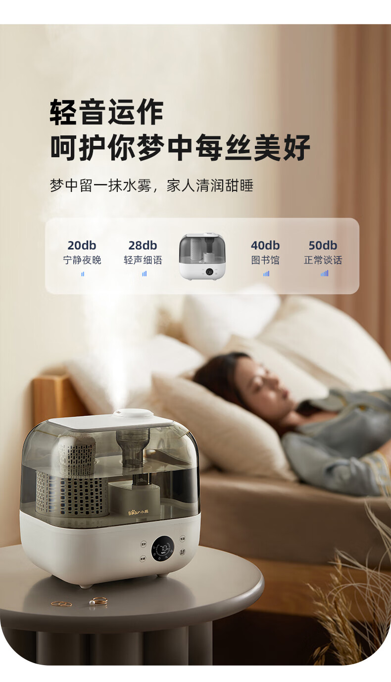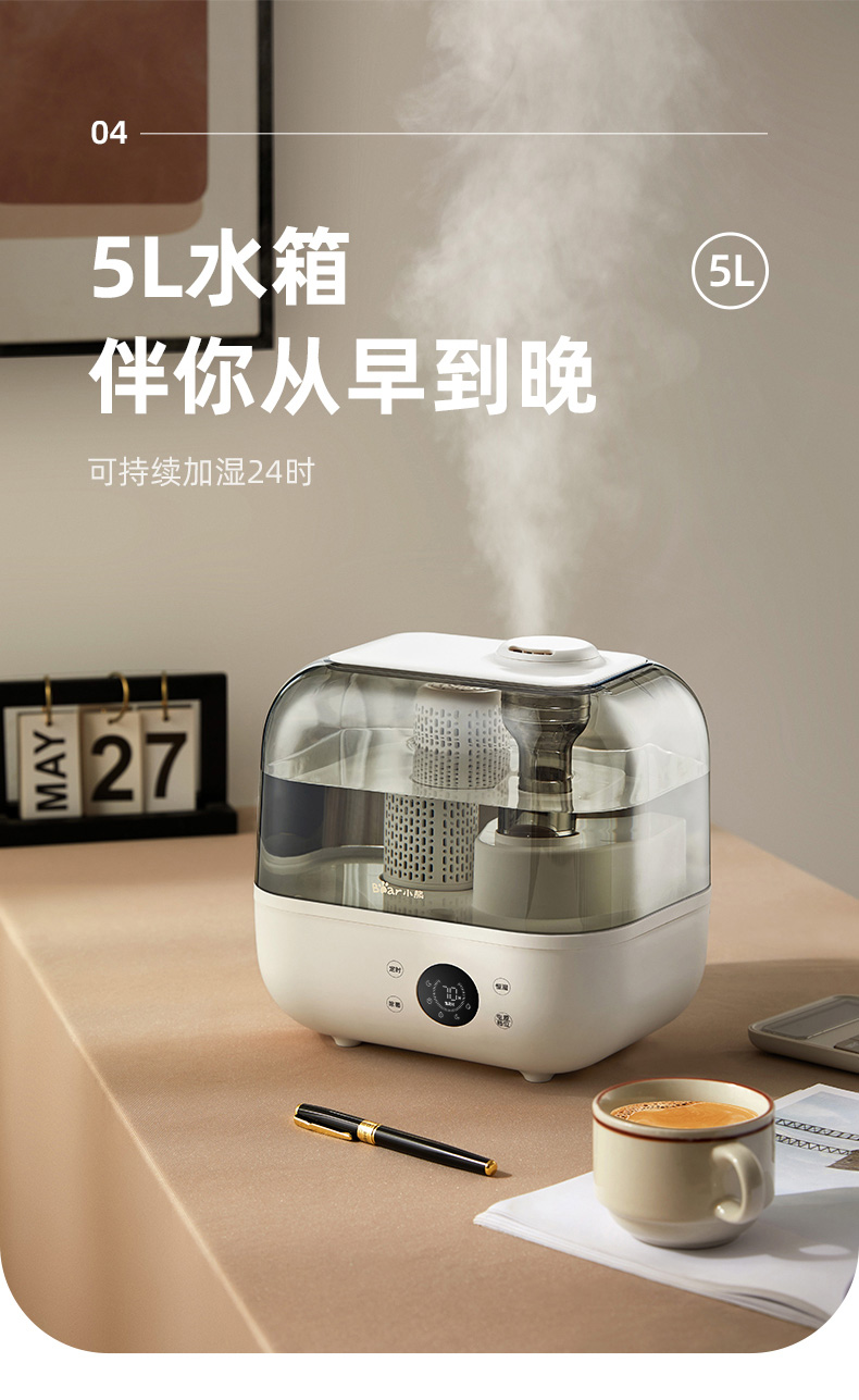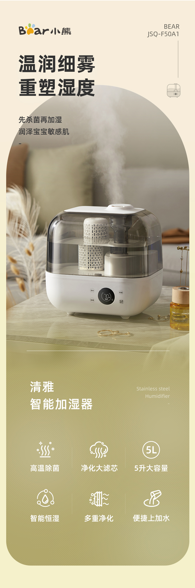 小熊(Bear)加湿器家用卧室净化加湿器大容量智能恒湿可定时母婴5L空气湿化器JSQ-F50A1 【升级恒湿款】高温除菌 标准滤芯净化 自营