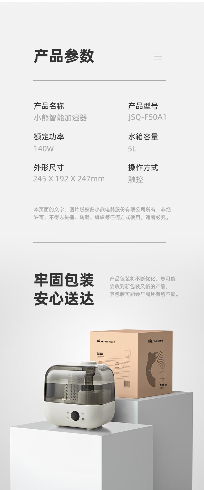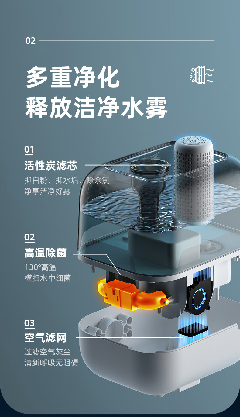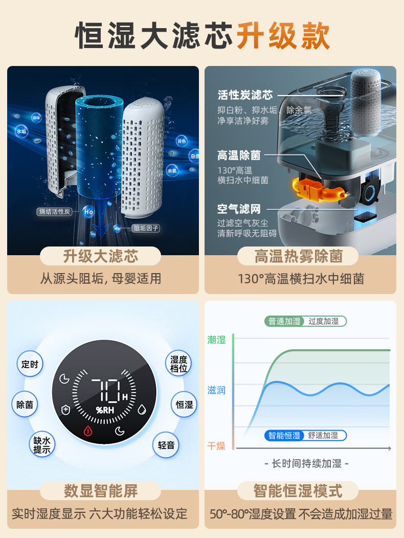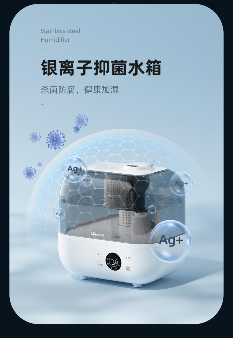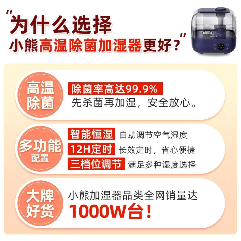 小熊(Bear)加湿器家用卧室净化加湿器大容量智能恒湿可定时母婴5L空气湿化器JSQ-F50A1 【升级恒湿款】高温除菌 标准滤芯净化 自营