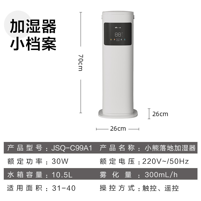 小熊(Bear)加湿器卧室婴儿办公室客厅落地式上加水迷你空气加湿器大雾量UV除菌10.5L大容量JSQ-C99A1 自营