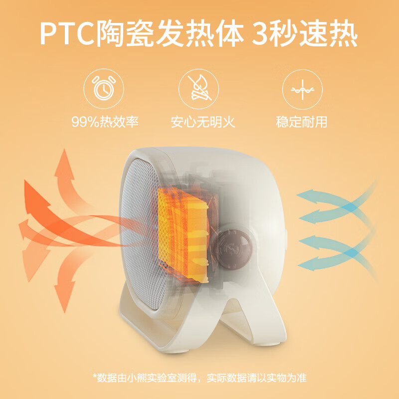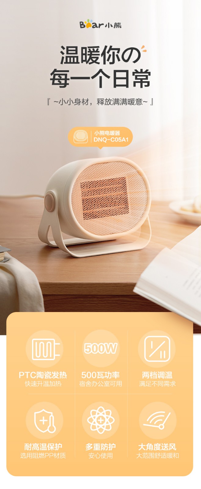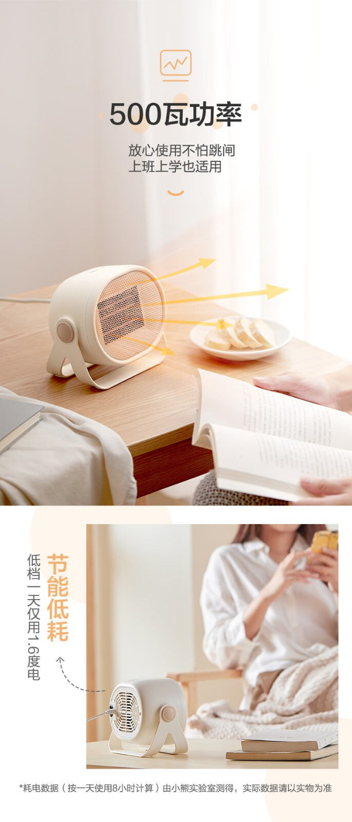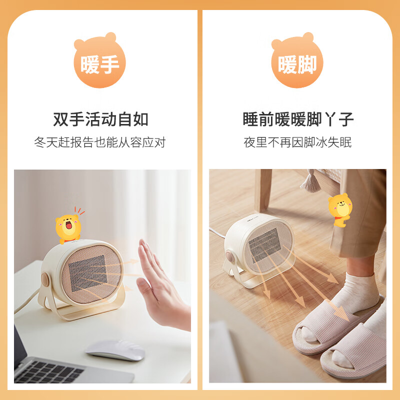 小熊(Bear)暖风机 取脚器家用取暖器迷你台式便携电暖气小太阳小型办公室桌面电暖气机 米黄色 DNQ-C05A1 自营