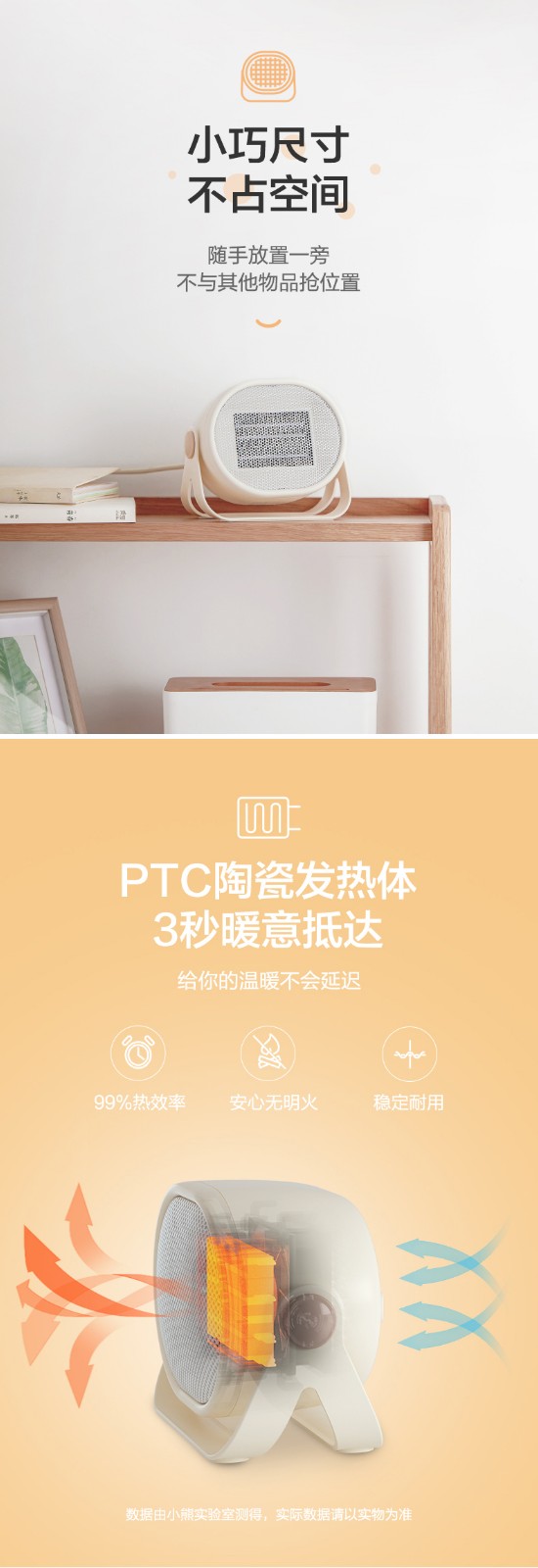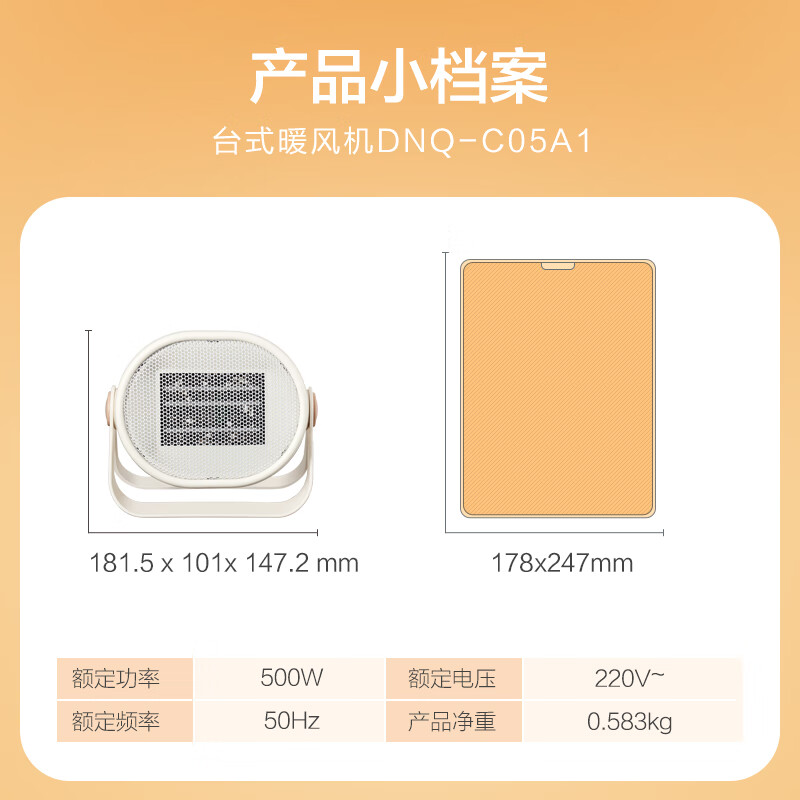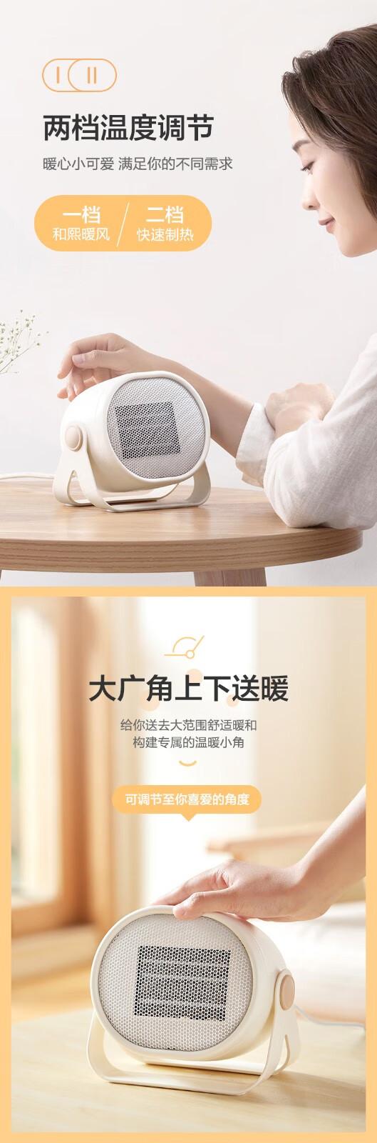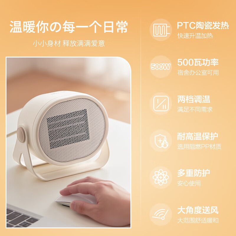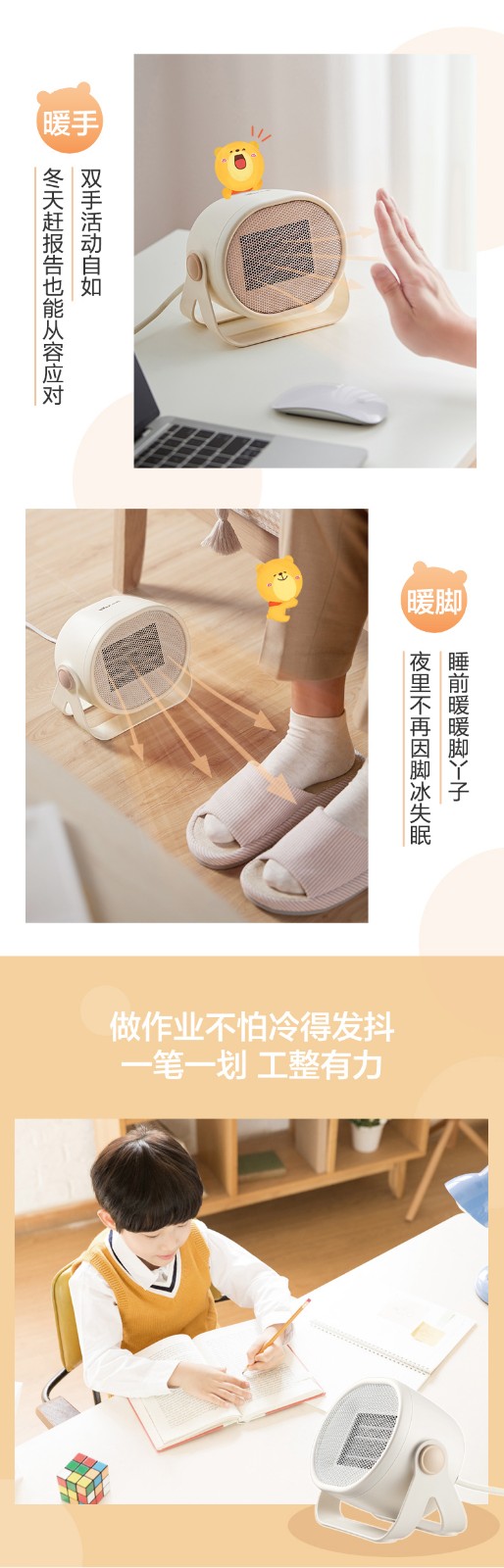 小熊(Bear)暖风机 取脚器家用取暖器迷你台式便携电暖气小太阳小型办公室桌面电暖气机 米黄色 DNQ-C05A1 自营