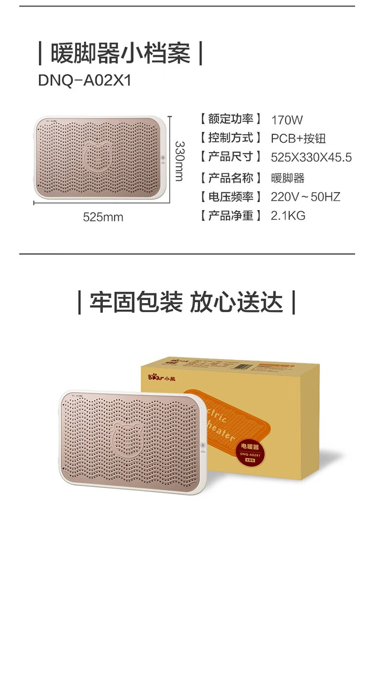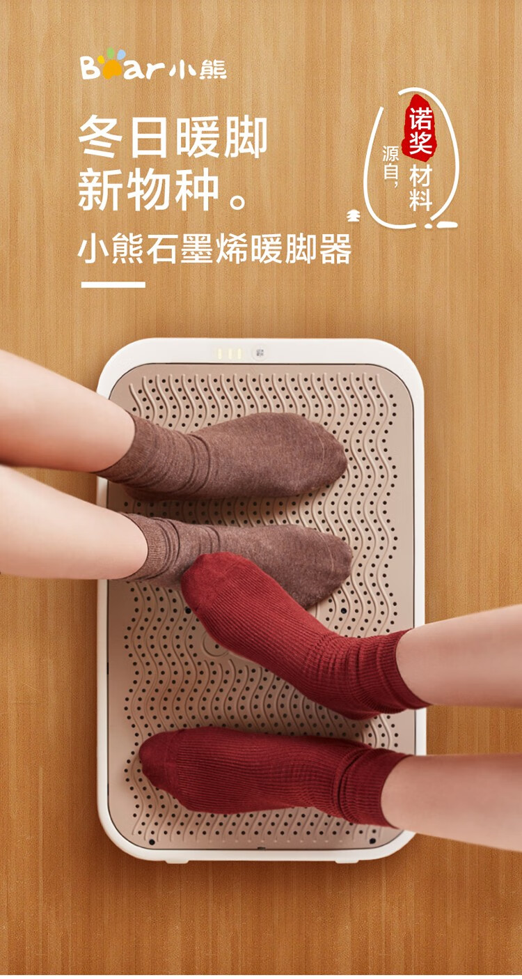 小熊(Bear)取暖器暖脚宝暖风机电暖器电暖板便携式暖脚器石墨烯发热DNQ-A02X1 白色 自营