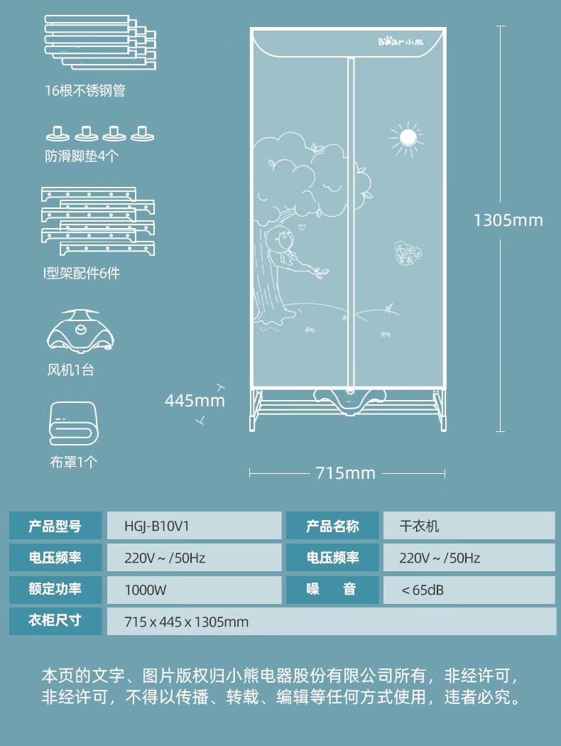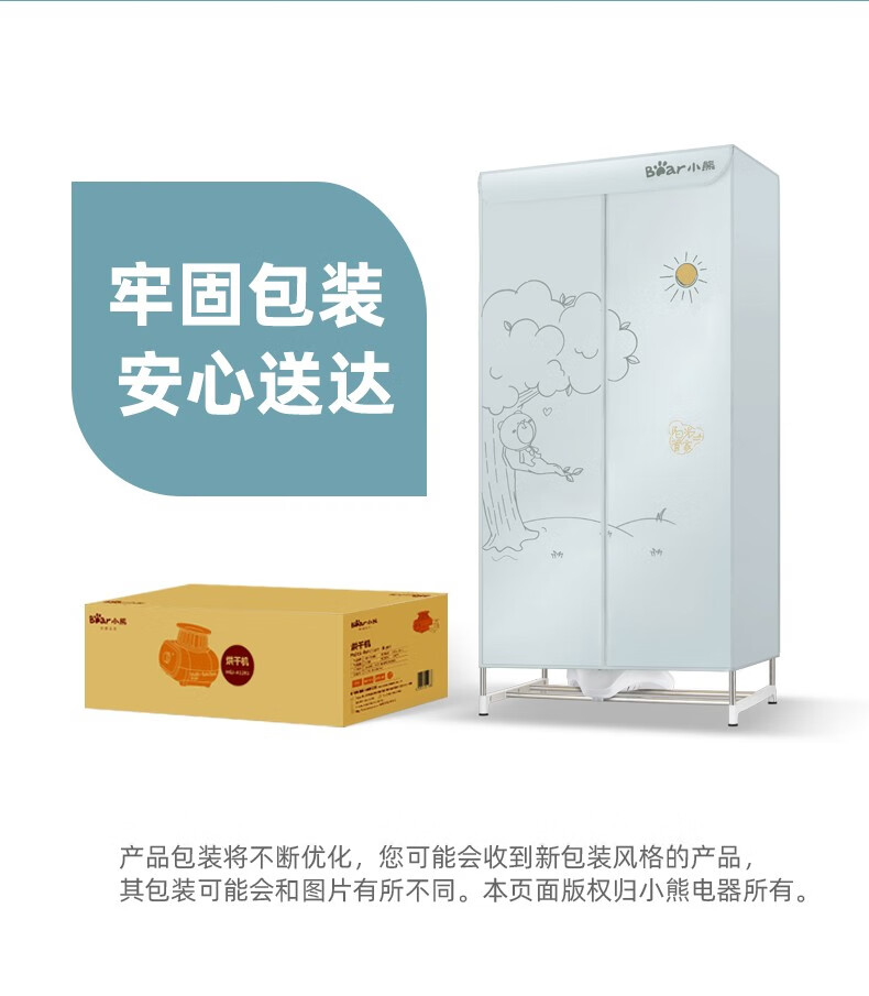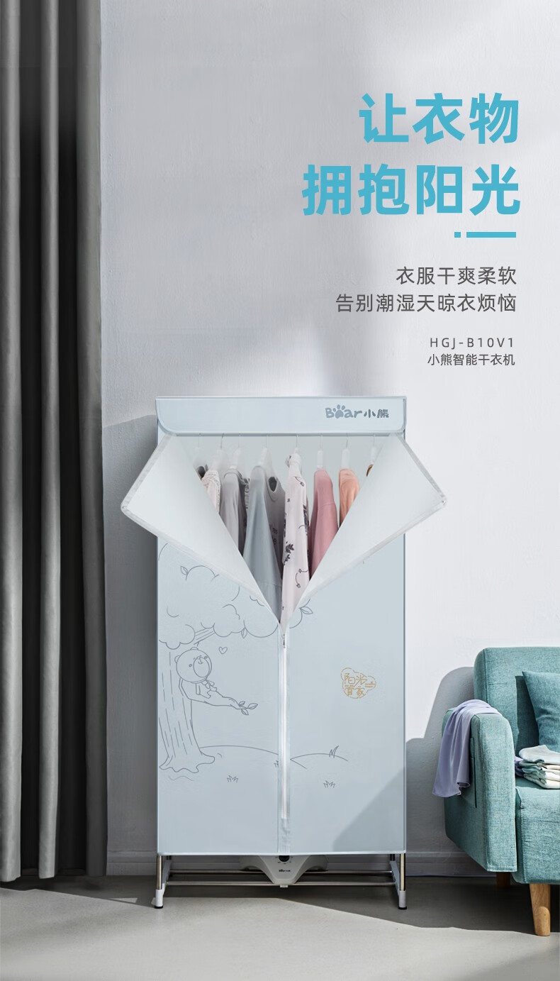小熊(Bear)干衣机/烘干机家用婴儿衣物暖风烘衣机高温杀菌双层大容量干衣柜风干机定时烘干衣柜 HGJ-B10V1白色 自营