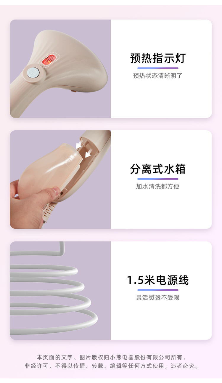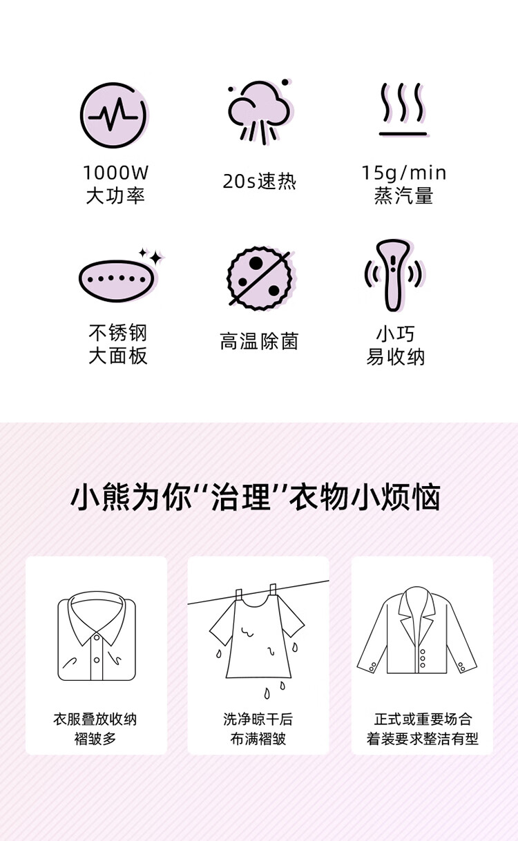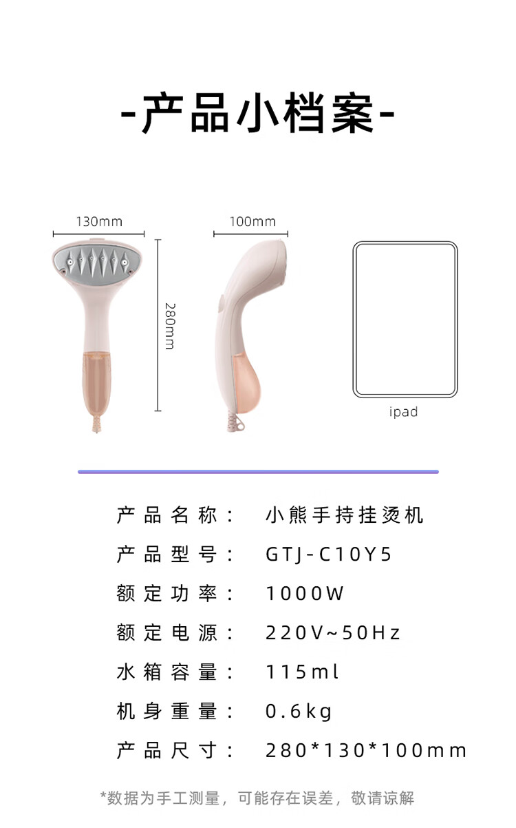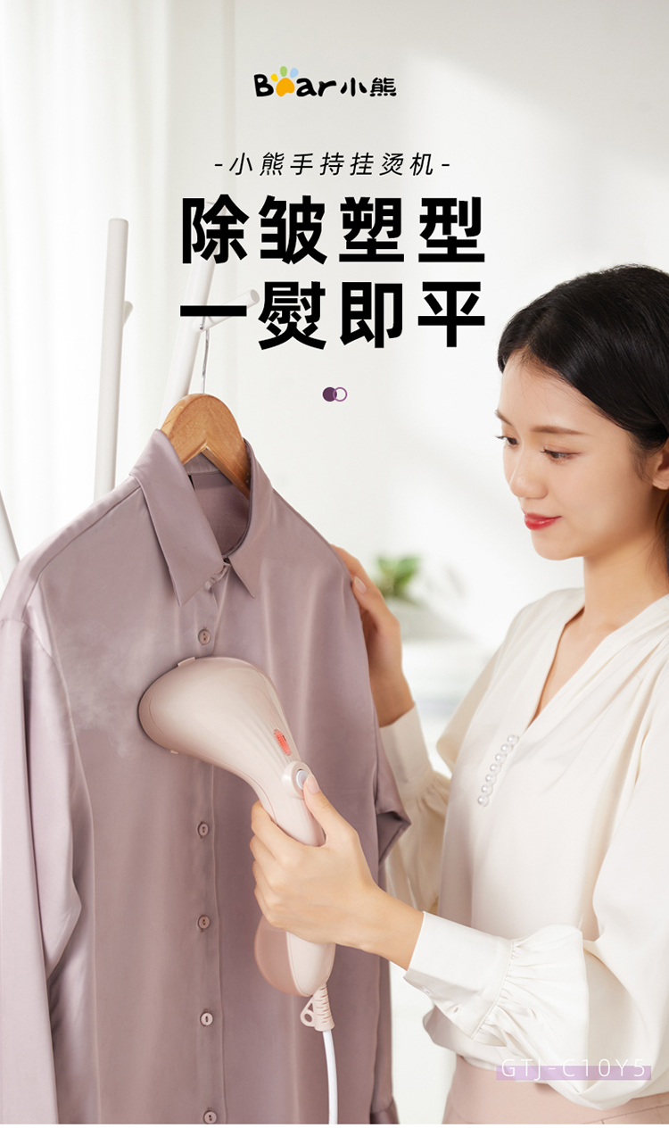 小熊(Bear)挂烫机手持熨斗家用蒸汽烫衣机衣服熨斗便携小型蒸汽熨烫机电烫斗 GTJ-C10Y5【ZMD安心系列】 自营