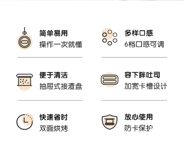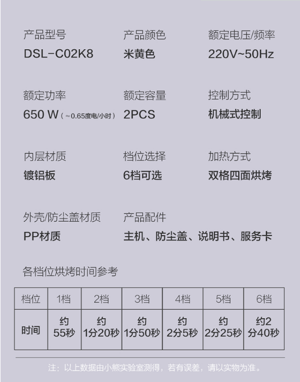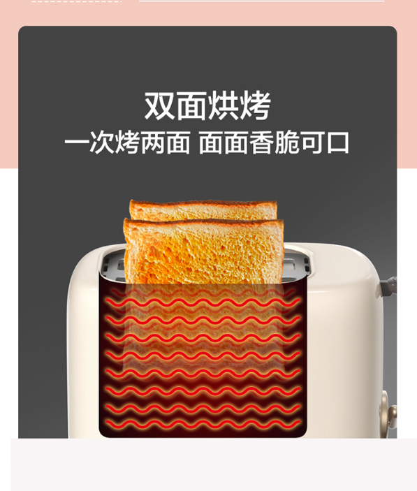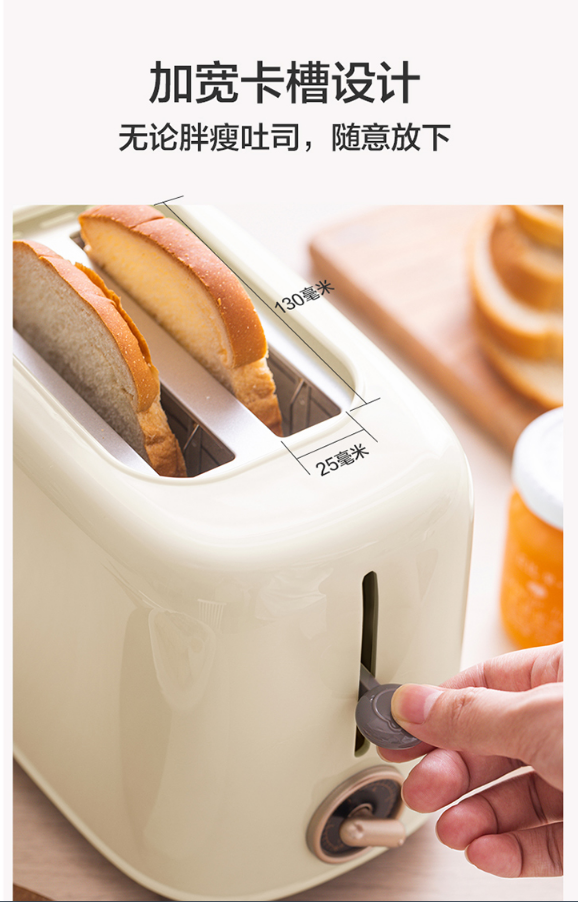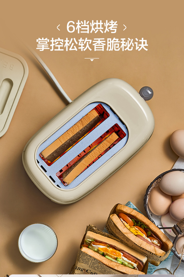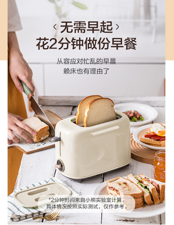 小熊(bear)面包机 多士炉早餐烤吐司机 烤面包片2片家用多功能轻食机 6档烘烤带防尘盖DSL-C02K8 自营