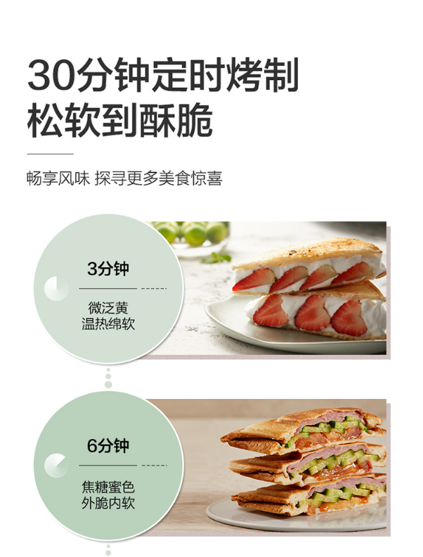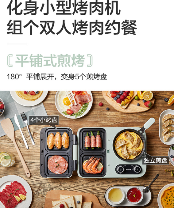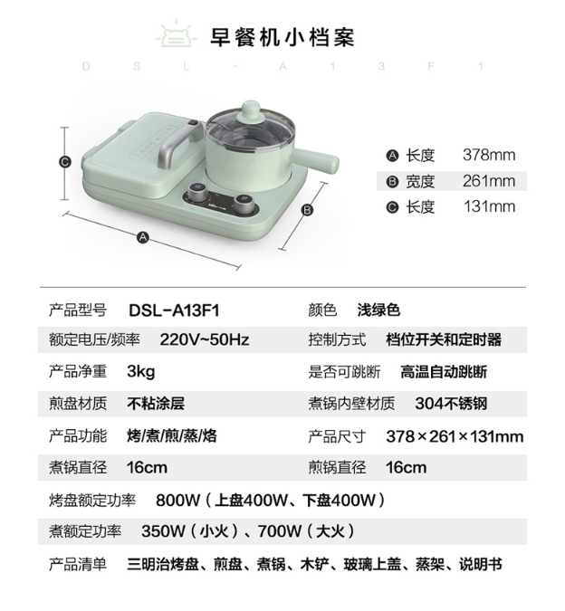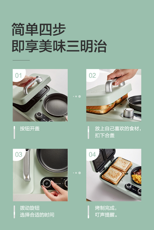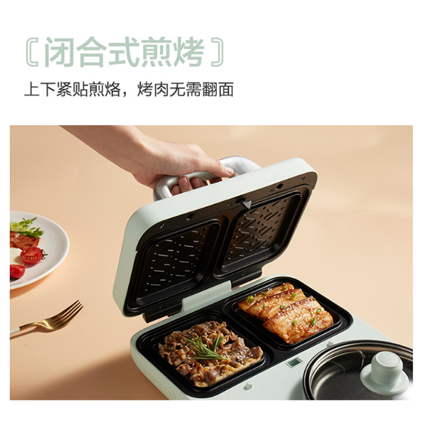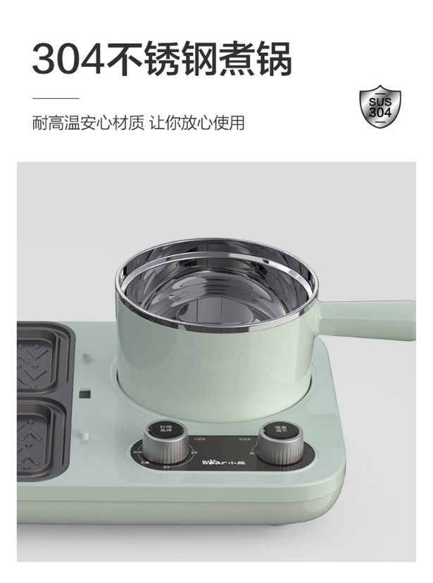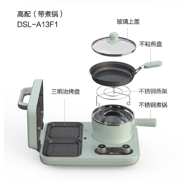 小熊(Bear)早餐机 三明治早餐机多士炉面包机电饼铛电热锅电火锅电蒸锅多功能煎饼锅 DSL-A13F1 自营