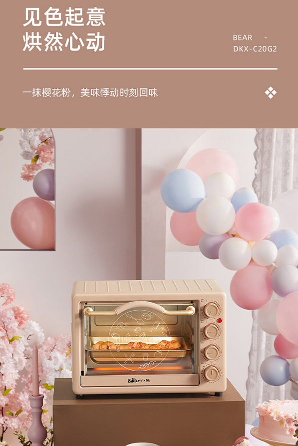 小熊(Bear)电烤箱多功能家用迷你小型独立控温20L烘烤蛋糕烤炉烤箱 DKX-C20G2 自营