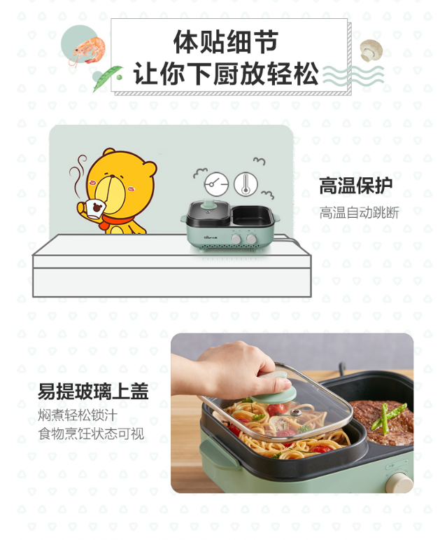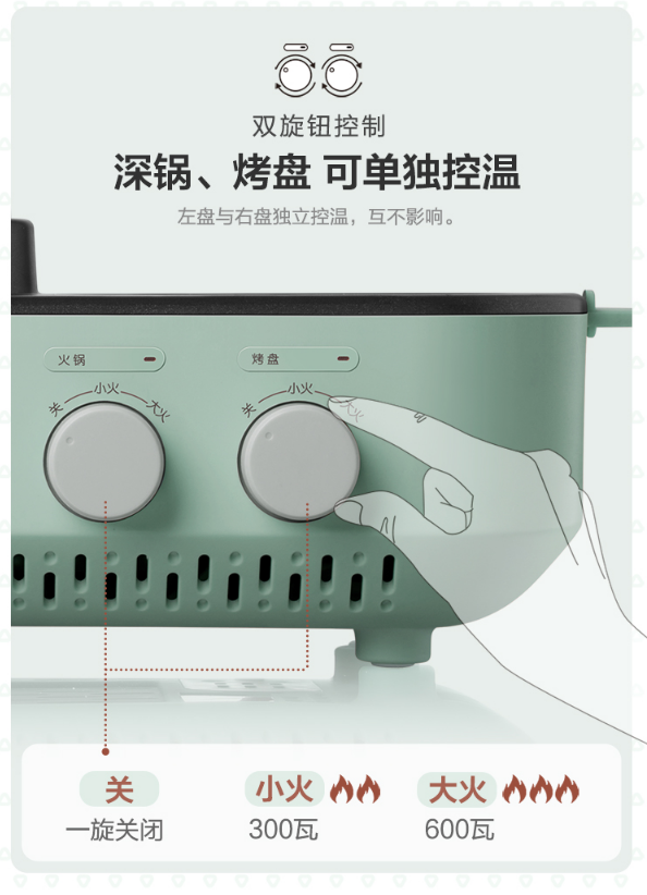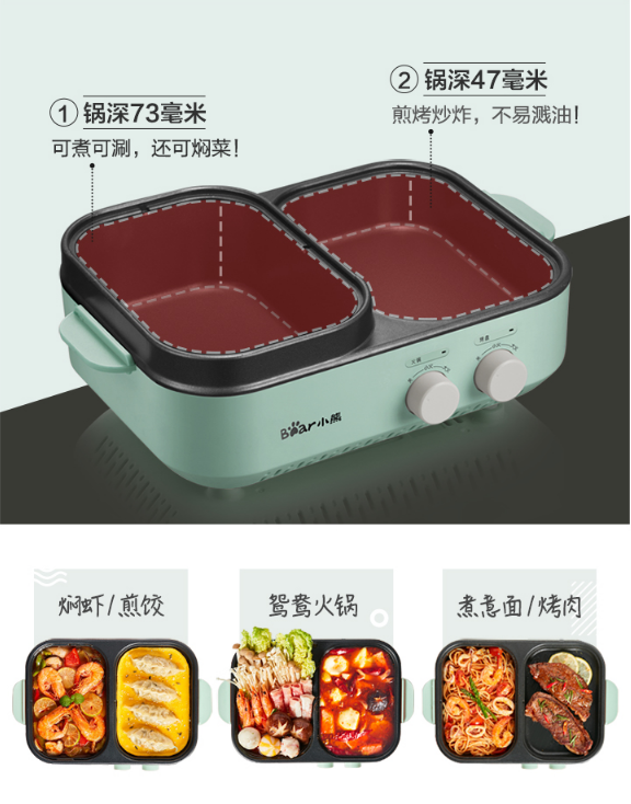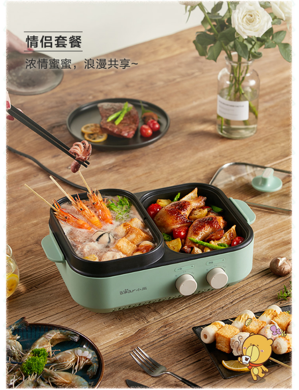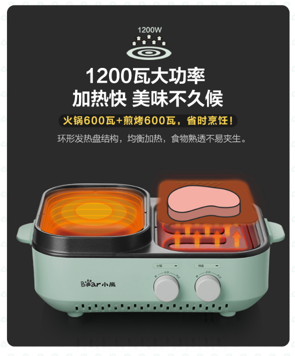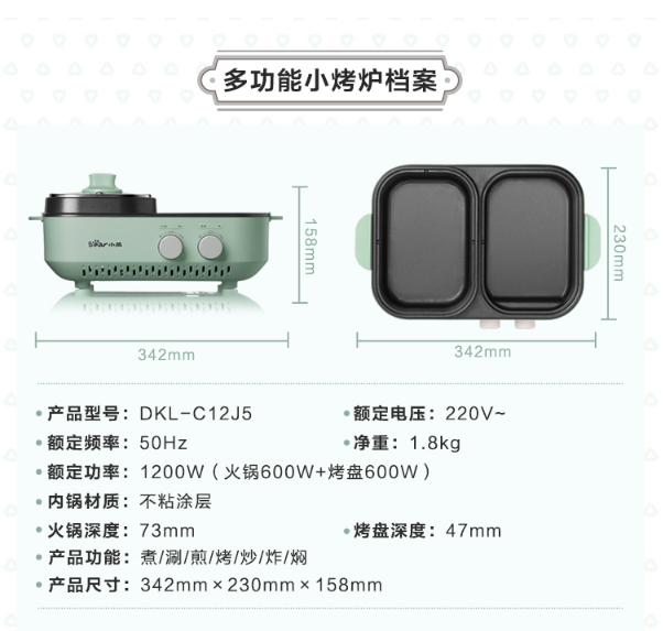 小熊(Bear) 电烧烤炉家用无烟韩式烤盘网红煎涮烤一体锅 DKL-C12J5 自营