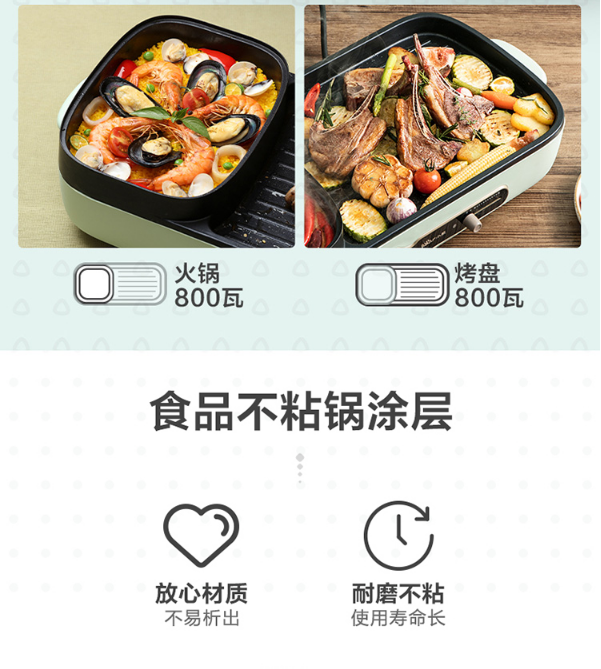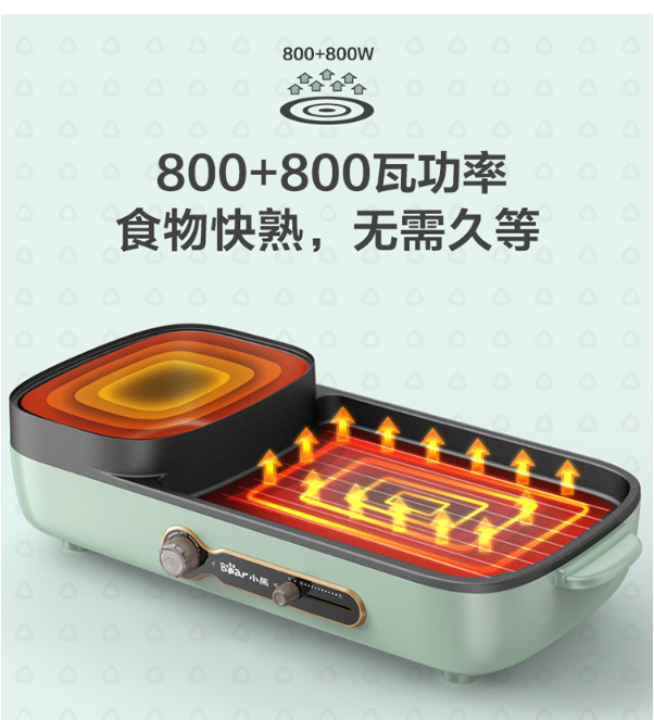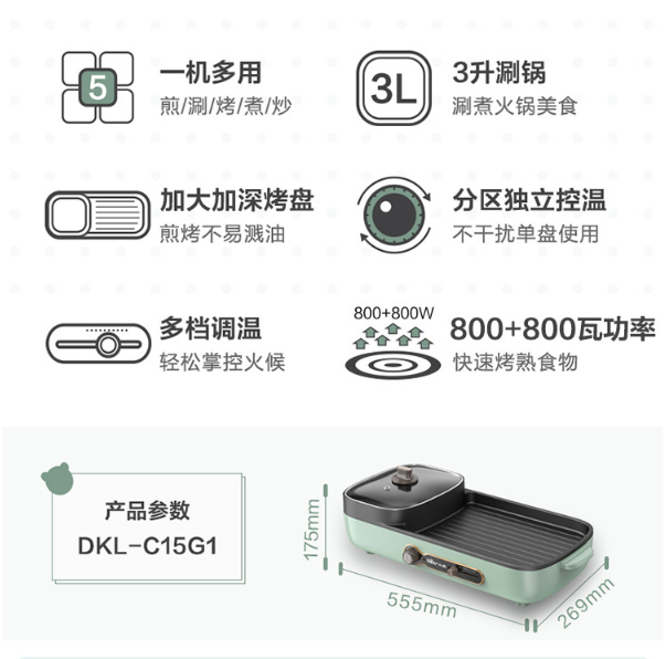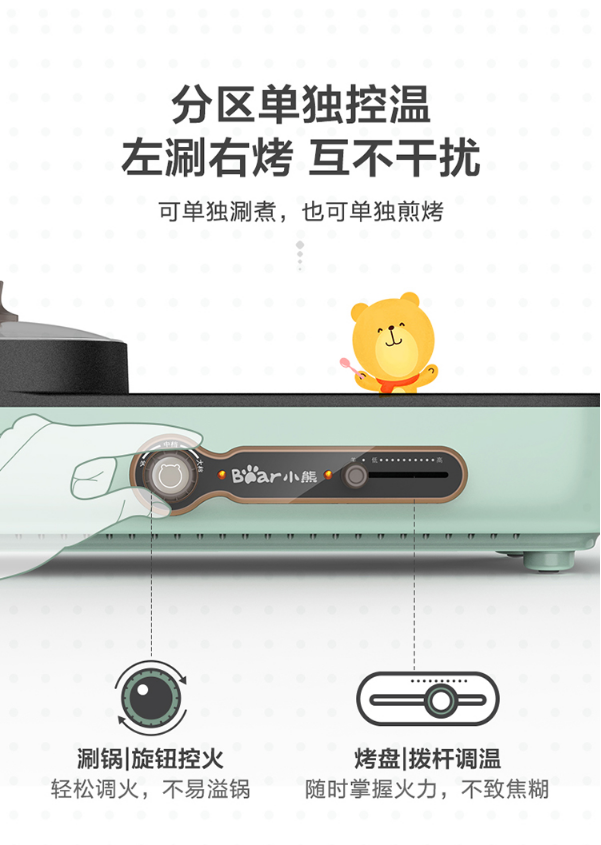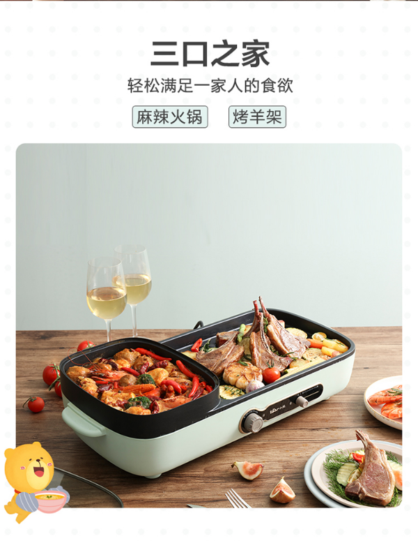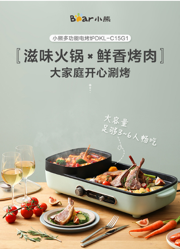 小熊(Bear)烤肉锅 烧烤炉 烤涮一体两用锅电烤盘烤肉机家用烤肉盘多功能电火锅电烤炉DKL-C15G1 自营