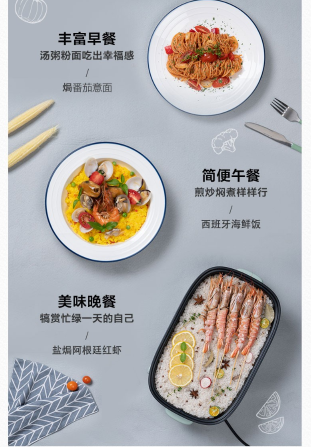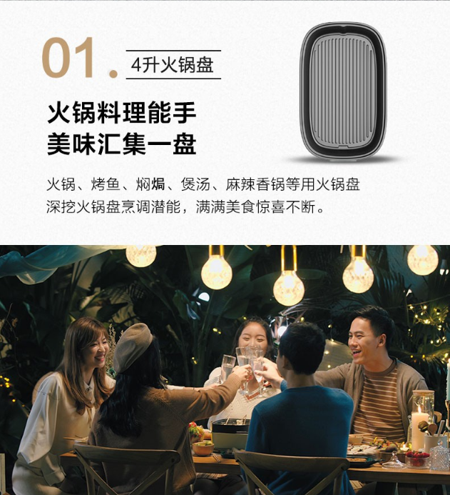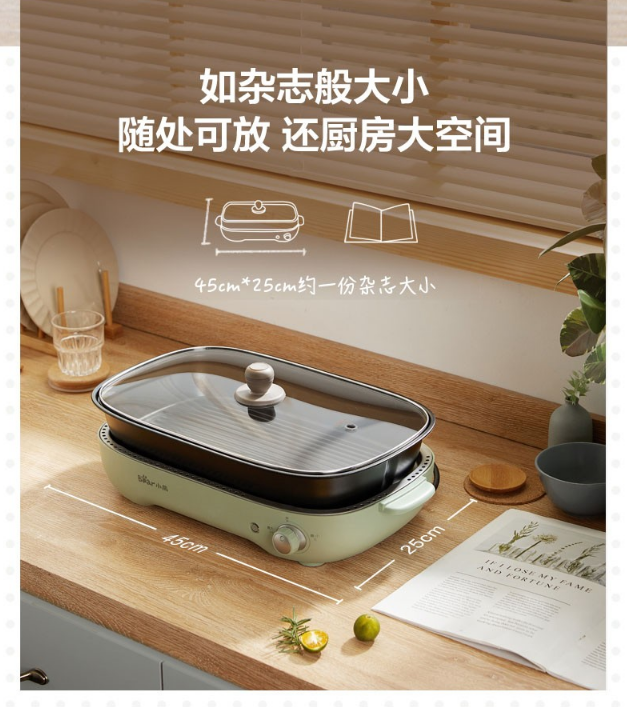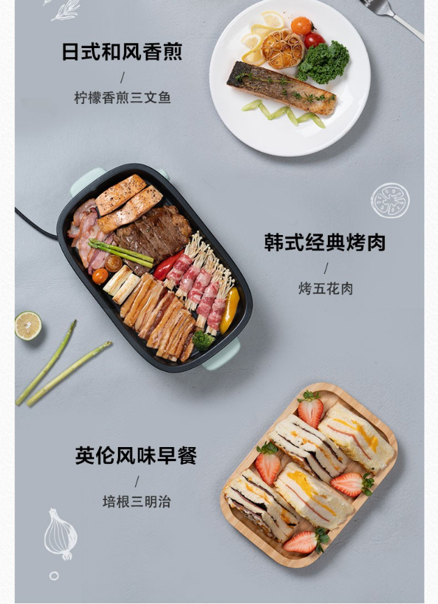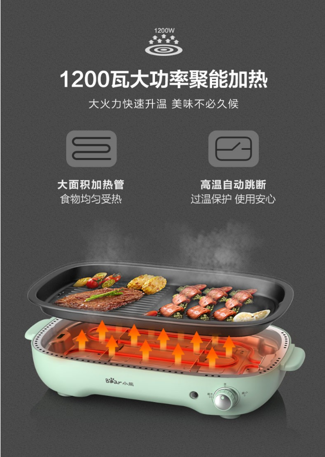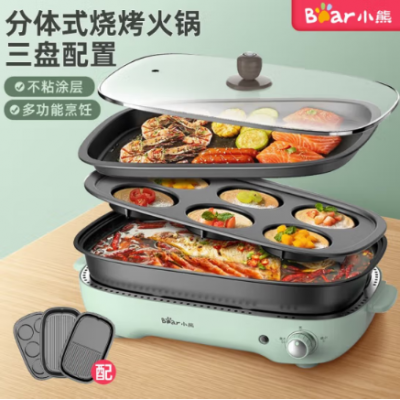 小熊(Bear)电烧烤炉 家用网红多功能料理锅电烤炉烤肉锅电火锅无烟韩式烤盘分体式煎涮烤一体锅 DKL-D12Z4 三盘配置 自营