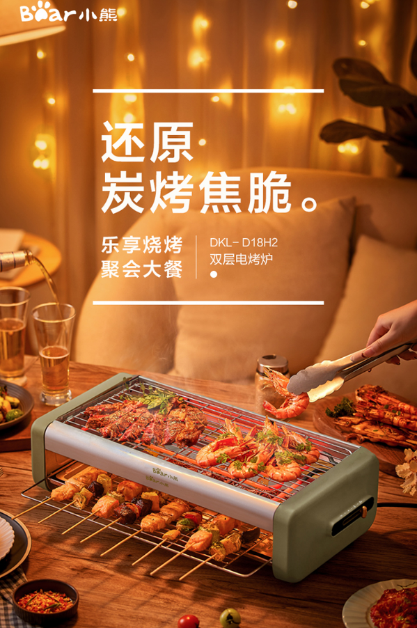 小熊(Bear)烧烤炉 烤串机 烧烤架 烤肉机 家用电烤架电烧烤炉多功能大容量不粘电烤炉DKL-D18H2 自营