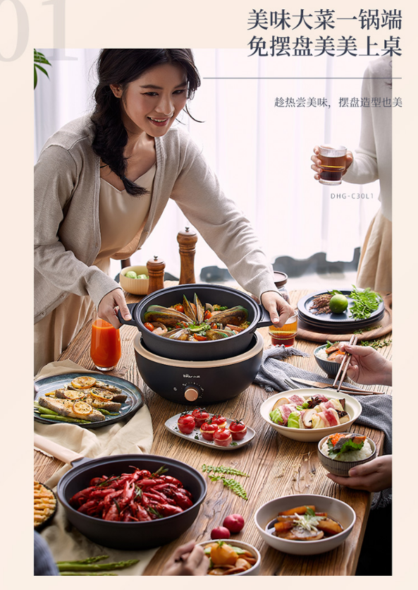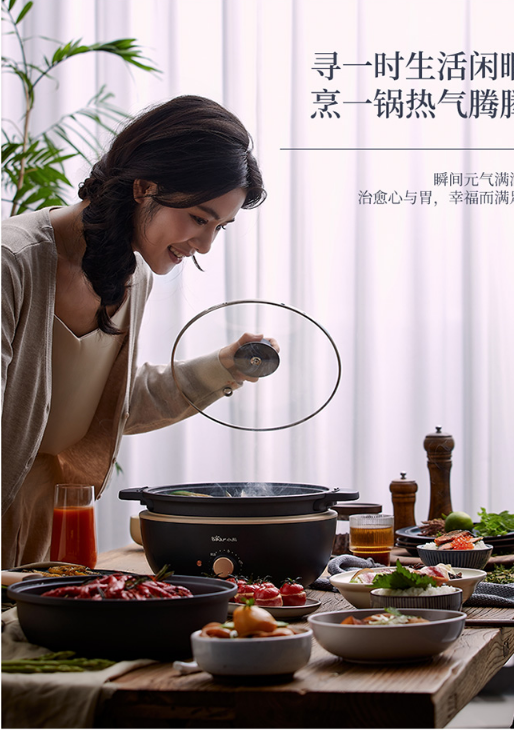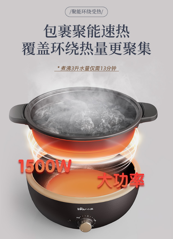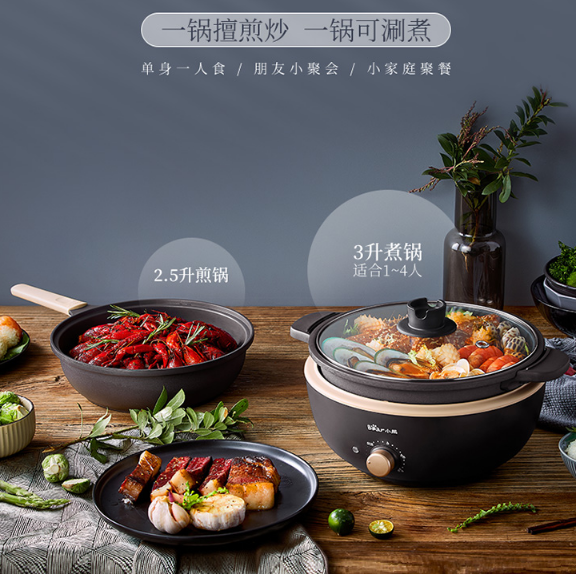 小熊(Bear)电炒锅 电火锅 电煮锅 电锅一体 电热锅 多功能锅多用途锅家用涮烤火锅锅具3L DHG-C30L1 自营