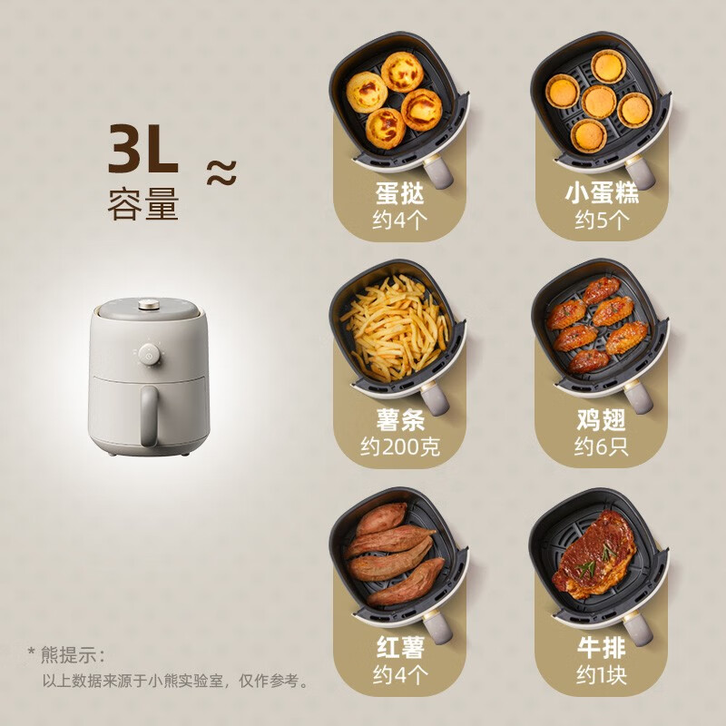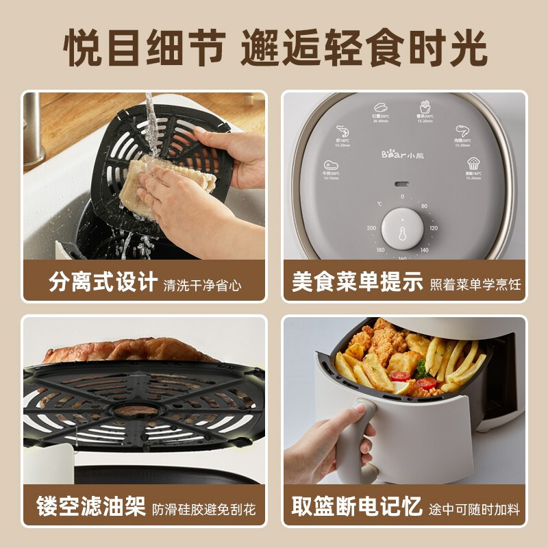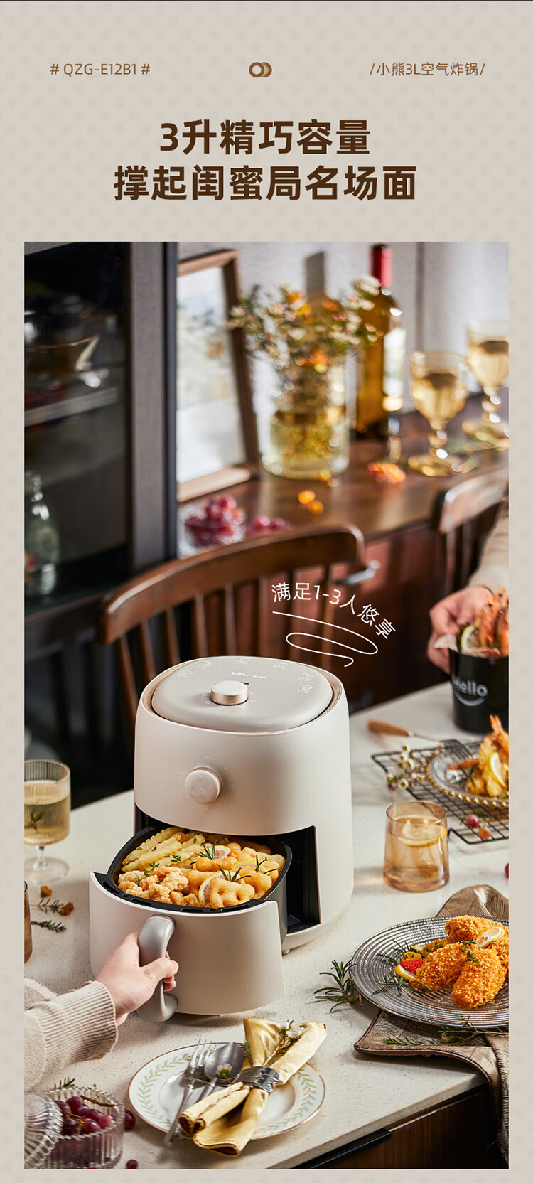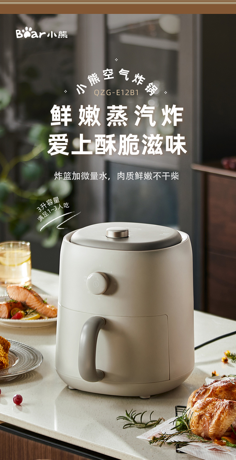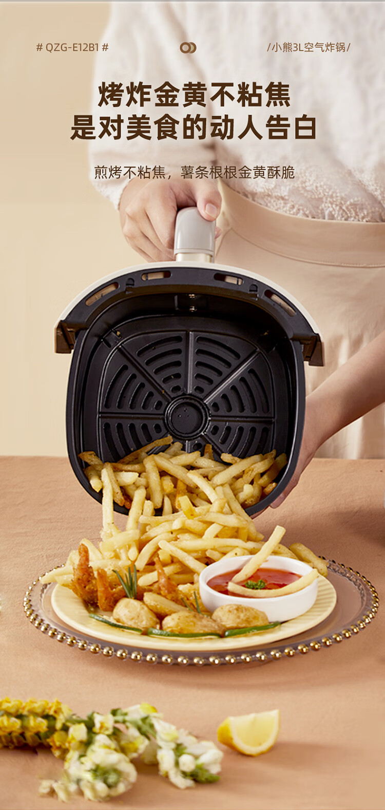 小熊(Bear)空气炸锅家用大功率无油烟低脂多功能电炸锅薯条机3L容量 QZG-E12B1 自营