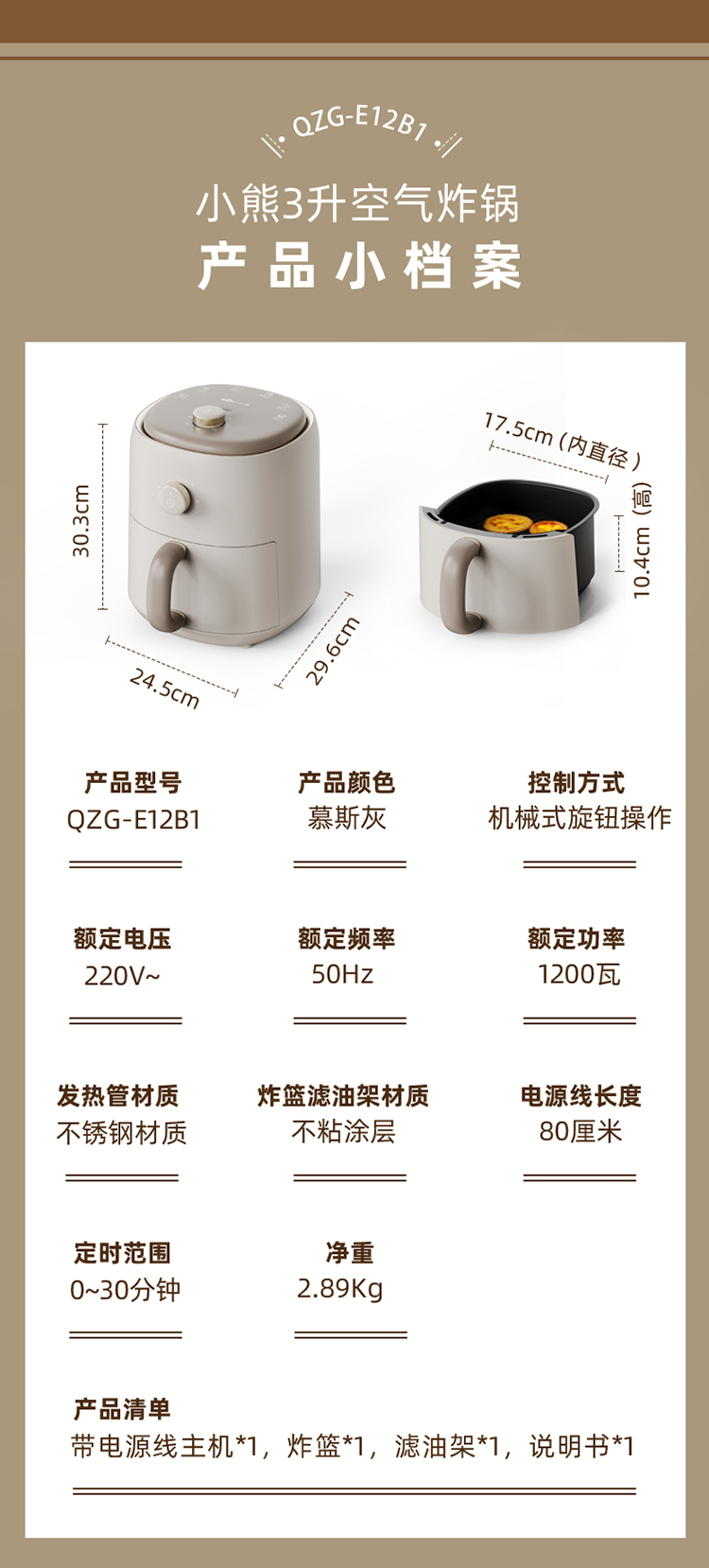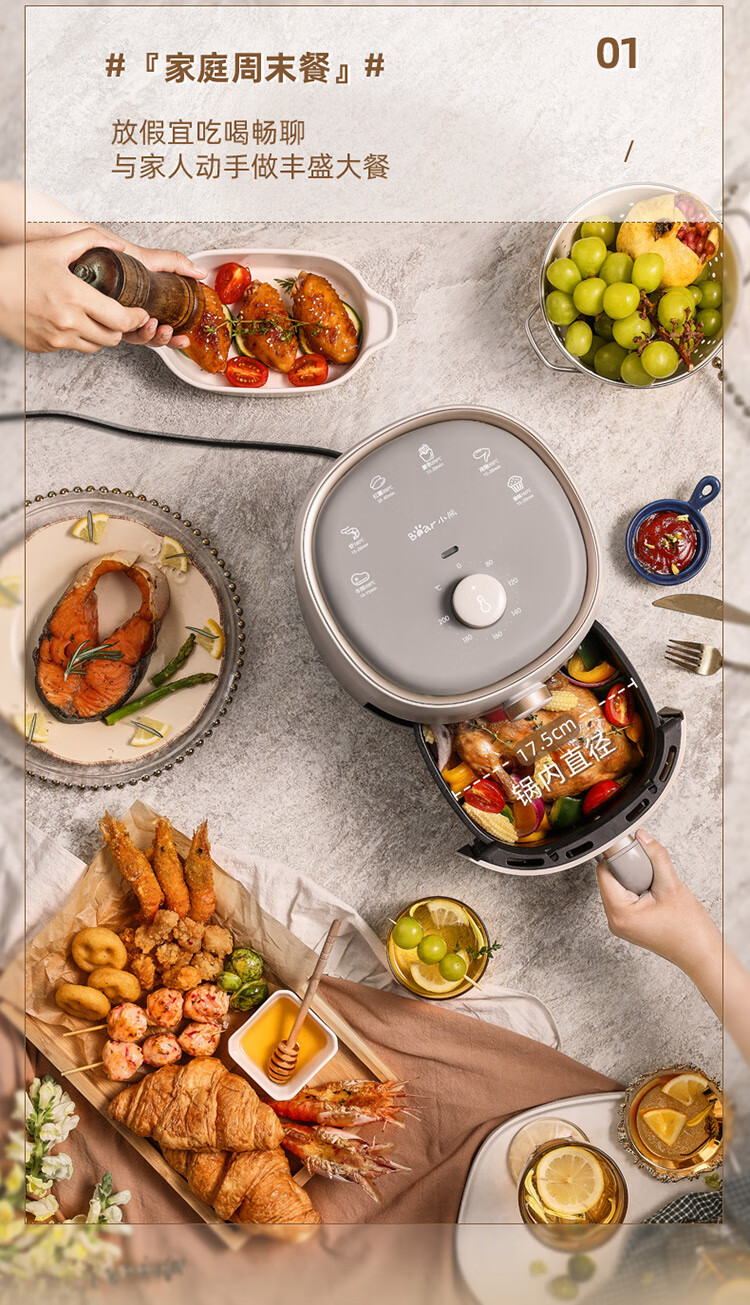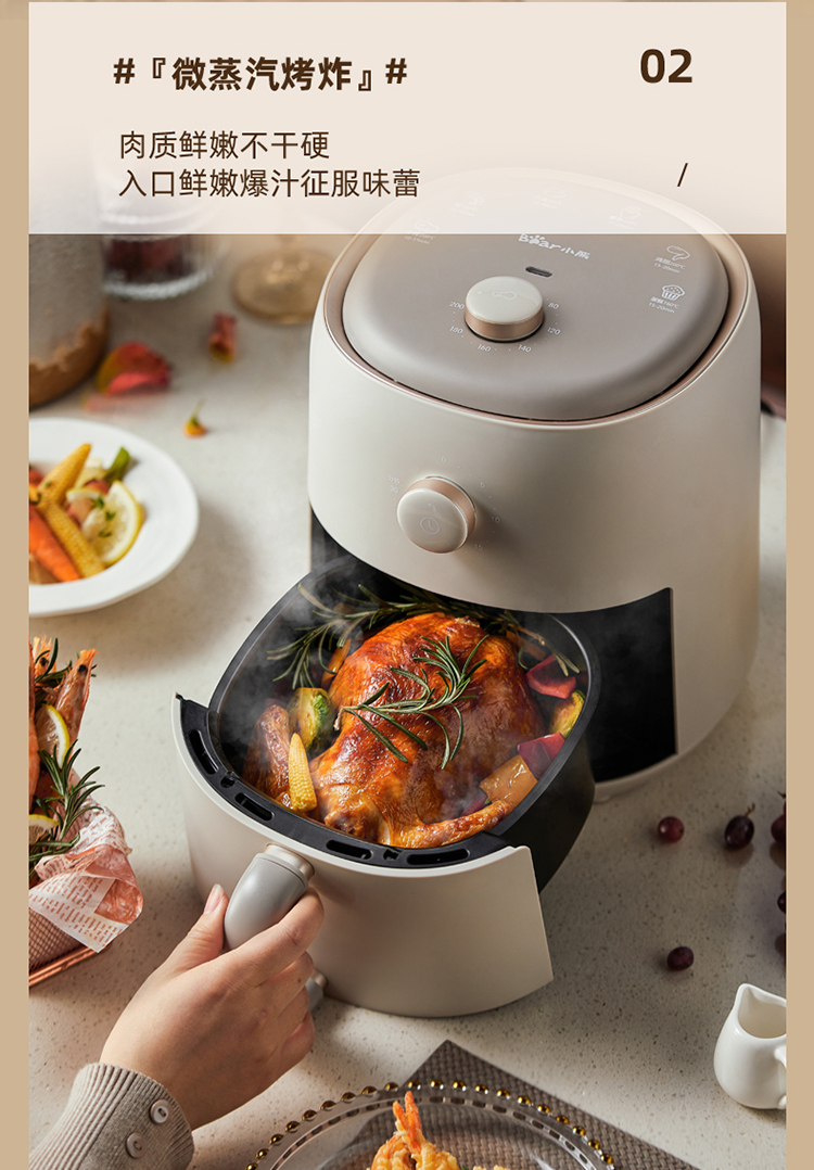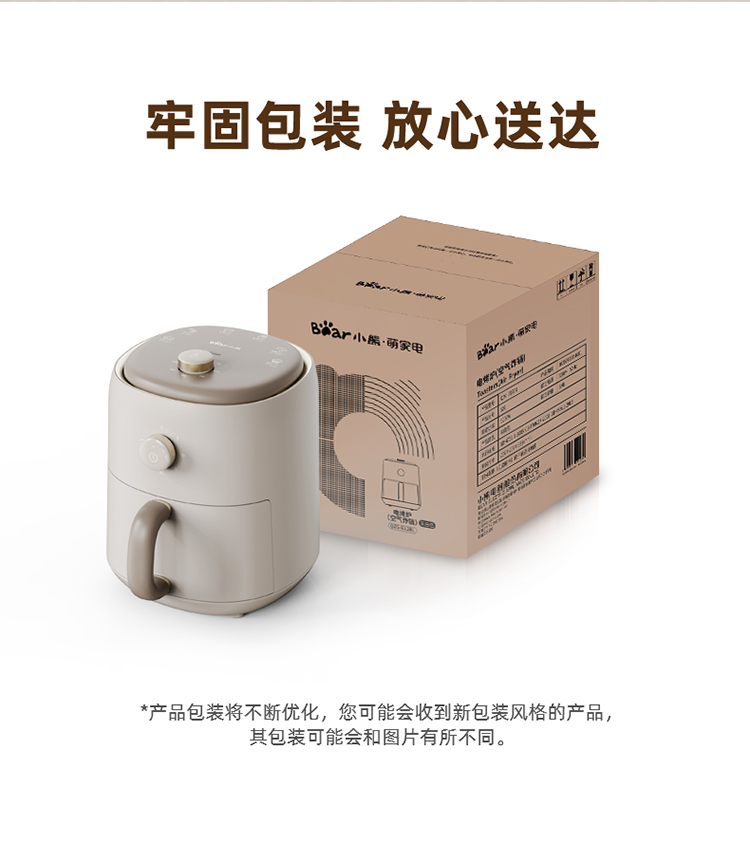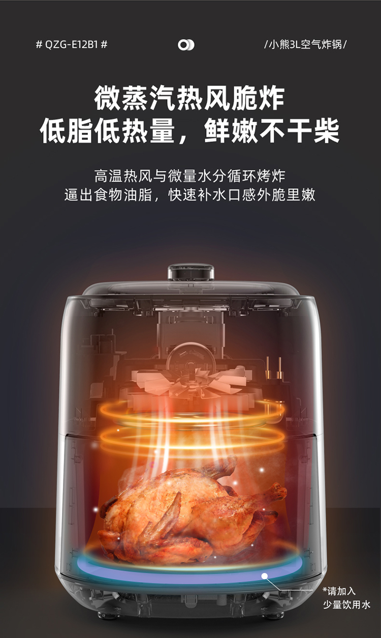 小熊(Bear)空气炸锅家用大功率无油烟低脂多功能电炸锅薯条机3L容量 QZG-E12B1 自营