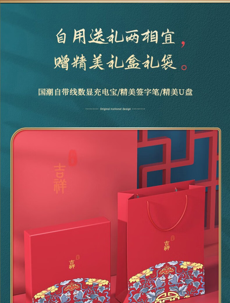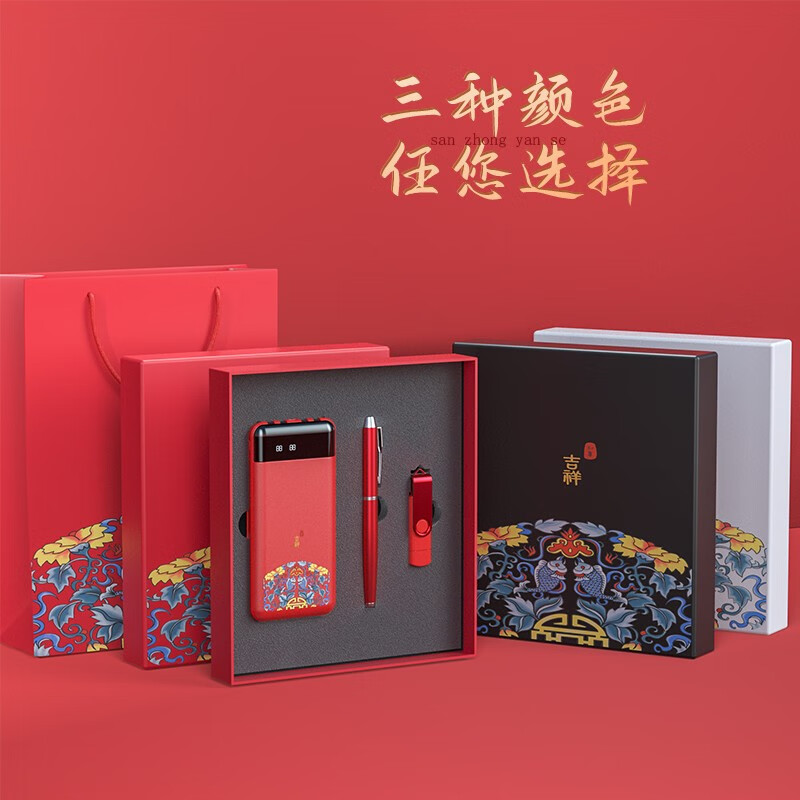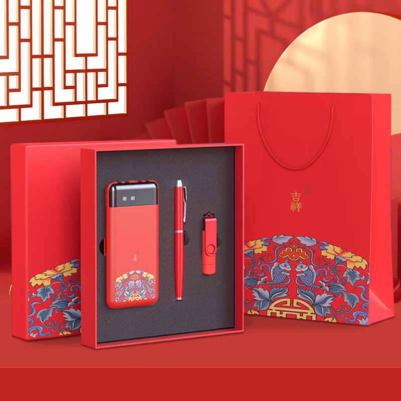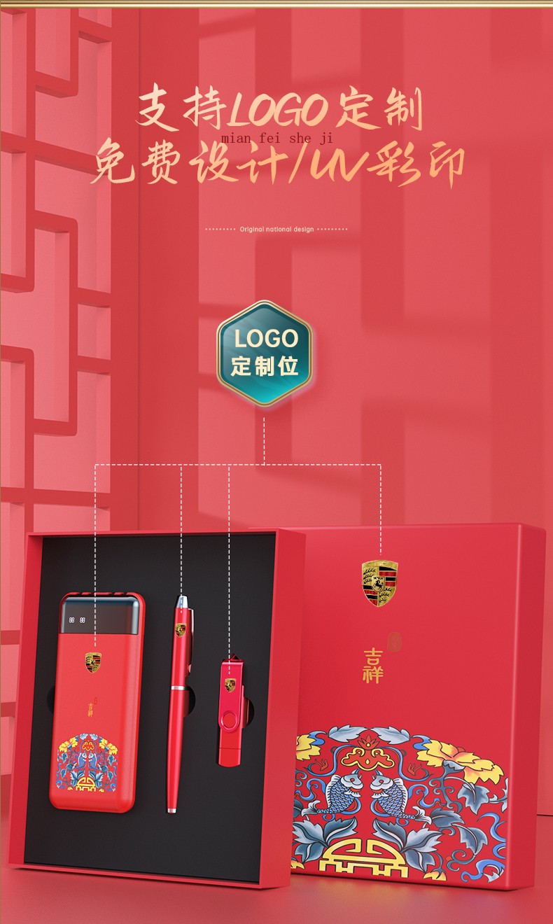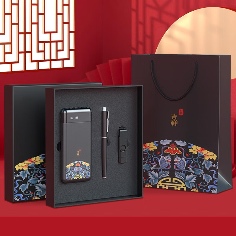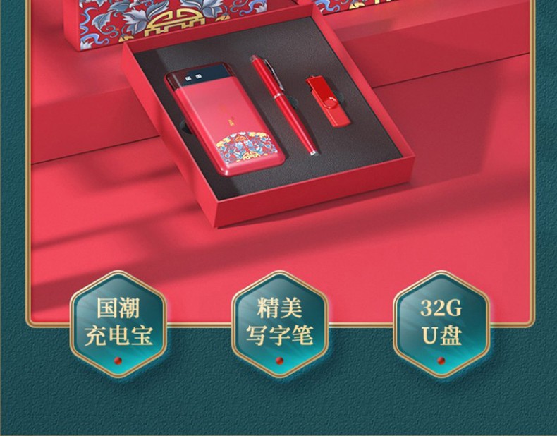 礼恋 毕业礼物送老师国潮苹果安卓充电宝U盘高档礼盒移动电源套装公司商务礼品定制送客户伴手礼党员纪念品 国潮红色礼盒【电源+32GU盘+笔】 自营