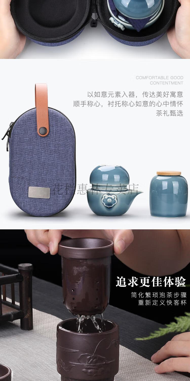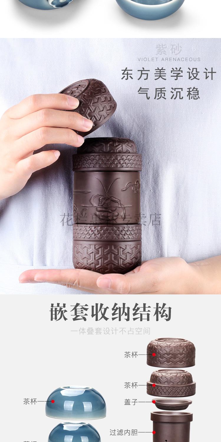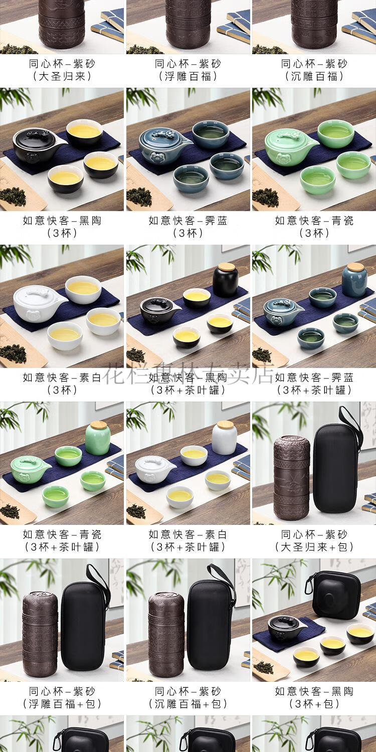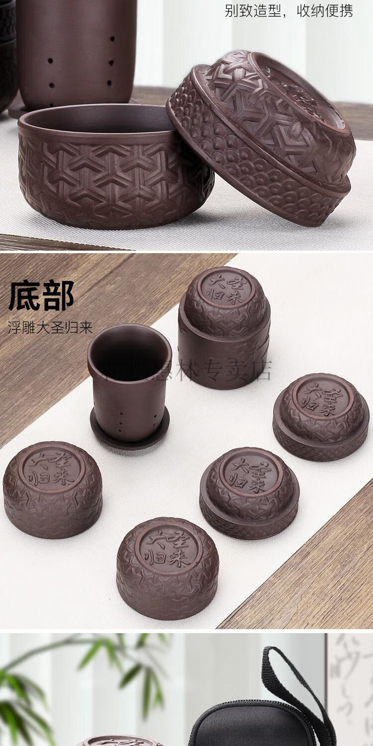 小罐茶茶杯便携式旅行茶具套装小套快客杯小罐茶家用简约茶杯小套干泡盘功夫小罐茶茶杯茶水分离公道杯 同心杯-紫砂-沉雕百福+包 自营