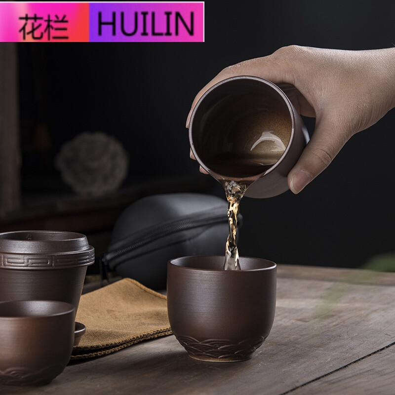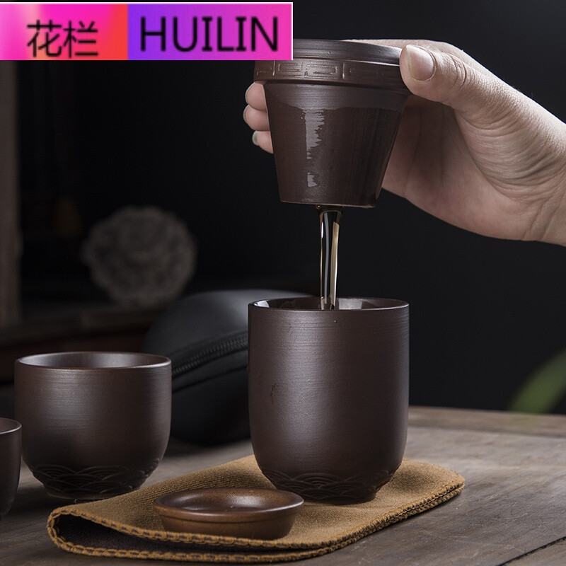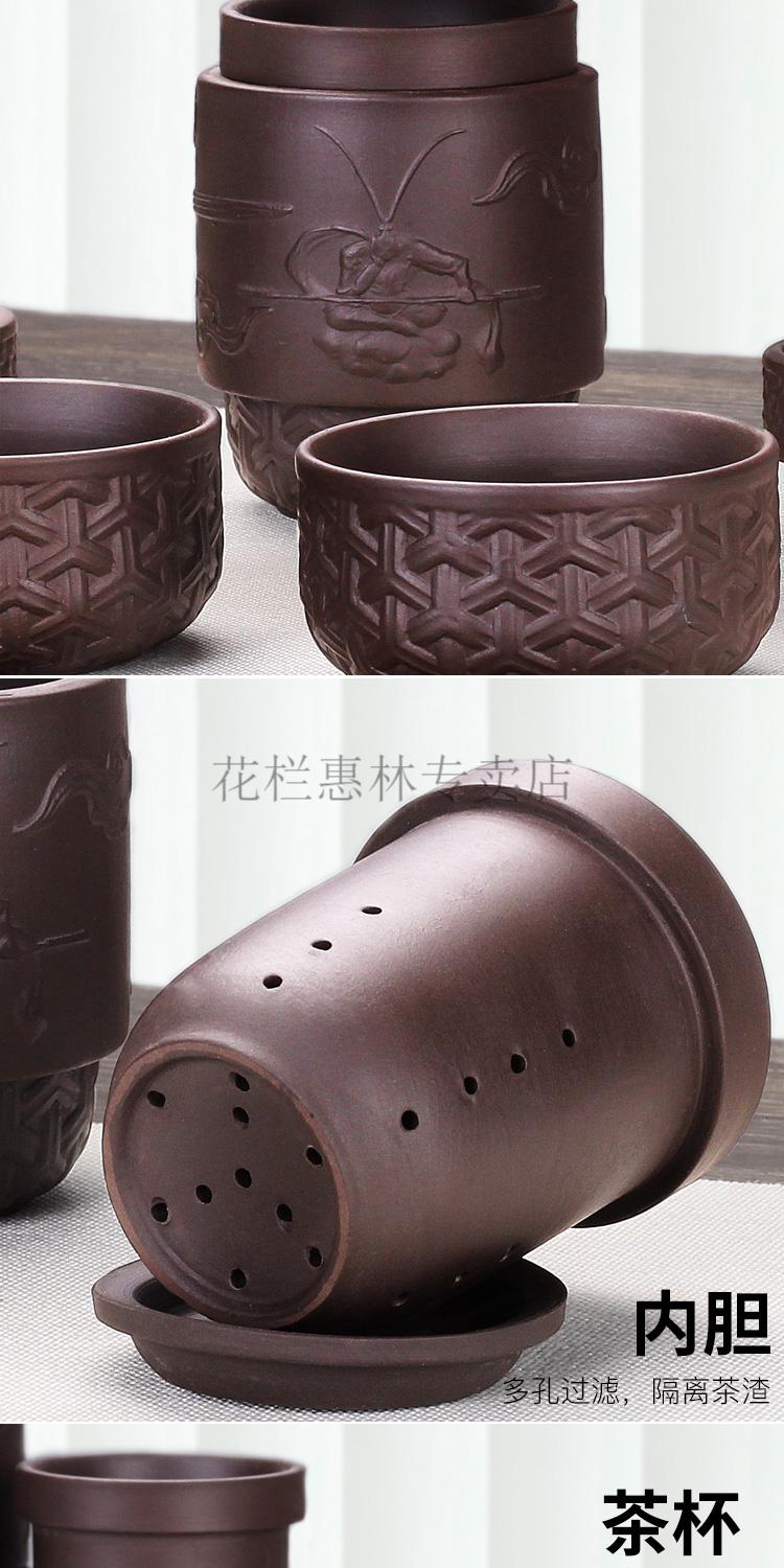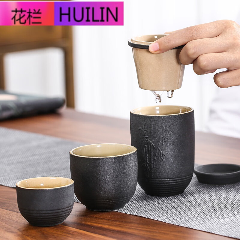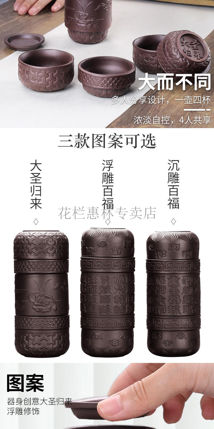 小罐茶茶杯便携式旅行茶具套装小套快客杯小罐茶家用简约茶杯小套干泡盘功夫小罐茶茶杯茶水分离公道杯 同心杯-紫砂-沉雕百福+包 自营