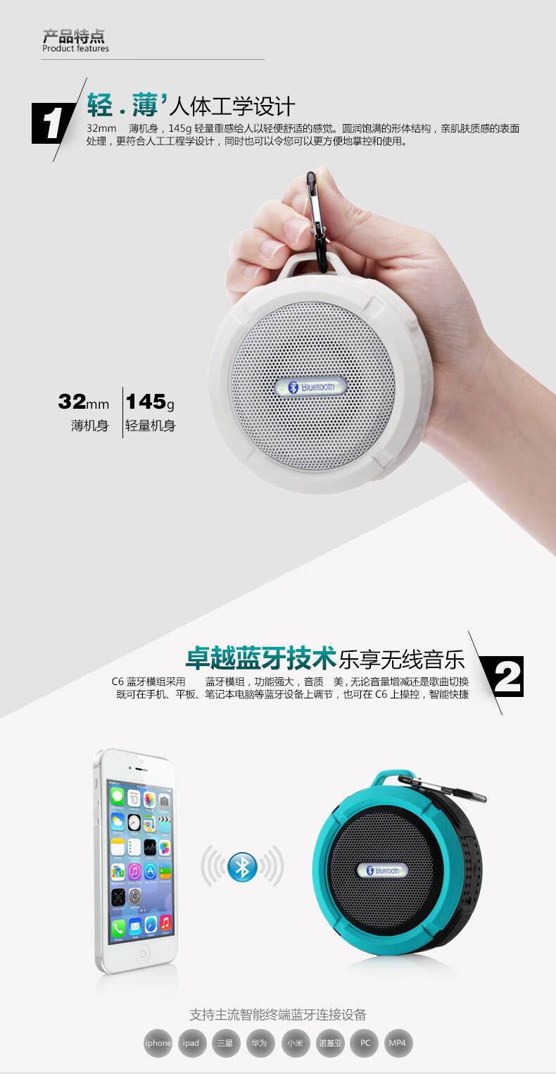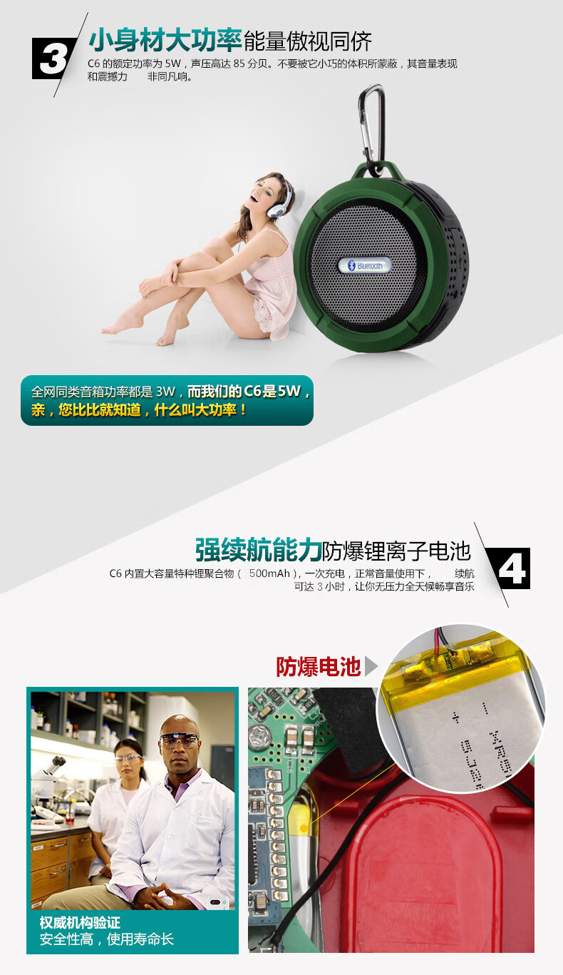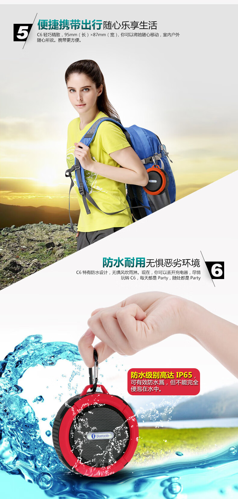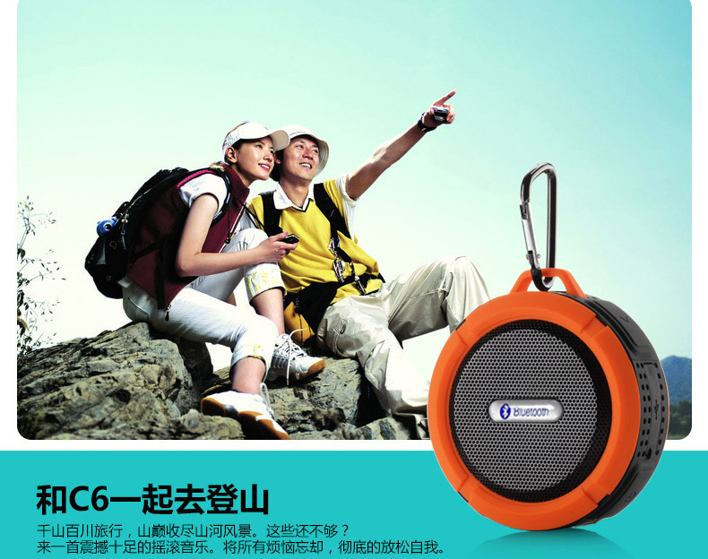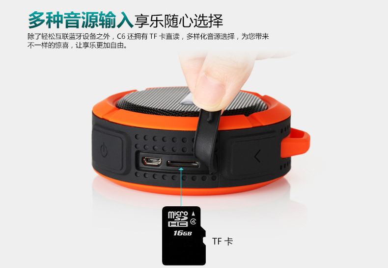 索尼Sony华为通用吸盘式无线蓝牙小音箱迷你音响随身运动防水插卡便携式户外低音炮金属小钢炮重低音VI C6橙色标配 官方标配 自营