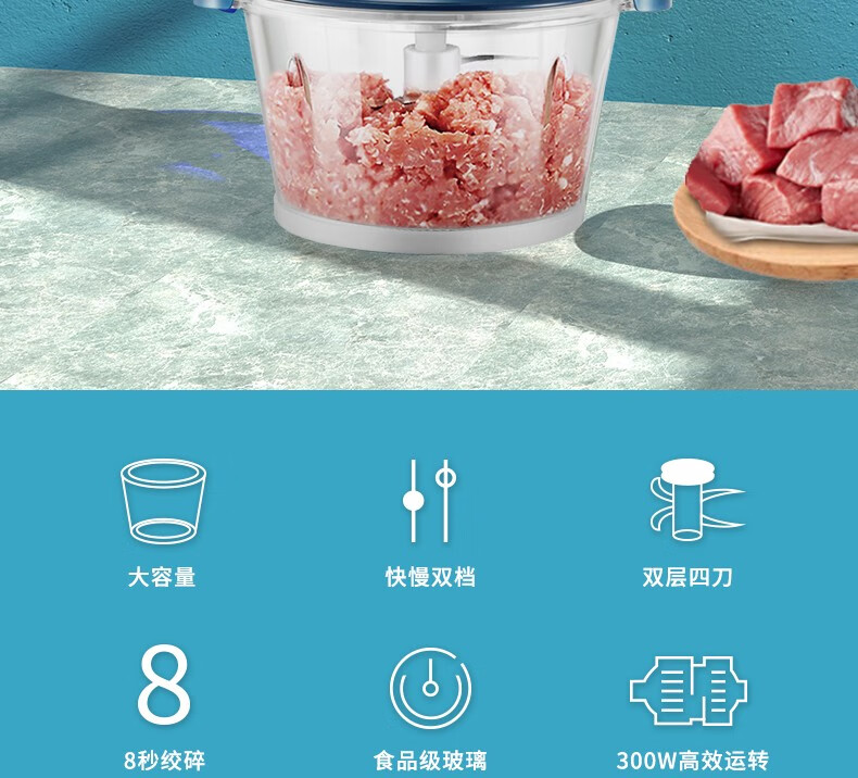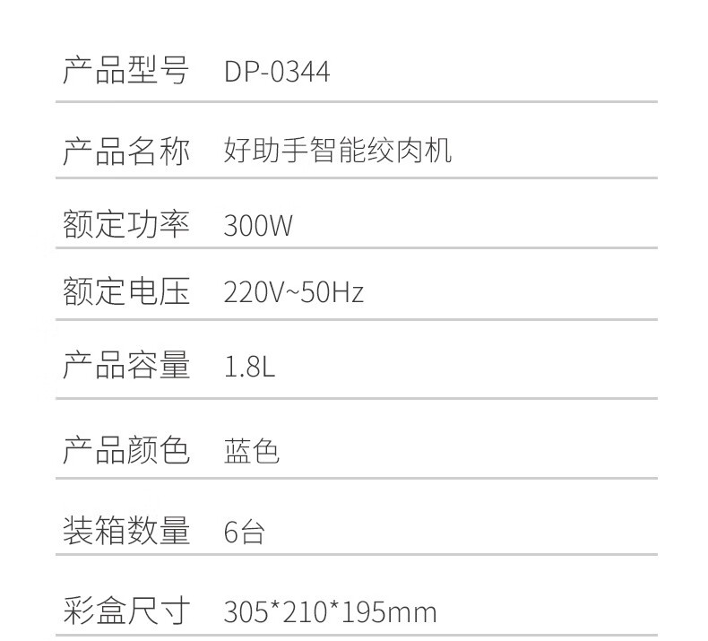 久量(DP) DP久量 家用好助手 小巧轻便的智能绞肉机 简约绞肉机 DP-0344 蓝色 自营