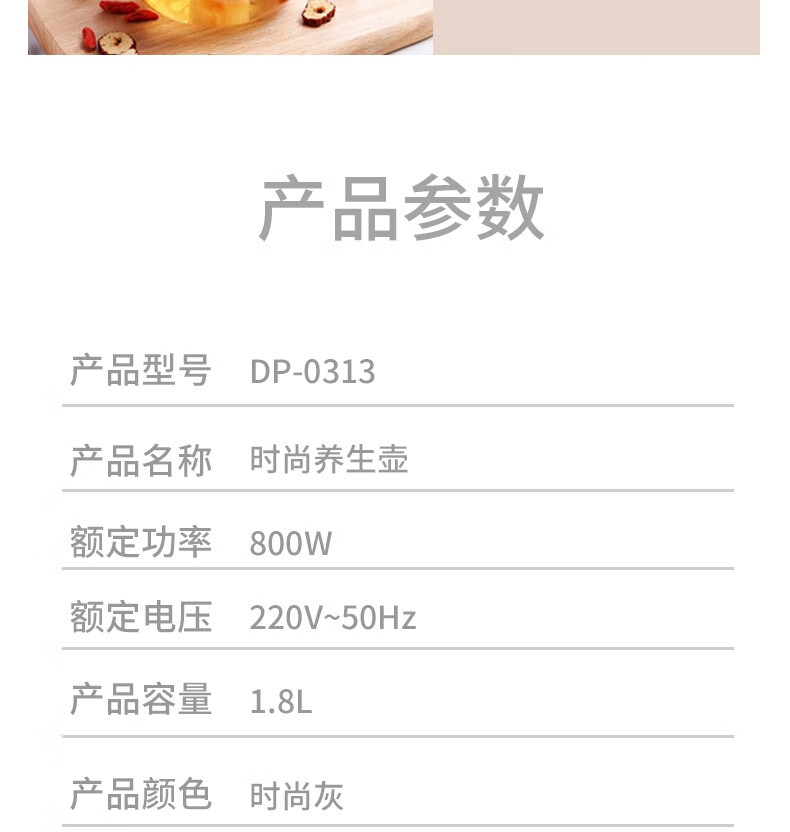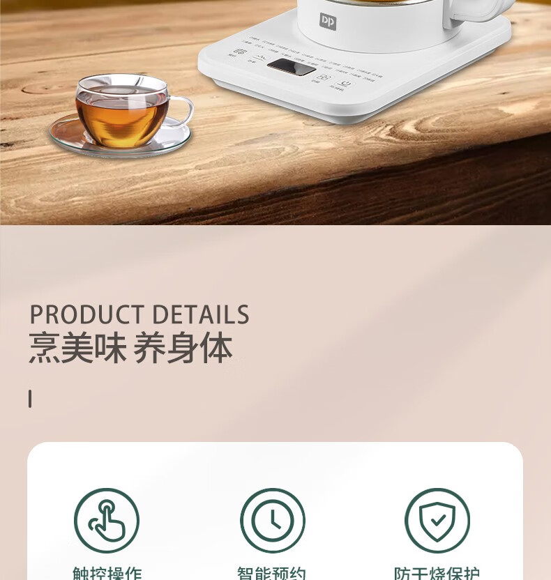 DP久量 多功能养生壶 家用容量小型煎药壶 百搭养生壶DP-0313 浅灰色 自营