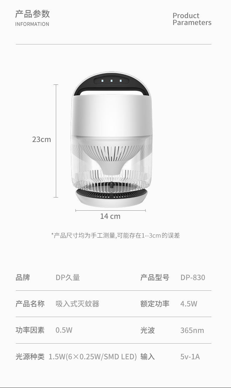 久量(DP)灭蚊灯家用室内婴儿卧室吸蚊灯智能光控驱蚊器DP-830 自营