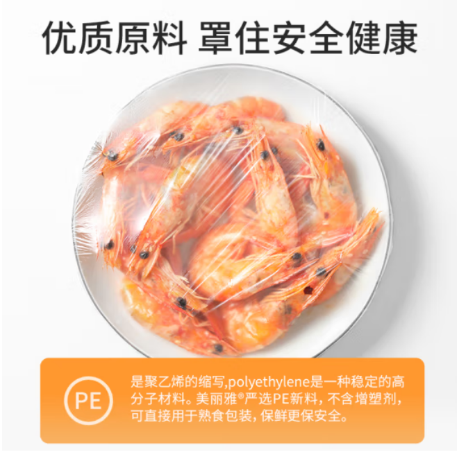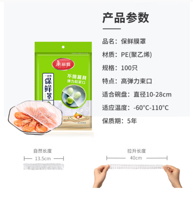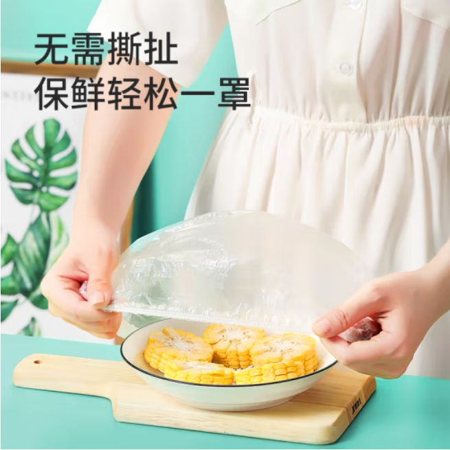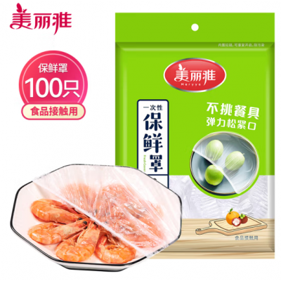 美丽雅 一次性保鲜袋套100只装食品保鲜膜套 保鲜袋罩保鲜膜罩自封口盖套 剩饭菜保鲜罩碗罩大小通用 自营